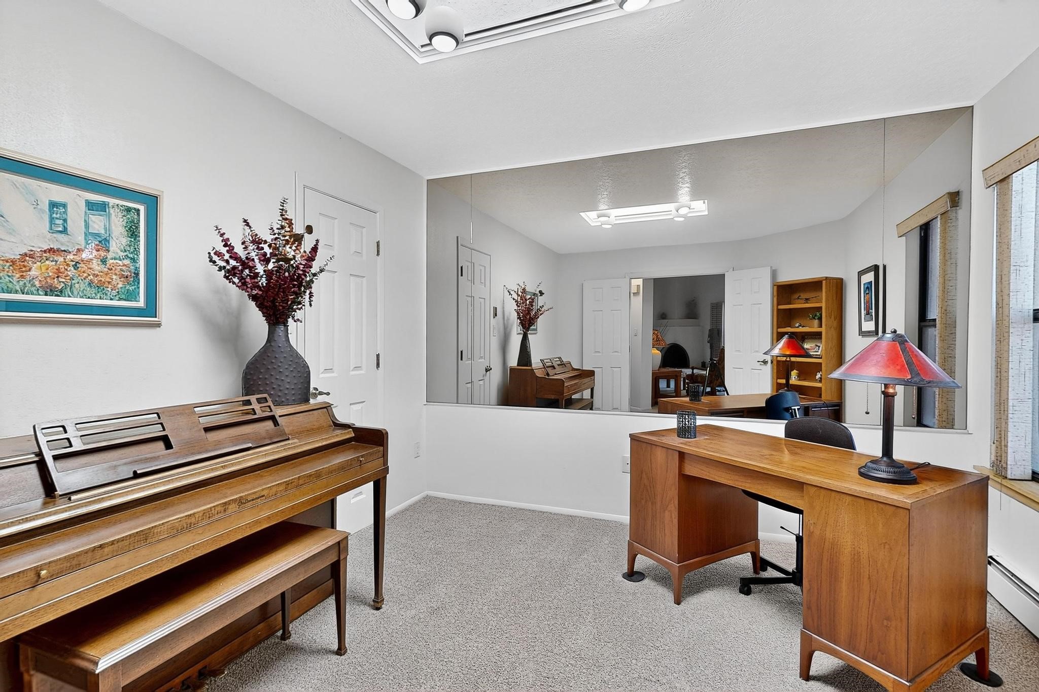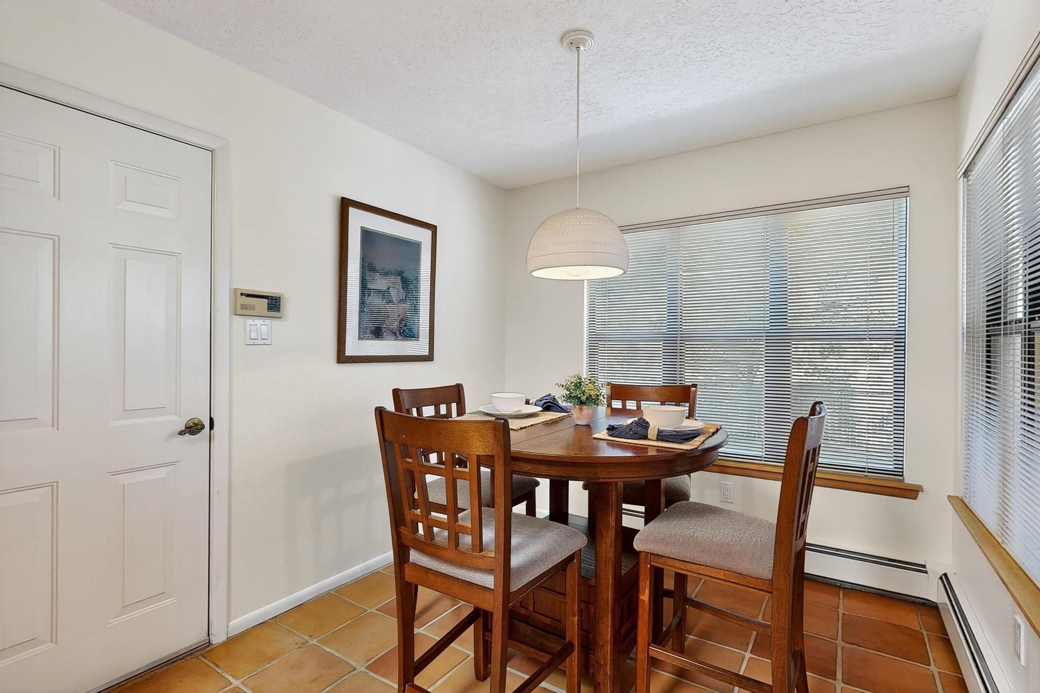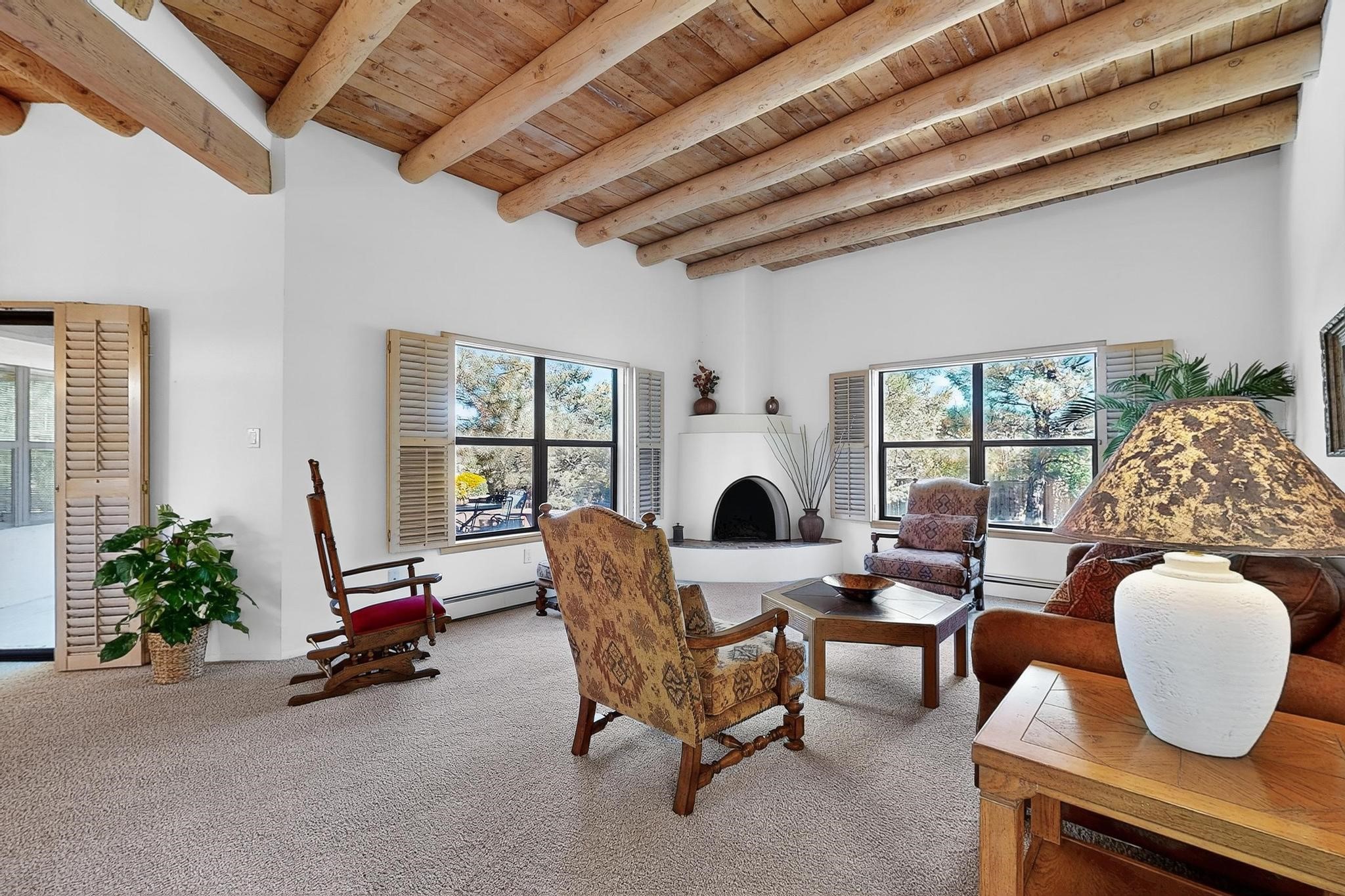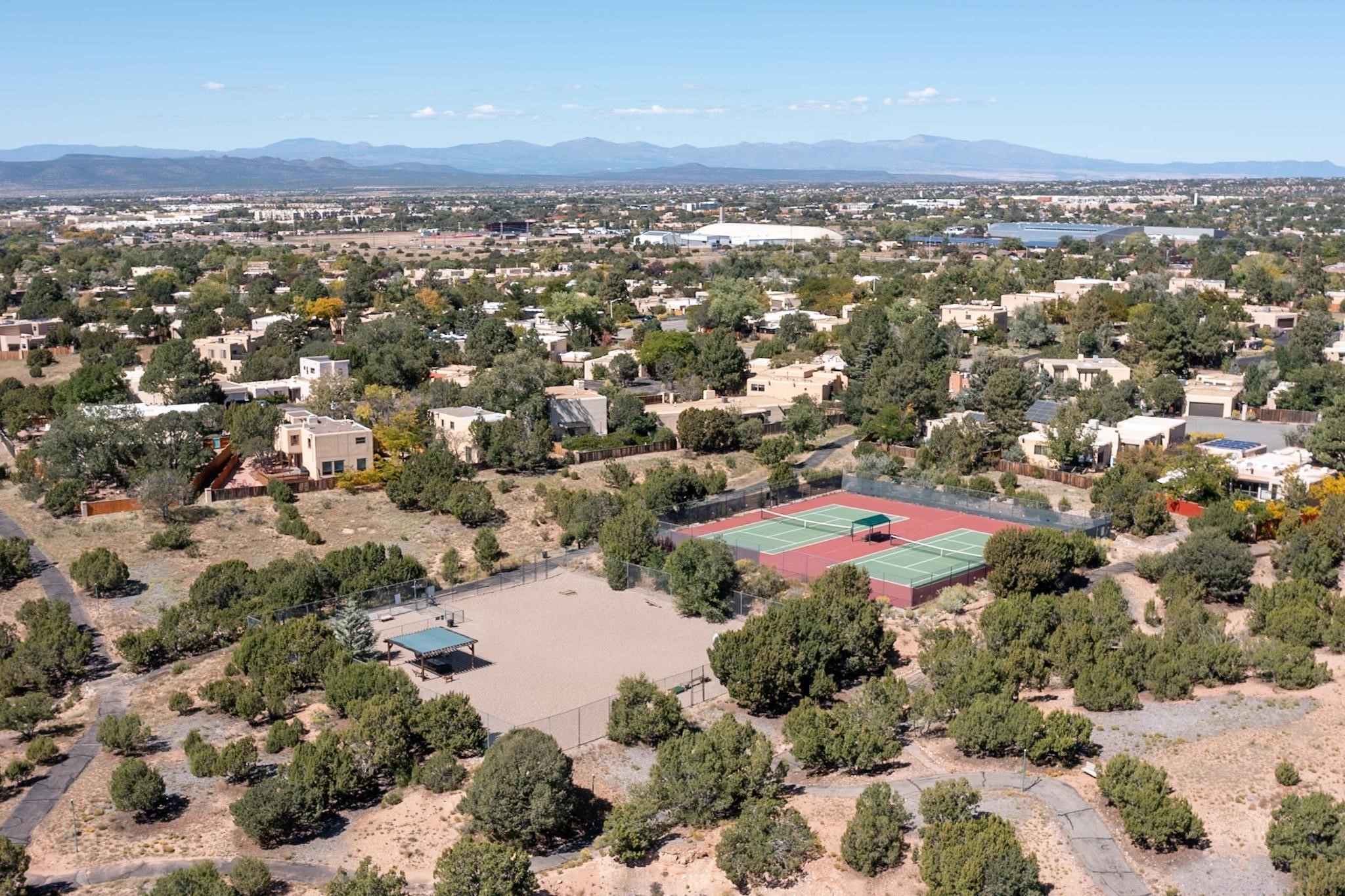 Welcome to this warm and inviting home in the coveted Estates at Park Plaza. Featuring impressive viga beamed ceilings, Saltillo tile, Kiva fireplace and lovely courtyard entry, this home exudes warmth and comfort. The backyard deck shaded by trees, offers a perfect space for outdoor gatherings or quiet evenings. Residents can enjoy fantastic amenities, including a community garden, tennis and pickleball courts, a dog park and 8 miles of scenic walking paths. Located close to shops, restaurants, and just a short drive to the historic Plaza, this home provides both convenience and a sense of community. With recent updates including a boiler, kitchen water heater, refrigerator, dishwasher and stove in 2025, this home is move-in ready.