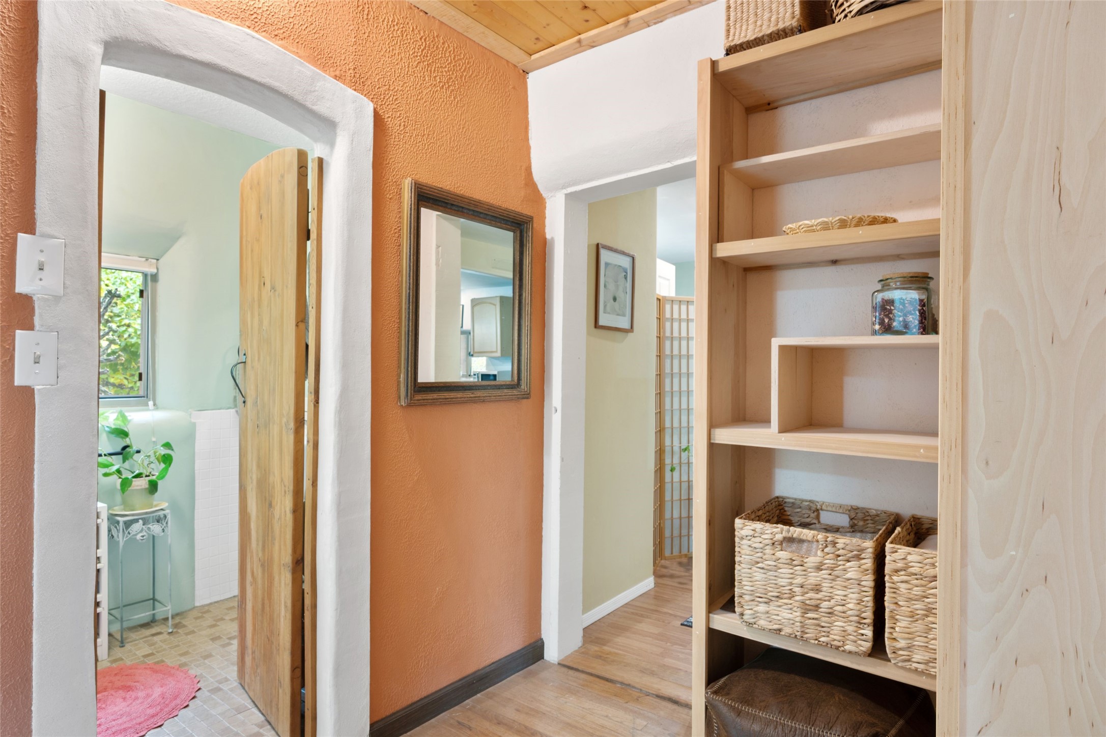 Inviting single-level home located in the town of Alcalde, within the beautiful Rio Grande Valley, on approximately one acre of land with acequia surface water rights. This 2-bedroom, 1-bath property offers about 1,200 square feet of comfortable living space with a relaxed country feel. Featuring classic Adobe and frame construction, the home showcases timeless Santa Fe style.Enjoy outdoor living under the long portal, perfect for relaxing or entertaining amid peaceful surroundings and taking in the lovely views from the backyard. The fully fenced property includes gardens and fruit trees, with plenty of space for additional gardening or outdoor projects. Mini splits provide efficient heating and cooling throughout.The detached two-car garage offers excellent storage or workshop potential. Originally built around 1970, the home has seen several thoughtful improvements since 2021, combining functionality and charm in a peaceful setting.