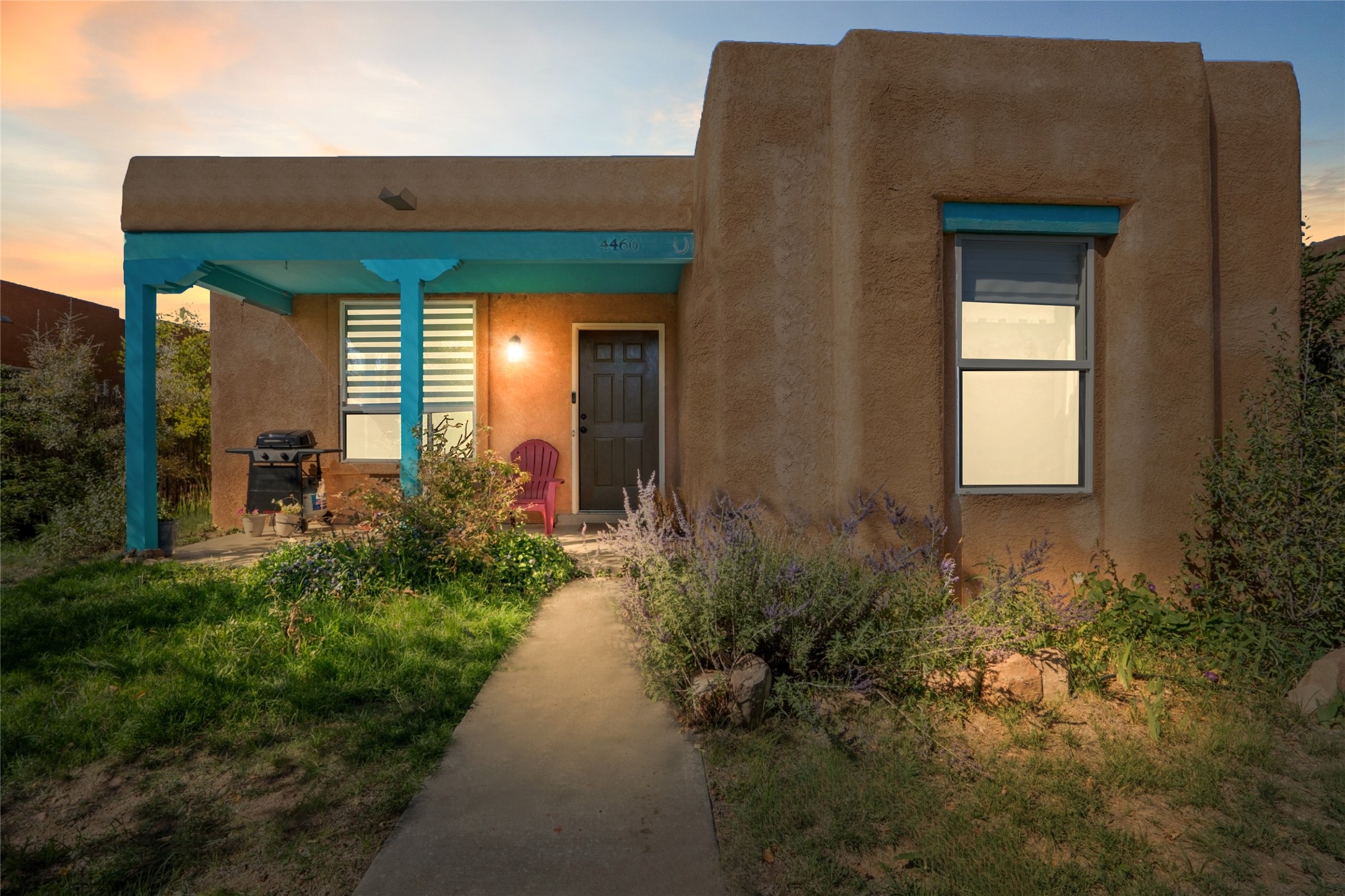 Charming 2-bedroom, 1-bath home with a 1-car garage and off-street parking. Comfortable, move-in ready living with tranquil outdoor spaces. A gated, fenced front yard with established, drip-irrigated plantings provides curb appeal and privacy. Inside, the living and dining areas flow into the kitchen, and an updated bathroom showcases clean, modern finishes. The fully enclosed backyard is a gardener's delight with bountiful apple trees and lush landscaping, plus a detached garage that could also serve as a gym or workshop. Ideally located with easy access to I-25 and NM-599 and near shopping, schools, popular restaurants, and Presbyterian Hospital. Schedule your showing today!