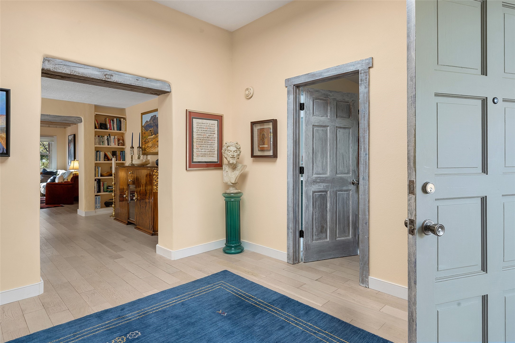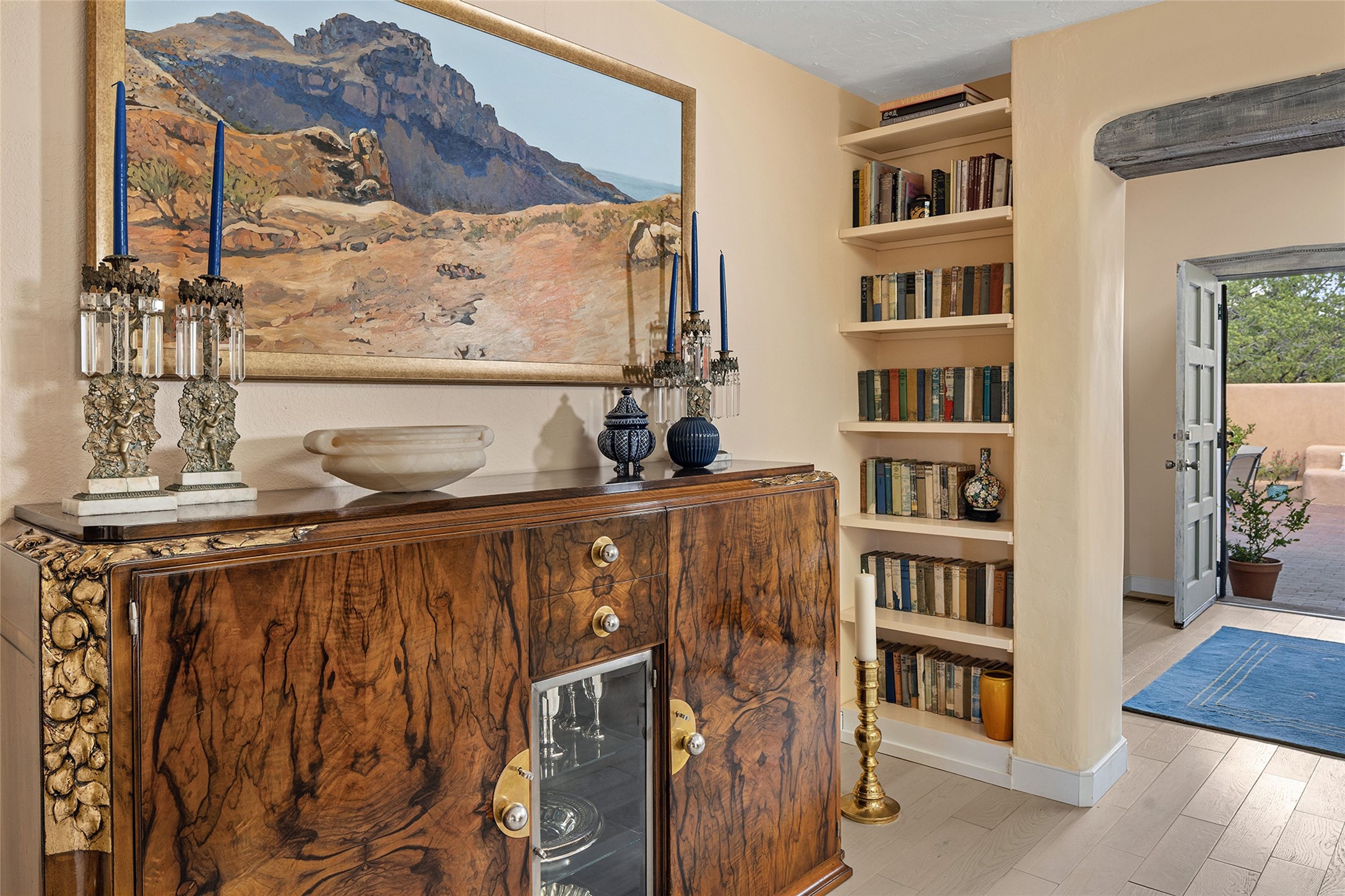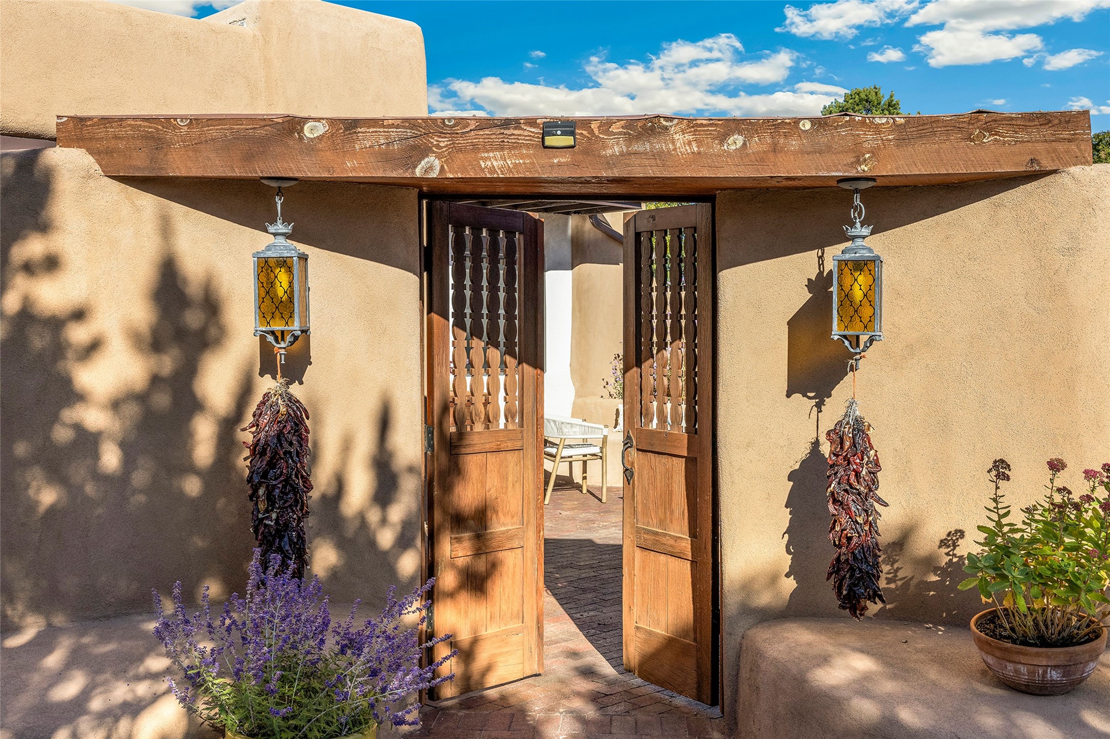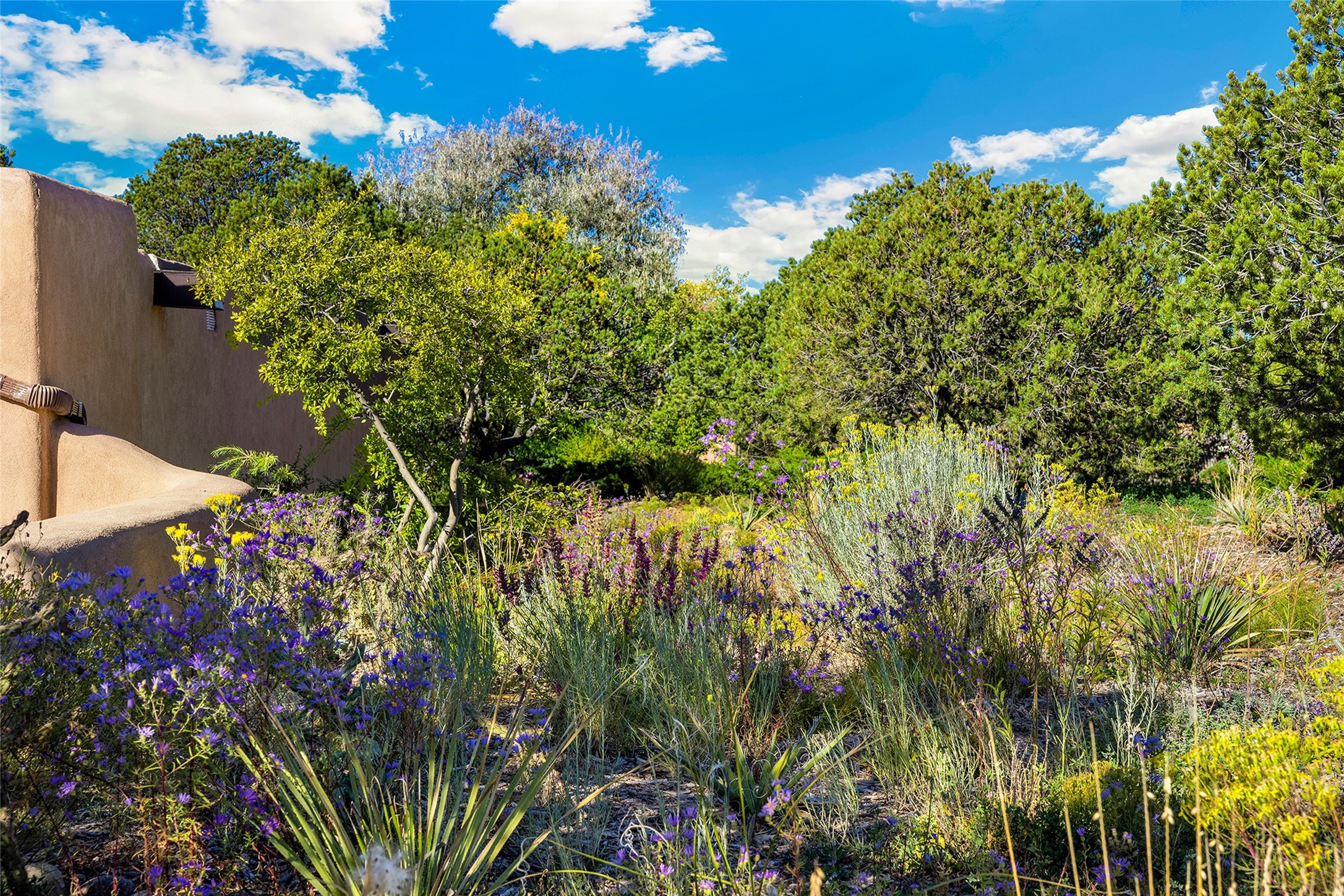 Perched at the top of the hill, this exceptional single-level end-unit condominium was the former model home and enjoys both privacy and breathtaking Sangre de Cristo mountain views. A rare three-bedroom, three-bath residence on the desirable north side, it offers easy access to downtown Santa Fe. being one mile away, the Ski Basin, mountain trails and Los Alamos.Thoughtfully updated throughout, all three en-suite baths were renovated to the studs last year and hardwood floors were added throughout the home by this owner. The primary suite has a large walk in closet and the front guest suite has a wall of built in bookcases that create a cozy study. The updated kitchen (2019) features granite countertops, stainless steel appliances, lighting, and sink. Additional upgrades include a GAF TPO roof (2018) with transferable warranty, a natural gas furnace and central refrigerated air (2018) and 99% UV-reduction skylights (2015) and the HOA recently completed stucco updates.The floor plan offers comfortable flow and separation of bedrooms, while the inviting front courtyard captures dramatic mountain views--an ideal setting for morning coffee or evening sunsets. The rear courtyard opens to a greenbelt, providing a tranquil backdrop for entertaining or relaxing. A one-car attached garage and two off-street parking spaces complete this move-in-ready gem.This special property combines classic Santa Fe charm, meticulous updates, and an unbeatable location.
