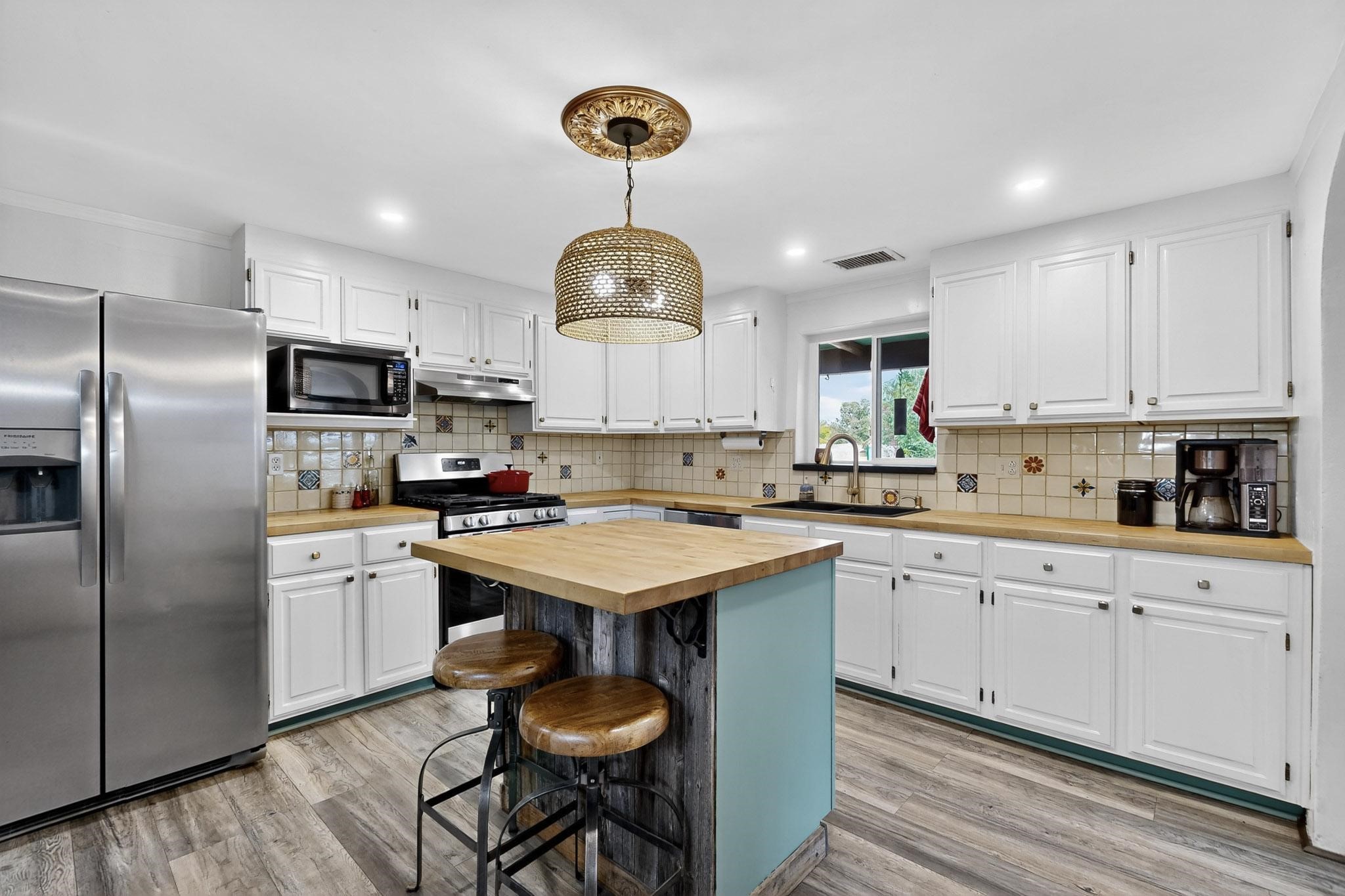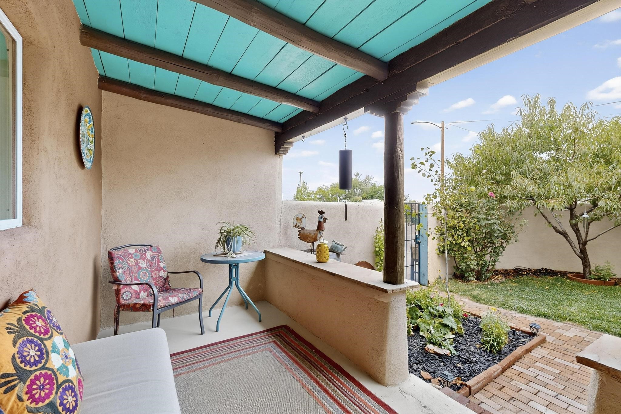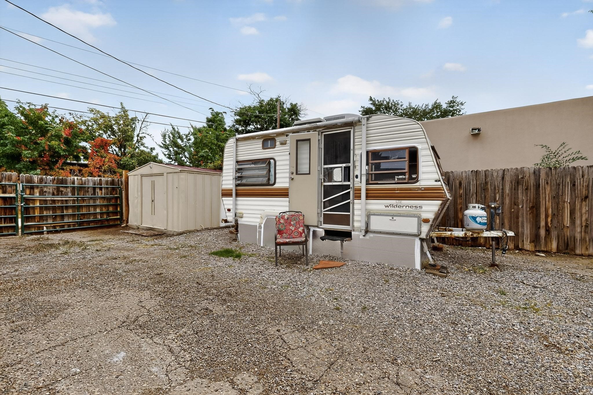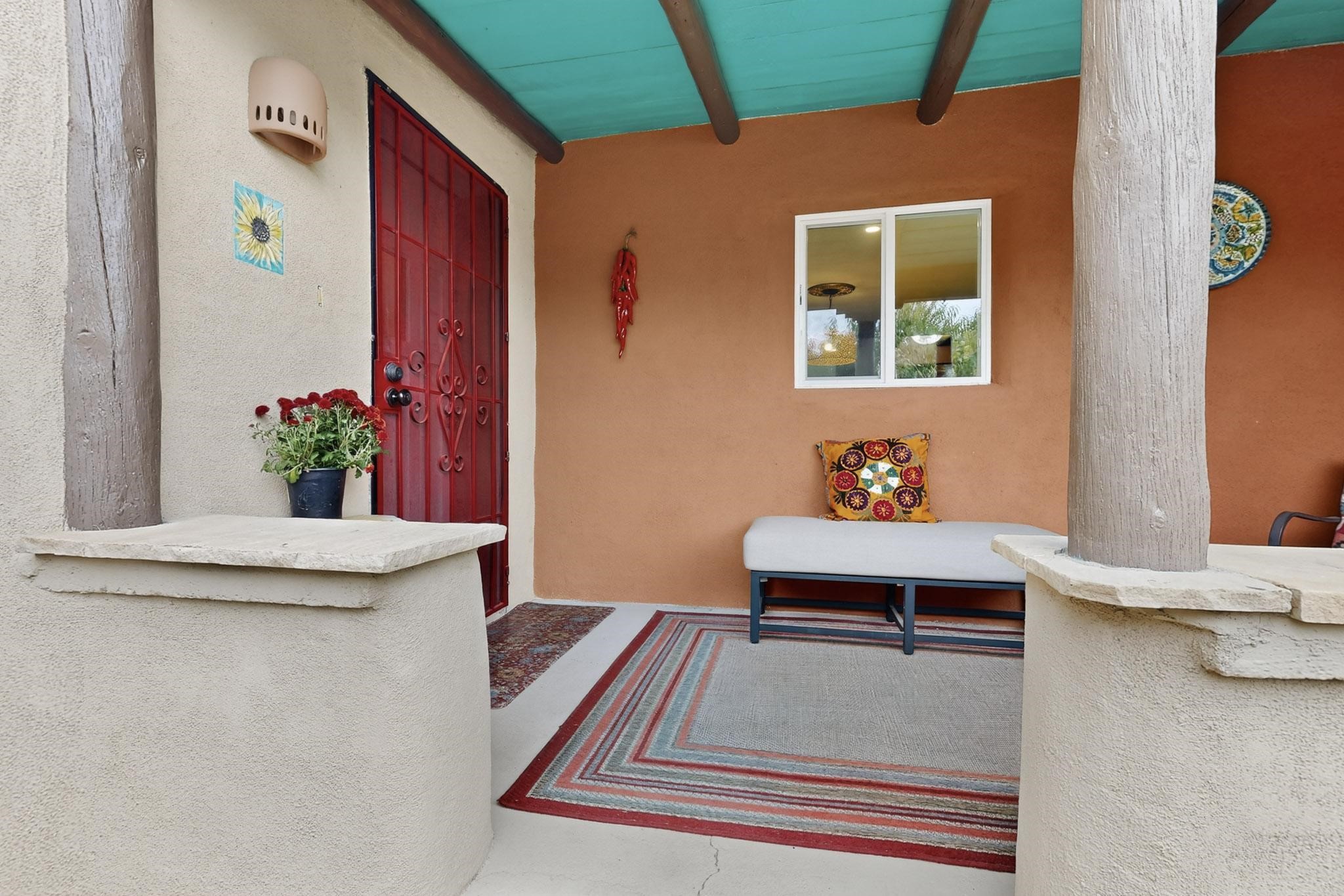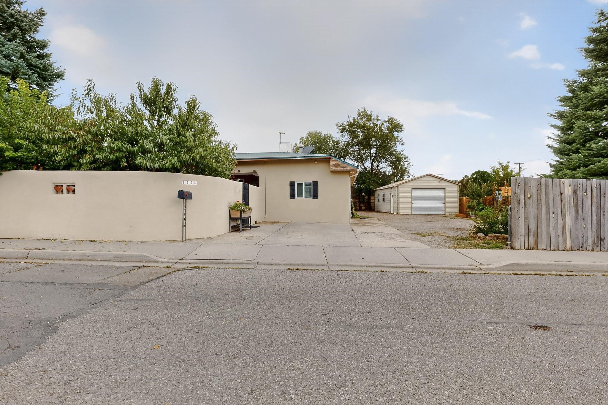 Enjoy country living in this well cared for .21 acre property in the heart of Santa Fe! The home's entry courtyard, with its new ramada, sets the tone for relaxed outdoor living. Inside, the adobe portion of the home, built in 1947, exudeswarmth and includes the spacious updated Kitchen, Living Room, Primary Bedroom; the newer stick-built wing features 2 substantial guest bedrooms, the primary bathroom and a remodeled bathroom. Interior improvements include newwindows, new paint, newer water heater, furnace and appliances. Owners have added a fabulous detached 18' X 30' garage, and will convey several sheds, a camping trailer, a green house and a hot tub, if wanted. Also included is fully paid for solar panels that were added in 2024. Lush and charming gardens with fruits, veggies and herbs plus mature trees on irrigation further enhance the property's appeal. A large basement is accessible from the side of the home for additional storage. Come see this sweet home at your first opportunity!
