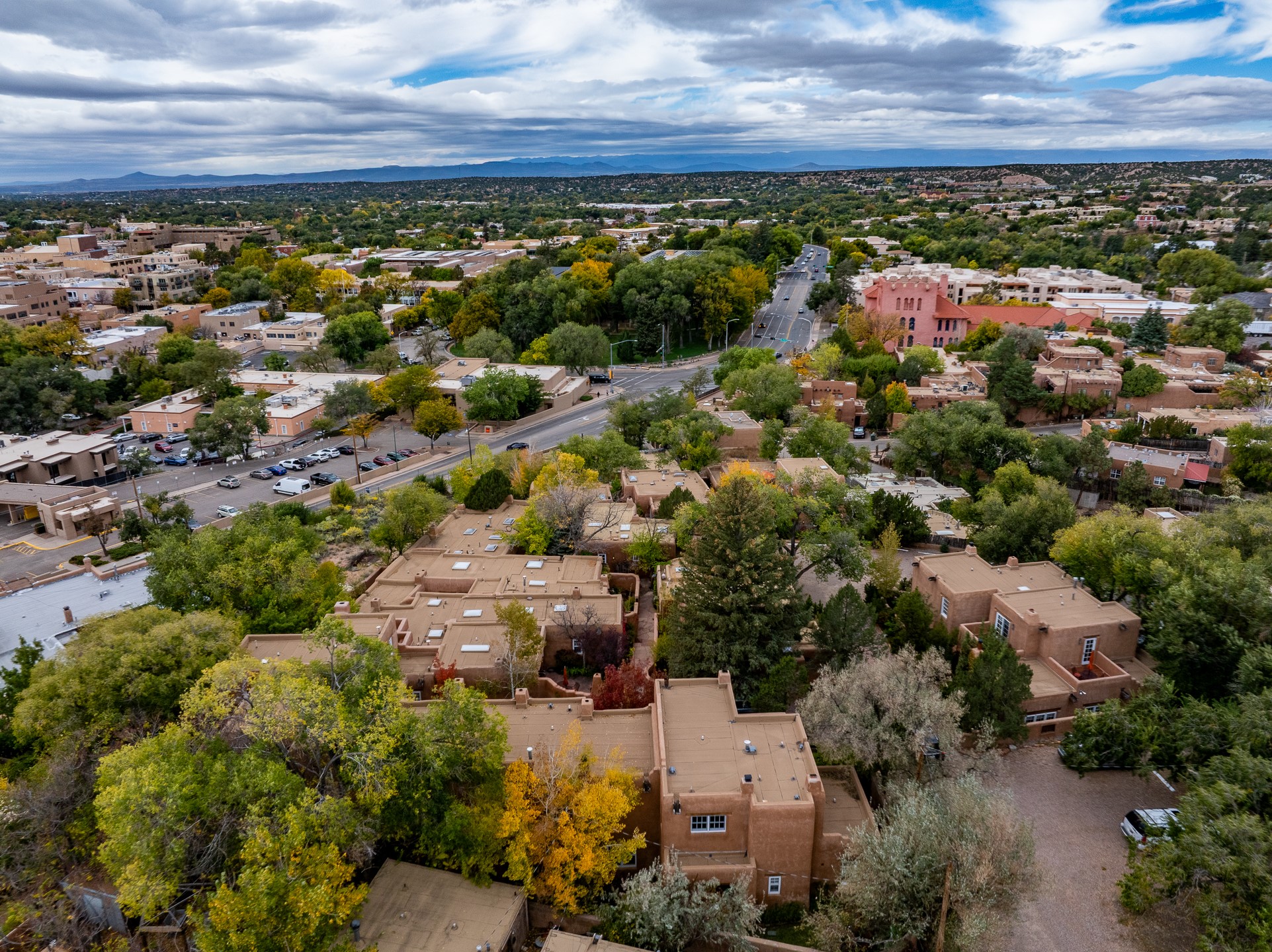 Enjoy effortless Santa Fe living in this fully furnished, professionally managed downtown retreat. Light-filled and full of Southwestern character, the living space offers soaring ceilings, vigas, and a cozy kiva fireplace -- perfect for recharging between Santa Fe adventures.The open kitchen, dining, and living areas flow naturally to a private walled courtyard with a Weber grill, perfect for outdoor dining. Upstairs, a sunny terrace offers both sunrise and sunset views. There's excellent separation between the bedrooms -- one on the main level with a nearby guest bath, and the other upstairs with its own en-suite. Both feature corner kiva fireplaces and direct outdoor access: the downstairs bedroom opens to the private courtyard, while the upstairs suite connects to the viewing terrace. A cozy loft also on the 2nd floor makes the perfect spot to read or unwind.Authentic details -- Saltillo tile & wood floors, vigas and colorful Talavera accents -- bring warmth and personality throughout. With all structures and contents maintained by the HOA, this is a truly turnkey getaway that captures the easygoing charm and vibrant spirit of downtown Santa Fe living. Each ownership retains 13 weeks/year on a rotating schedule. The new owner of 12-3 will enjoy the 2026 Holiday season with occupancy December 18-Jan 1, 2027!