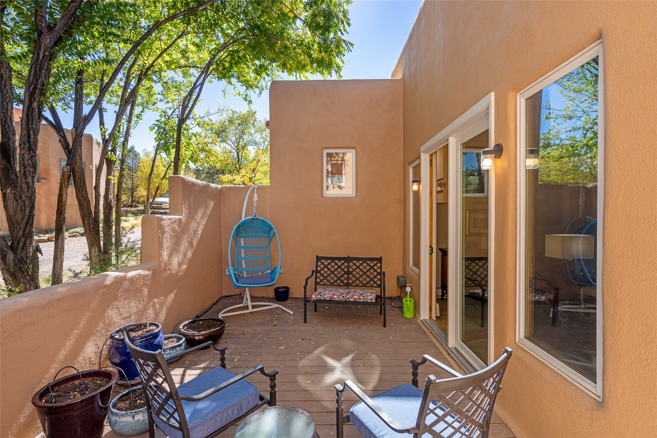 Immaculate Santa Fe Retreat in Estancia Primera! Nestled in the foothills just above the Santa Fe Plaza, this exceptional home offers the perfect blend of elegance, comfort, and location. Thoughtfully remodeled and meticulously maintained, this property is a true gem for those seeking refined Santa Fe living with modern luxury. At the heart of the home, the showstopping kitchen--remodeled by Kitchens by Jeannine--is a chef's dream. Featuring premium cabinetry with abundant storage, high-end appliances including a Viking Range and Sub-Zero Refrigerator, and striking thick-slab Esprit de Santos granite countertops with elegant copper veining, this kitchen truly inspires. Light maple wood floors flow through the living spaces, where tall beamed ceilings, double patio doors, and a classic kiva fireplace create a warm and inviting ambiance. The elevated primary suite is a private haven, complete with its own fireplace and a beautifully remodeled bath. The oversized walk-in closet is a dream, offering generous storage and thoughtful design. Two additional bedrooms--one with its own private entrance and charming Santa Fe-style bath--offer wonderful flexibility for guests or work-from-home living. Additional highlights include freshly repainted interiors, an immaculate garage with epoxy floors and new cabinetry, and a serene walking path just behind the home leading into downtown Santa Fe. Located in the sought-after Estancia Primera community, residents also enjoy access to a seasonal outdoor swimming pool and tennis courts. This immaculate foothills home combines Santa Fe charm, luxurious upgrades, and an unbeatable location--just minutes from world-class dining, galleries, and the historic Plaza.