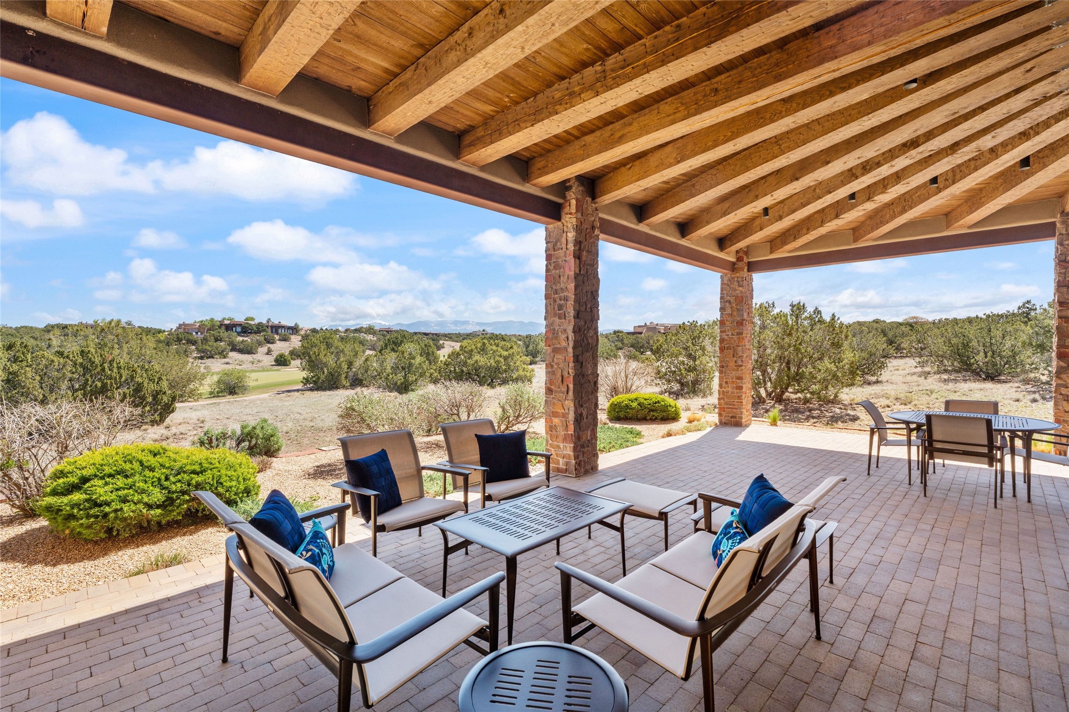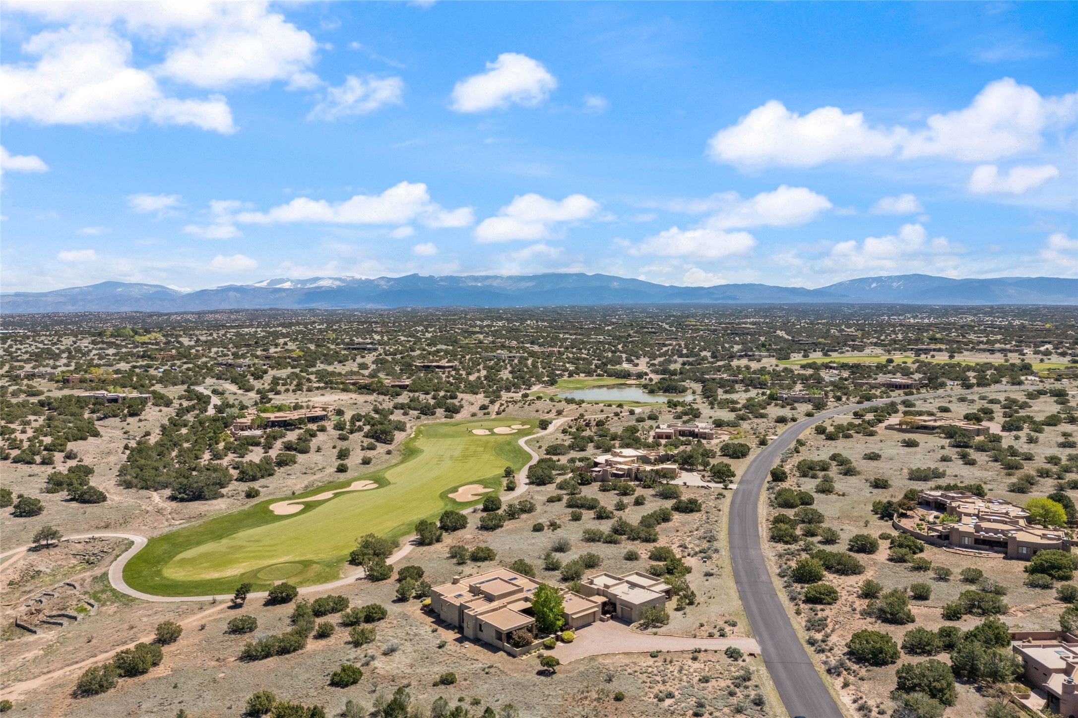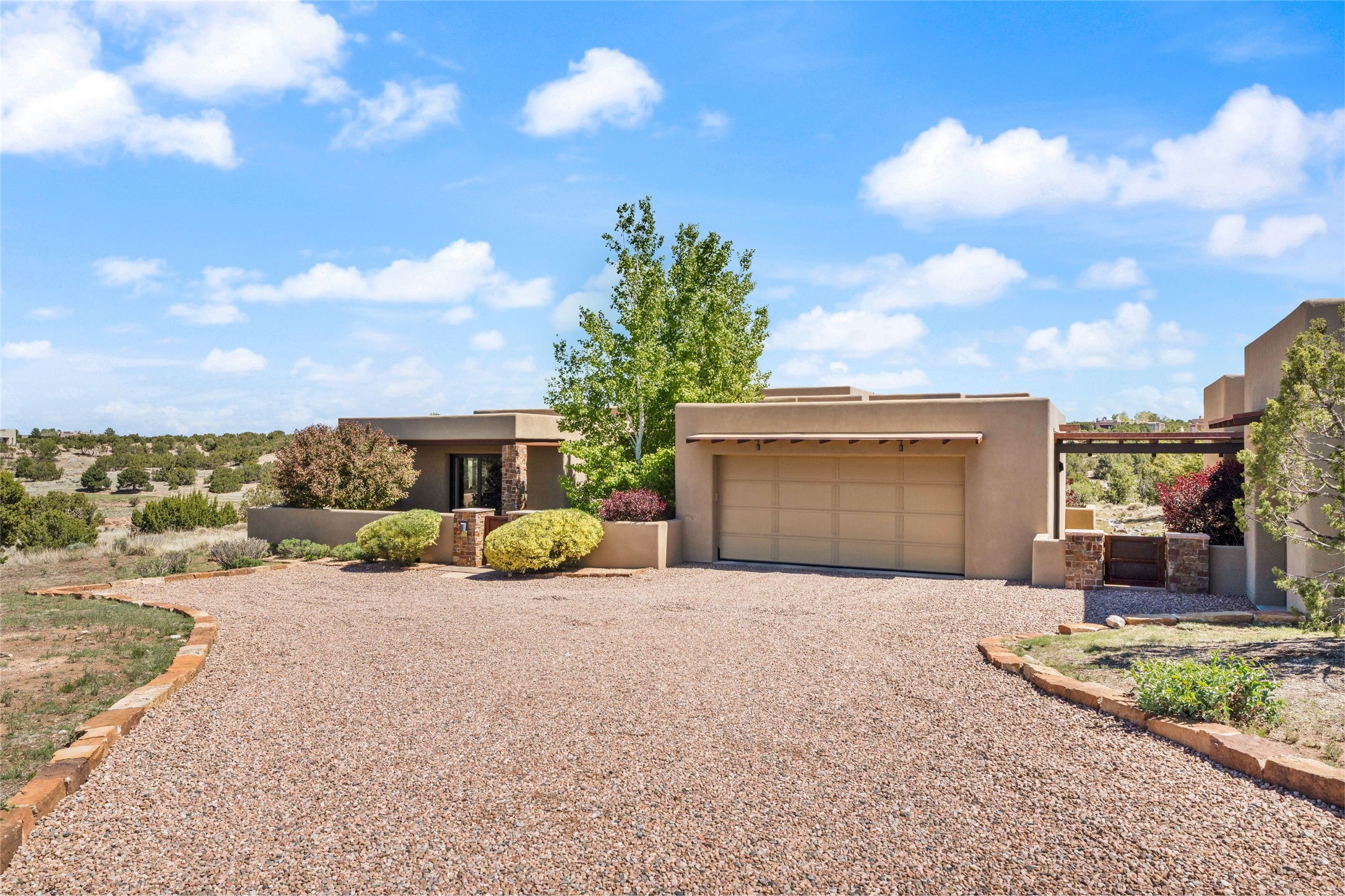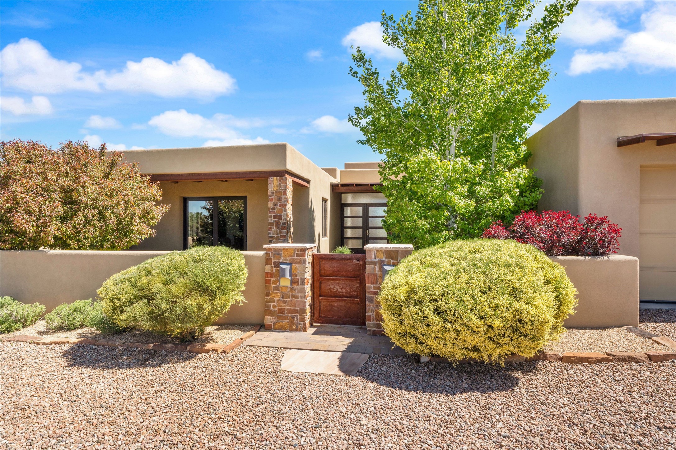 Exquisite 3-bedroom, 3.5-bath home with a detached guest house, situated on 1.45 acres overlooking the Sunrise Golf Course. This Las Campanas Estates III. property with its breathtaking distant mountain views, offering a connection to the natural beauty of the Southwest. This single-level residence, built by Tierra Concepts in 2015, features no interior steps. The light-filled living room seamlessly flows into a separate dining room and gourmet kitchen appointed with quartered walnut cabinets, a BlueStar range, Bosch dishwasher, Subzero refrigerator, and a spacious center island with a prep sink. Retreat to the primary bedroom, equipped with a gas fireplace for added warmth during cooler months and two expansive walk-in closets that provide ample storage. The guest bedroom includes a private bath and direct access to an outdoor courtyard. Additionally, an office/studio space caters to all your productivity and creative needs. The 1,186 sq. ft. guest house, added in 2020 enhances this property's appeal. It features a welcoming living room complete with a sink and mini-fridge. With one bedroom, a bath, and a one-car garage; this space is both functional and versatile. Las Campanas embodies the ultimate expression of Santa Fe living. With a separate membership to the Club at Las Campanas, available upon approval, you can enjoy exclusive access to top-tier amenities, including two Jack Nicklaus Signature Golf Courses.