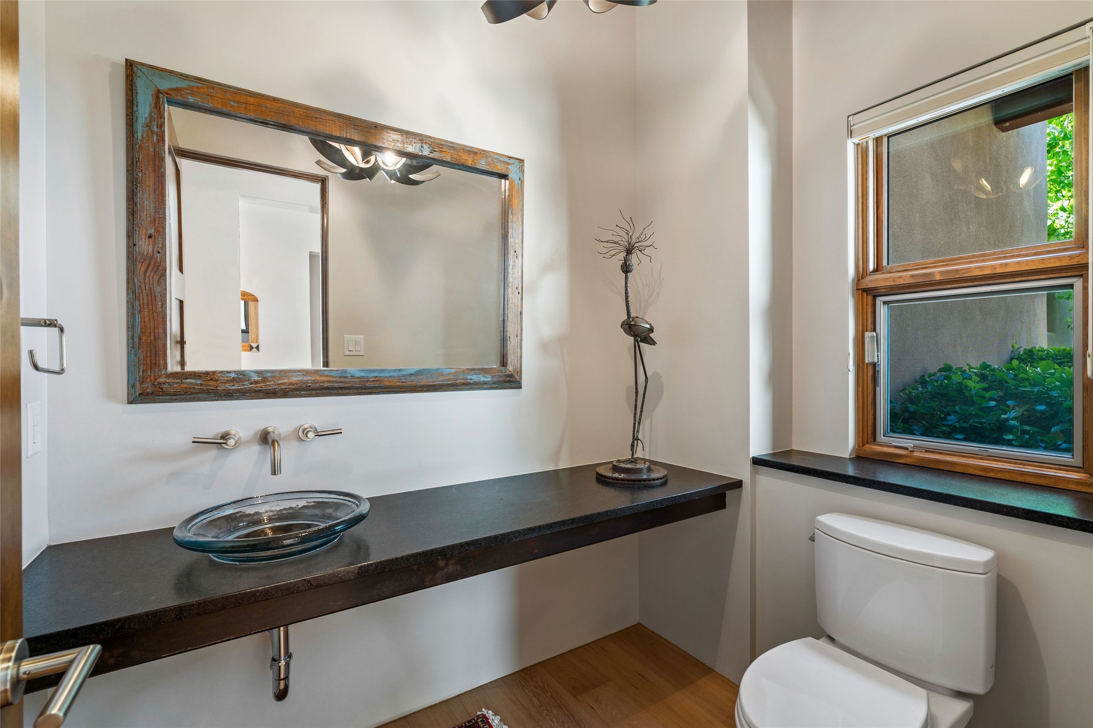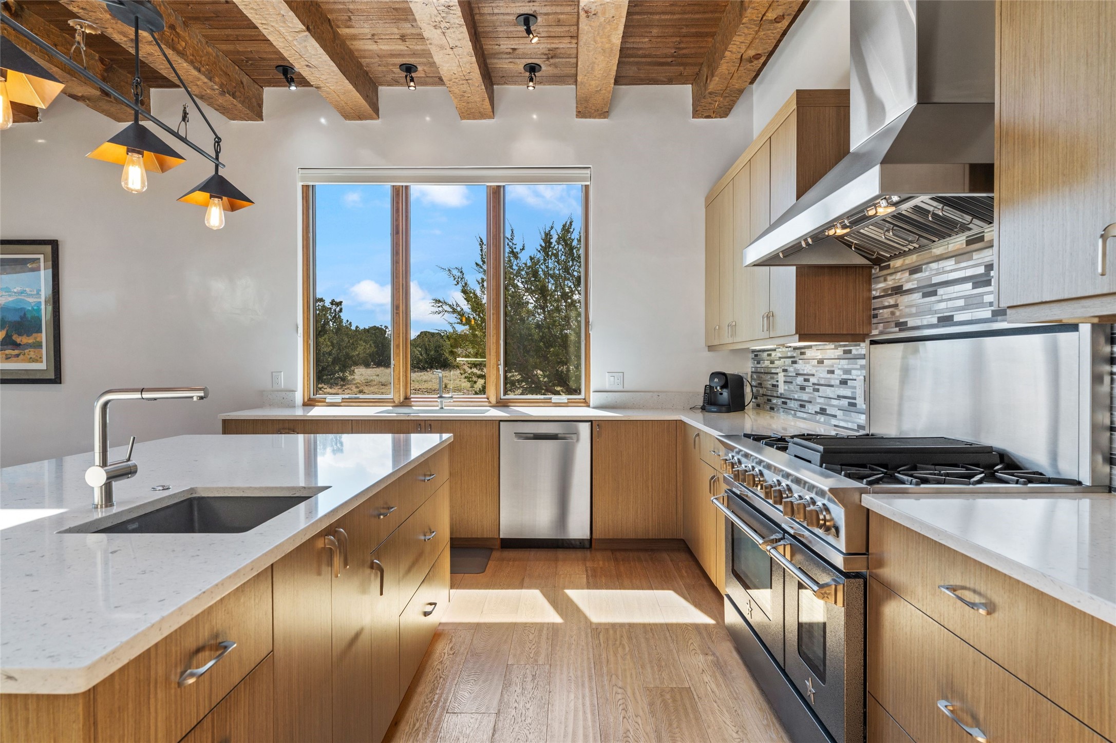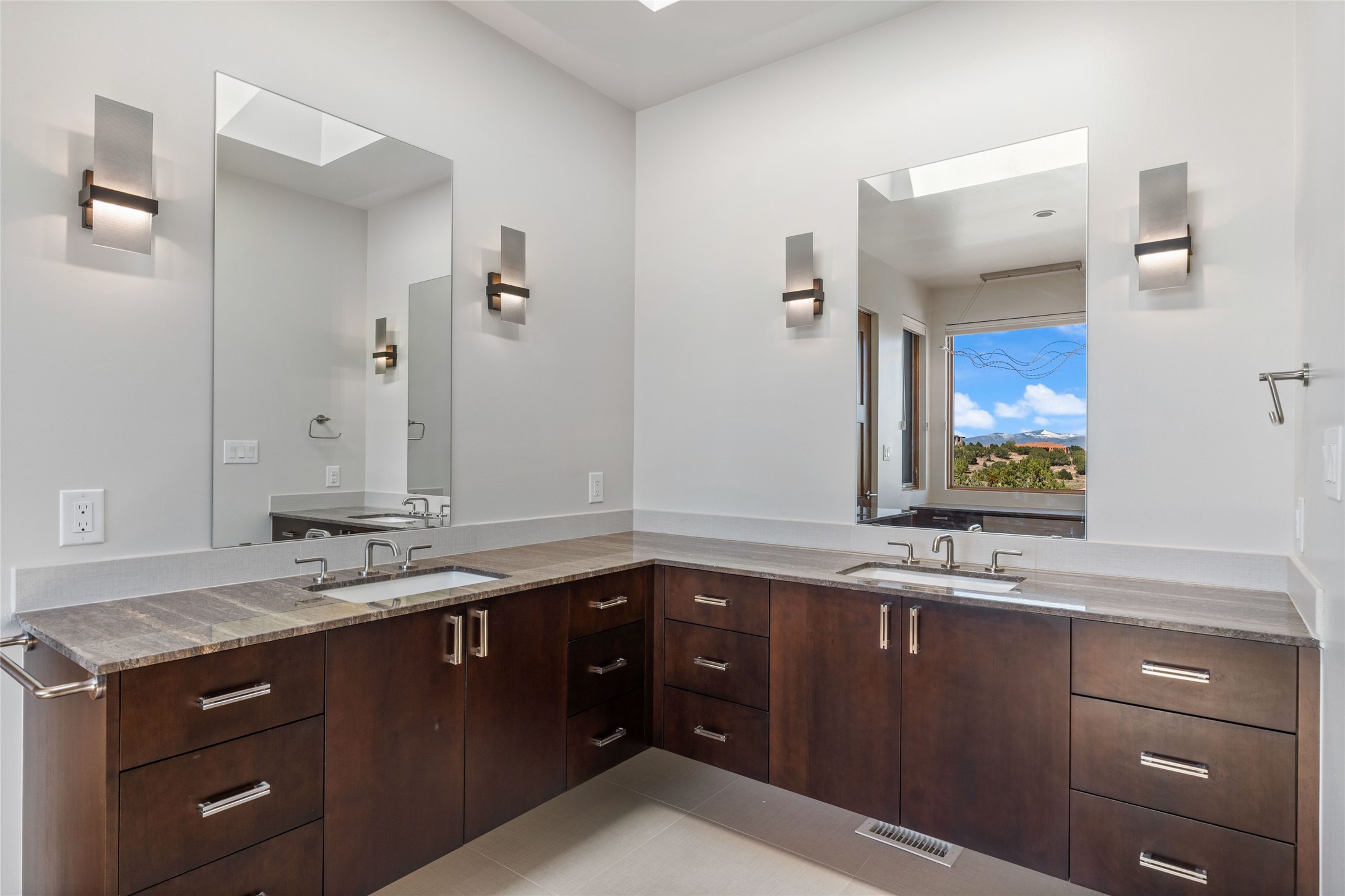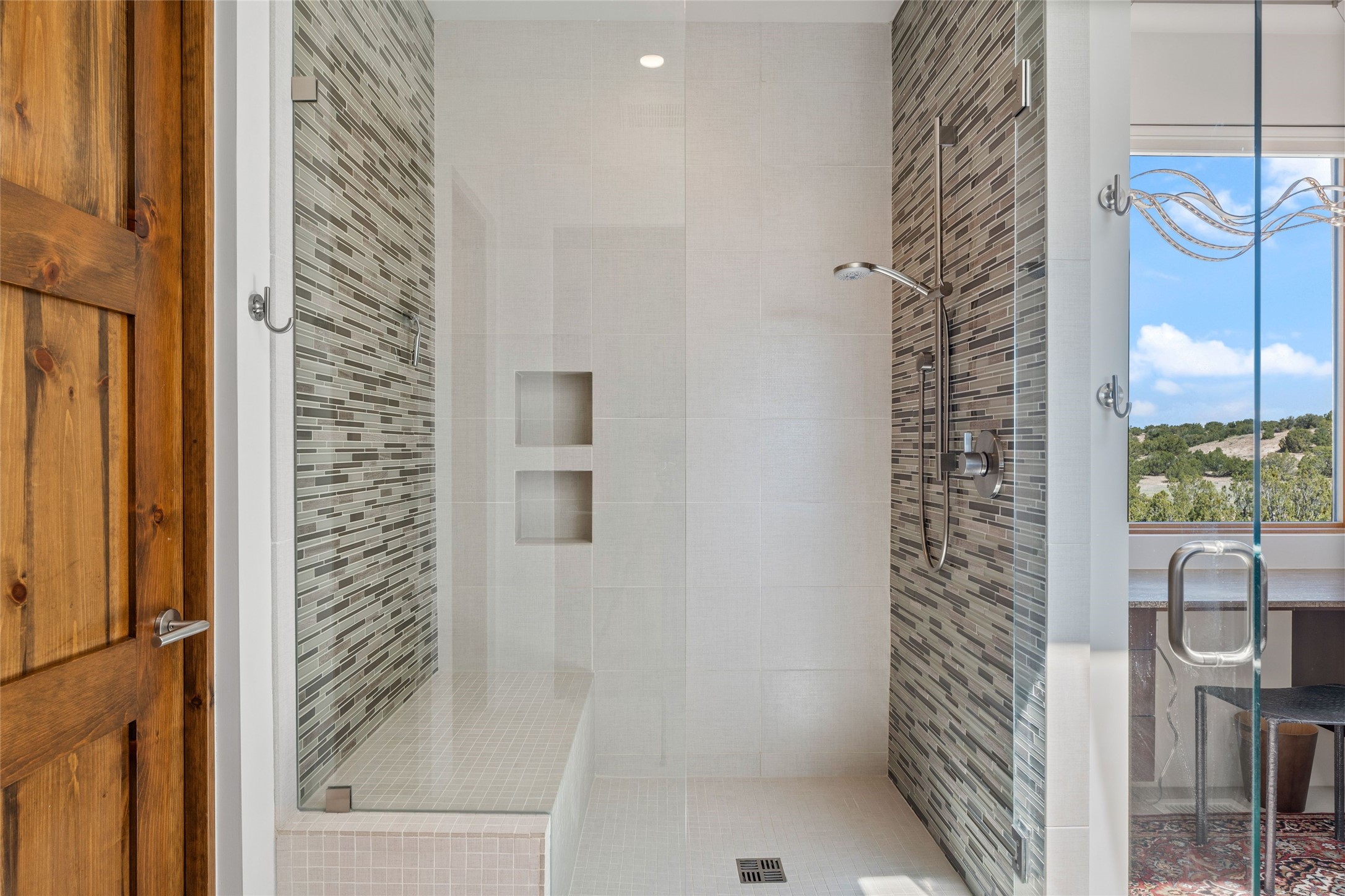 Exquisite 3-bedroom, 3.5-bath home with a detached guest house, situated on 1.45 acres overlooking the Sunrise Golf Course. This Las Campanas Estates III. property with its breathtaking distant mountain views, offering a connection to the natural beauty of the Southwest. This single-level residence, built by Tierra Concepts in 2015, features no interior steps. The light-filled living room seamlessly flows into a separate dining room and gourmet kitchen appointed with quartered walnut cabinets, a BlueStar range, Bosch dishwasher, Subzero refrigerator, and a spacious center island with a prep sink. Retreat to the primary bedroom, equipped with a gas fireplace for added warmth during cooler months and two expansive walk-in closets that provide ample storage. The guest bedroom includes a private bath and direct access to an outdoor courtyard. Additionally, an office/studio space caters to all your productivity and creative needs. The 1,186 sq. ft. guest house, added in 2020 enhances this property's appeal. It features a welcoming living room complete with a sink and mini-fridge. With one bedroom, a bath, and a one-car garage; this space is both functional and versatile. Las Campanas embodies the ultimate expression of Santa Fe living. With a separate membership to the Club at Las Campanas, available upon approval, you can enjoy exclusive access to top-tier amenities, including two Jack Nicklaus Signature Golf Courses.