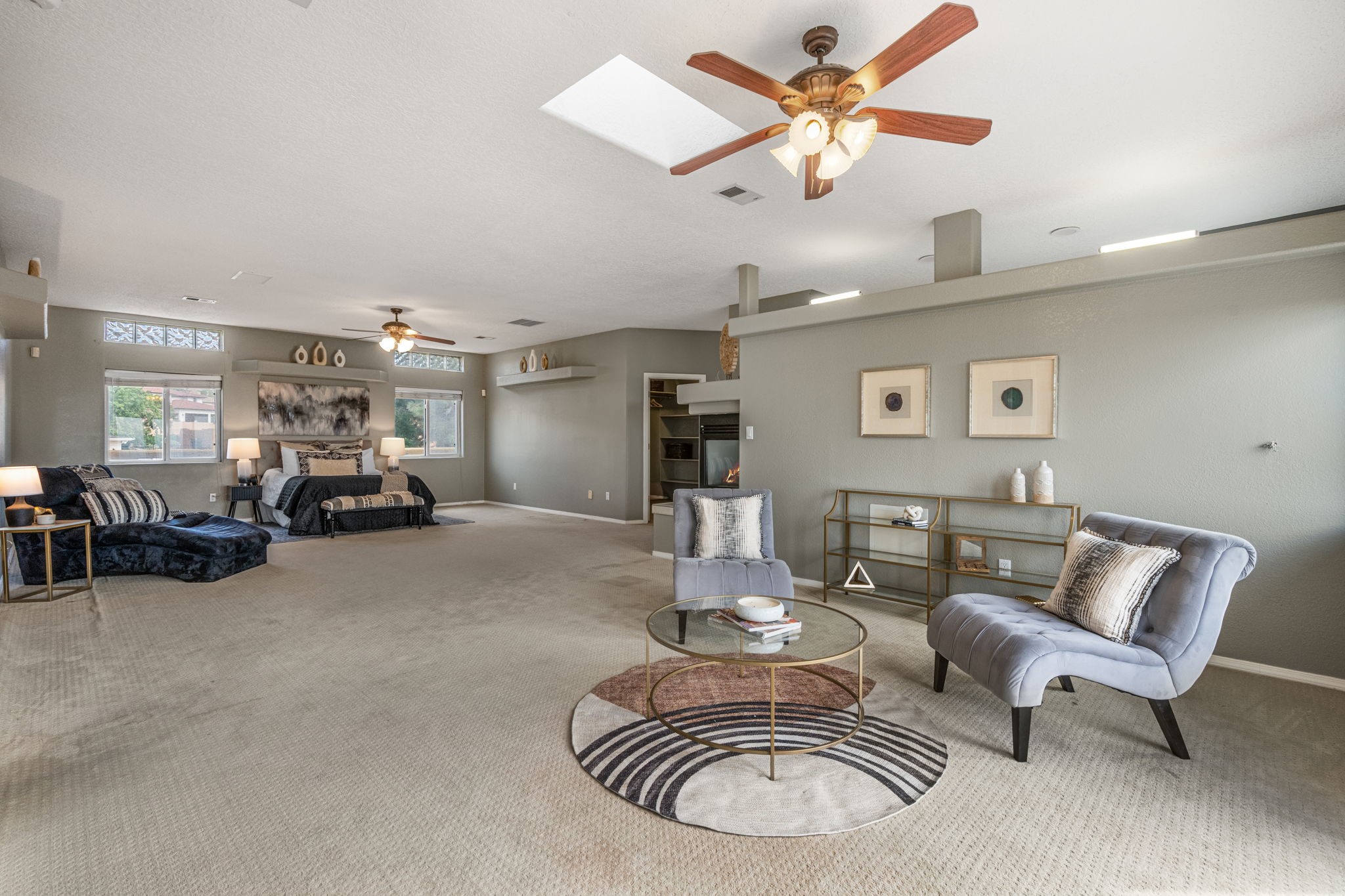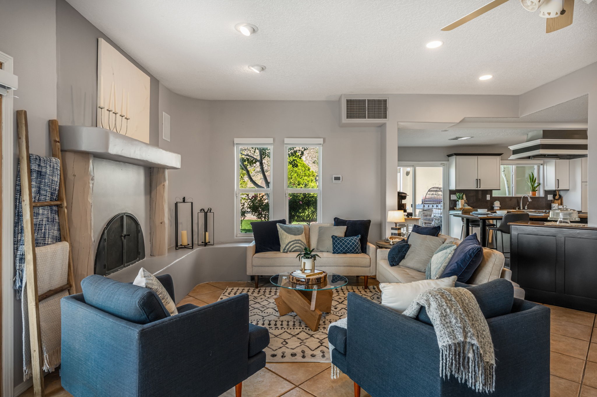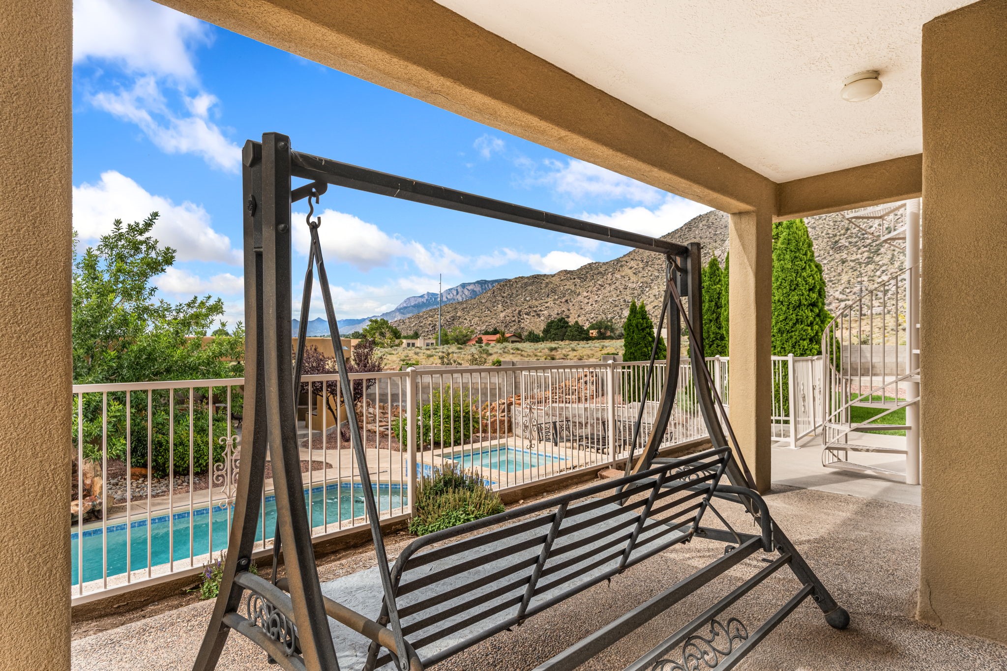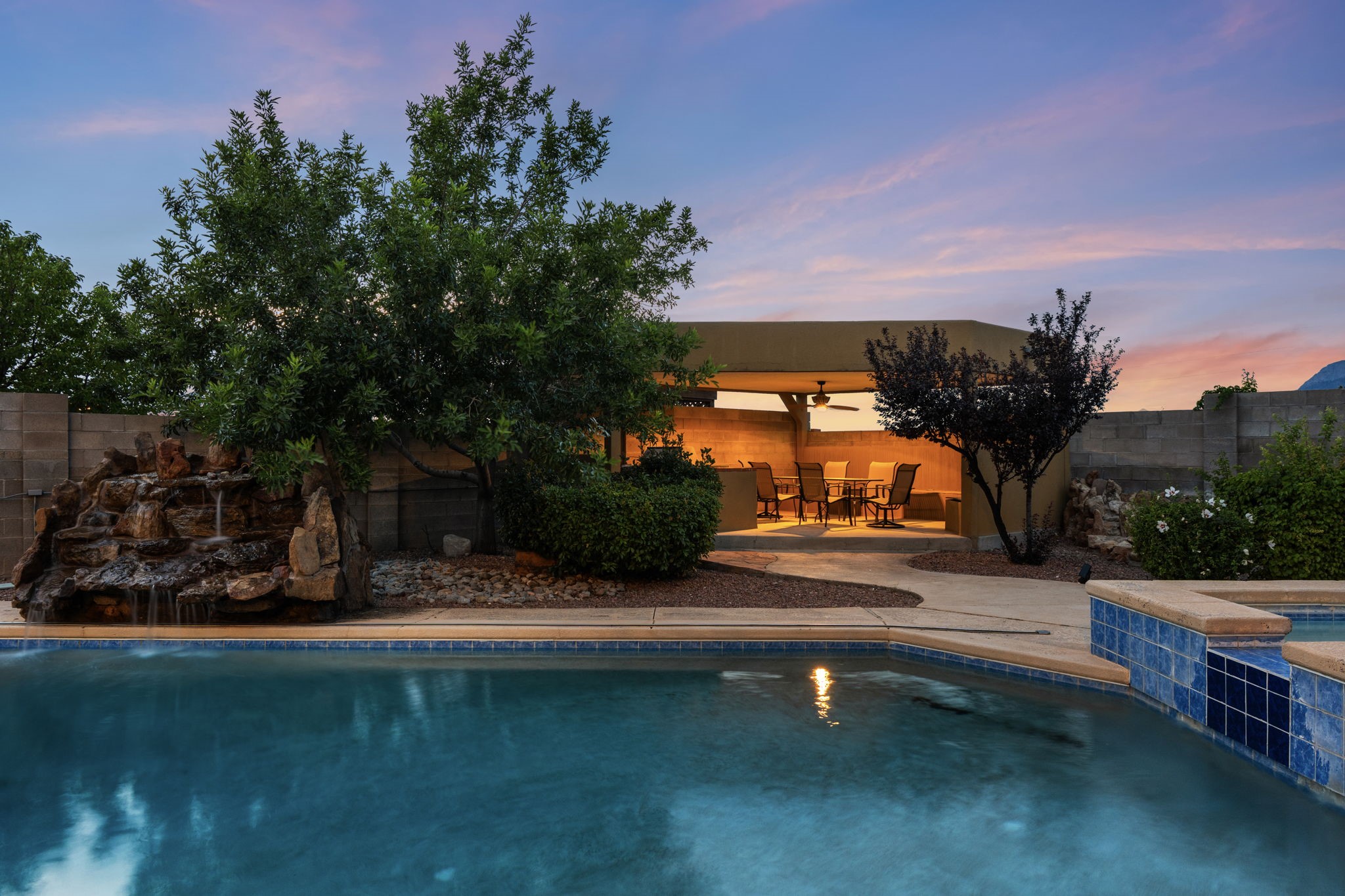 This elegant 1809 Archuleta Dr NE. This expansive 6-bedroom, 4-bath home offers an updated kitchen that blends style and functionality, two primary suites, a spacious upstairs living/game room with a bar, and an inviting atrium. Enjoy a cinematic experience in the private movie theater room, or take advantage of the tandem pull-through garage, which leads to a beautifully landscaped backyard. Nestled next to Embudo Canyon, the property ensures privacy and tranquility. The outdoor space includes an inground pool, outdoor kitchen, fruit trees (peach, cherry, apricot), and grapevines--perfect for both relaxation and entertainment.