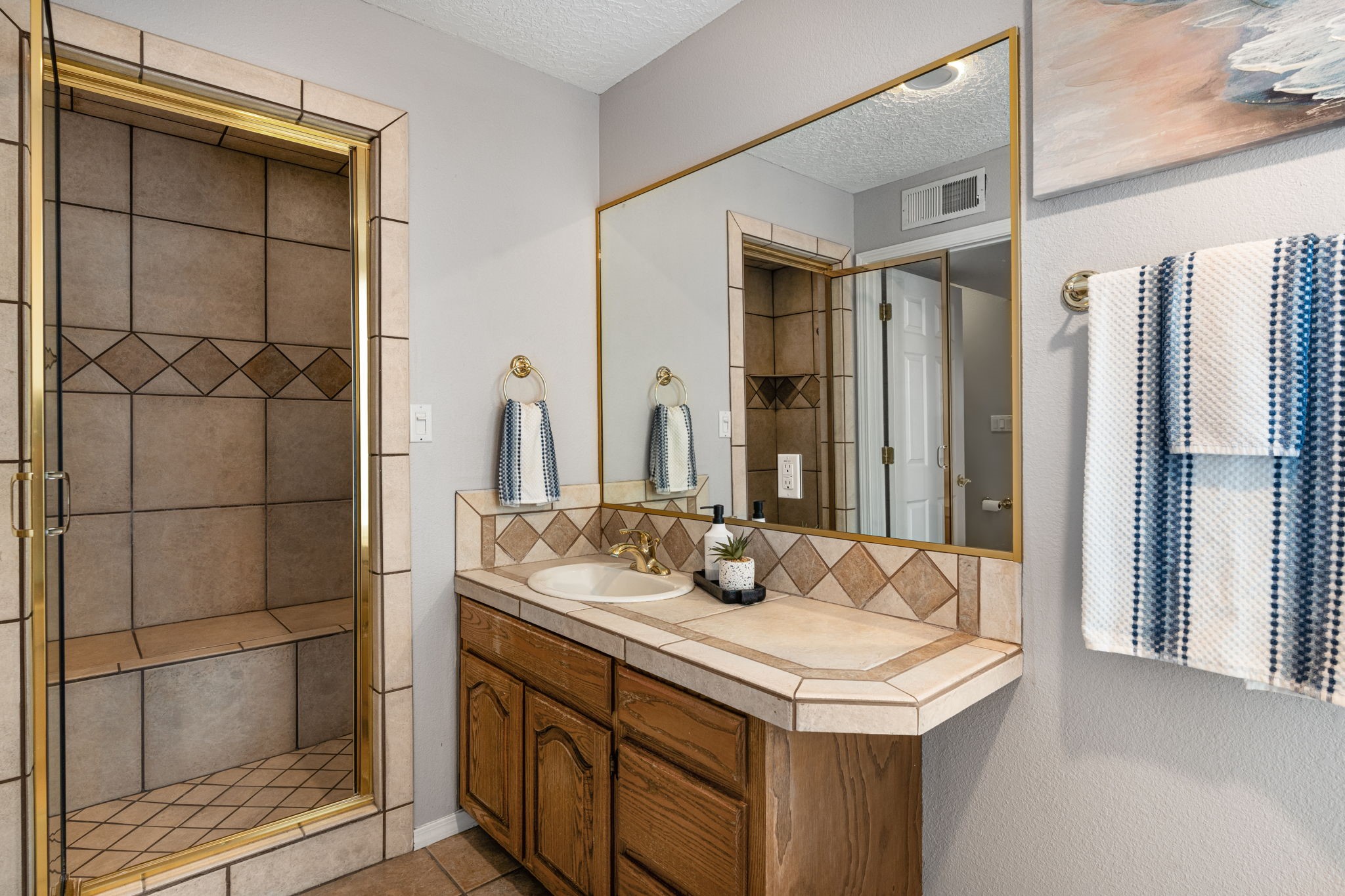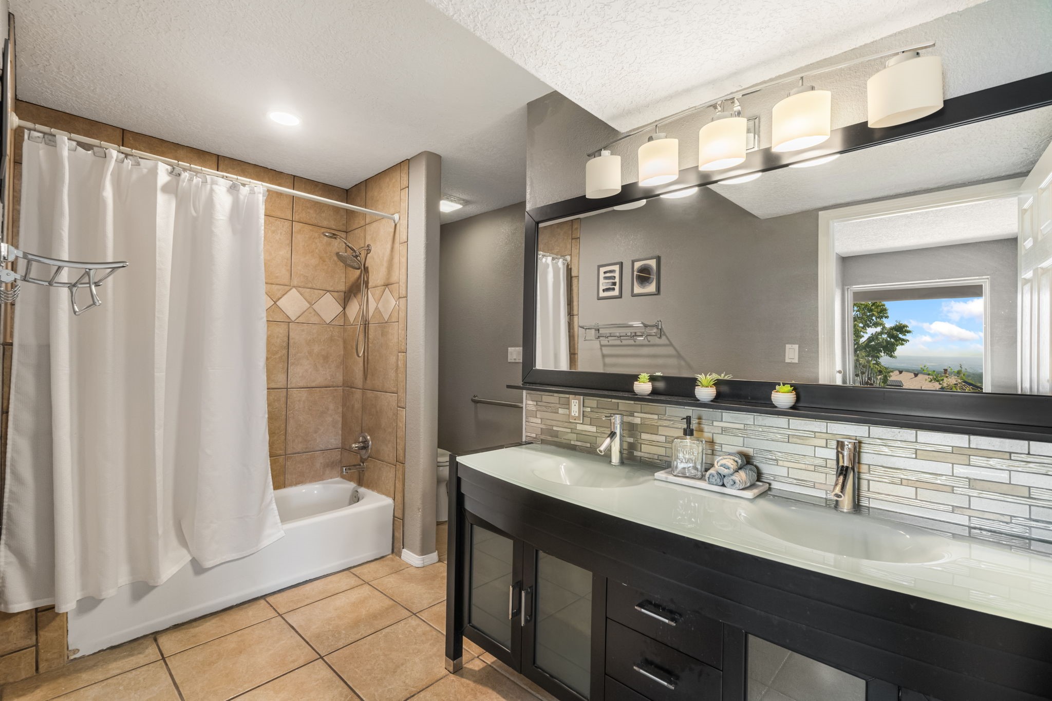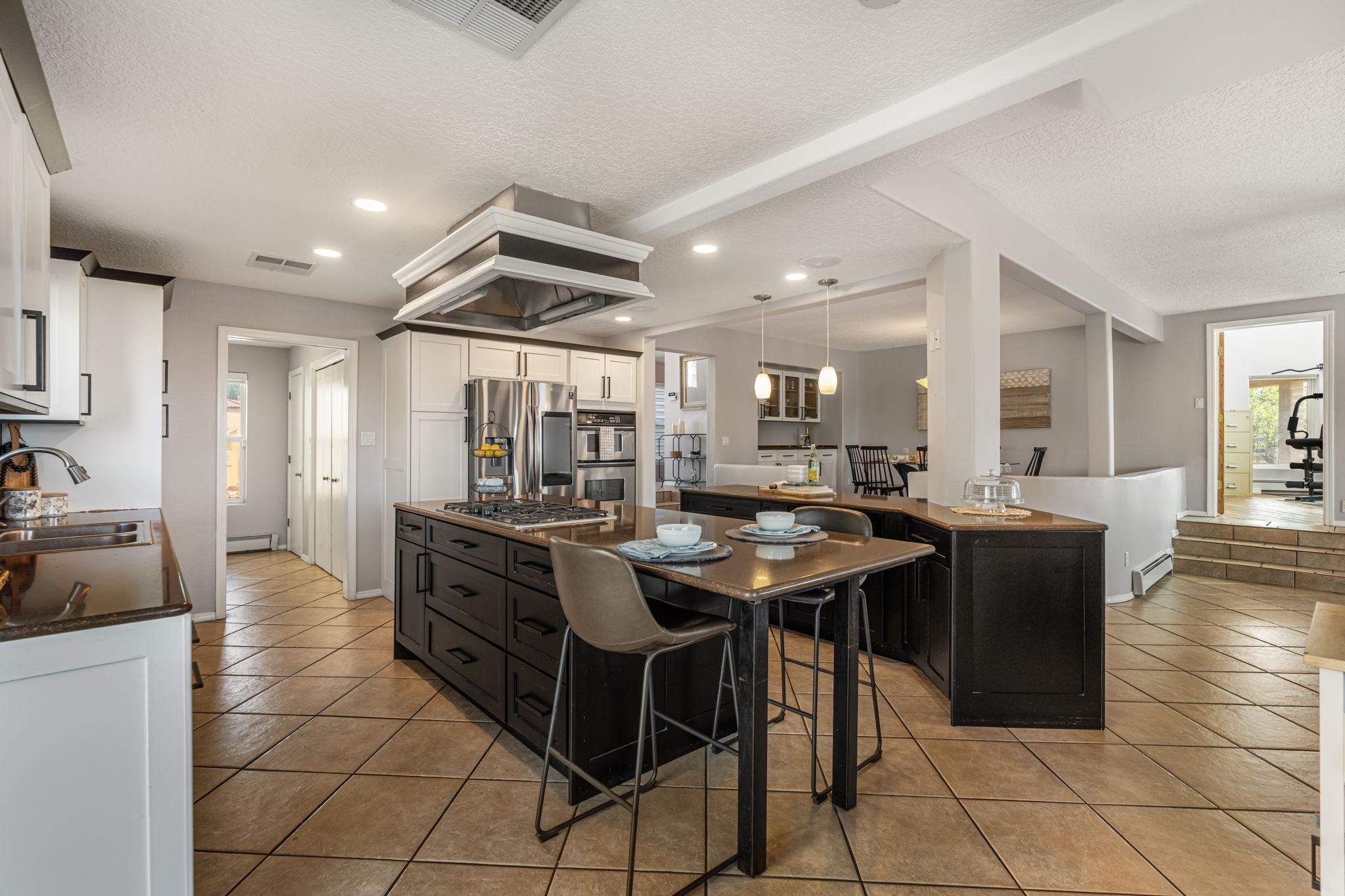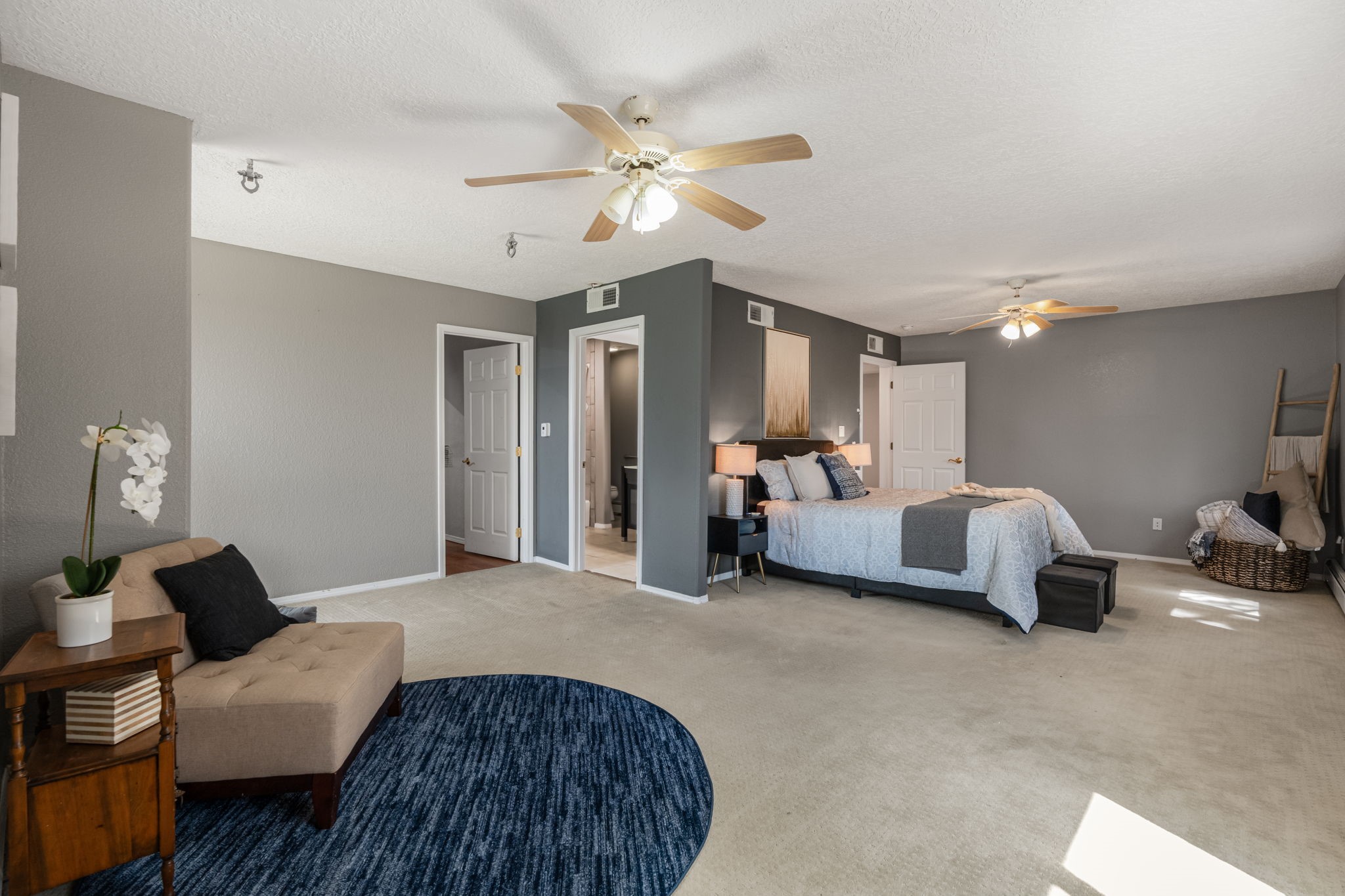 This elegant 1809 Archuleta Dr NE. This expansive 6-bedroom, 4-bath home offers an updated kitchen that blends style and functionality, two primary suites, a spacious upstairs living/game room with a bar, and an inviting atrium. Enjoy a cinematic experience in the private movie theater room, or take advantage of the tandem pull-through garage, which leads to a beautifully landscaped backyard. Nestled next to Embudo Canyon, the property ensures privacy and tranquility. The outdoor space includes an inground pool, outdoor kitchen, fruit trees (peach, cherry, apricot), and grapevines--perfect for both relaxation and entertainment.