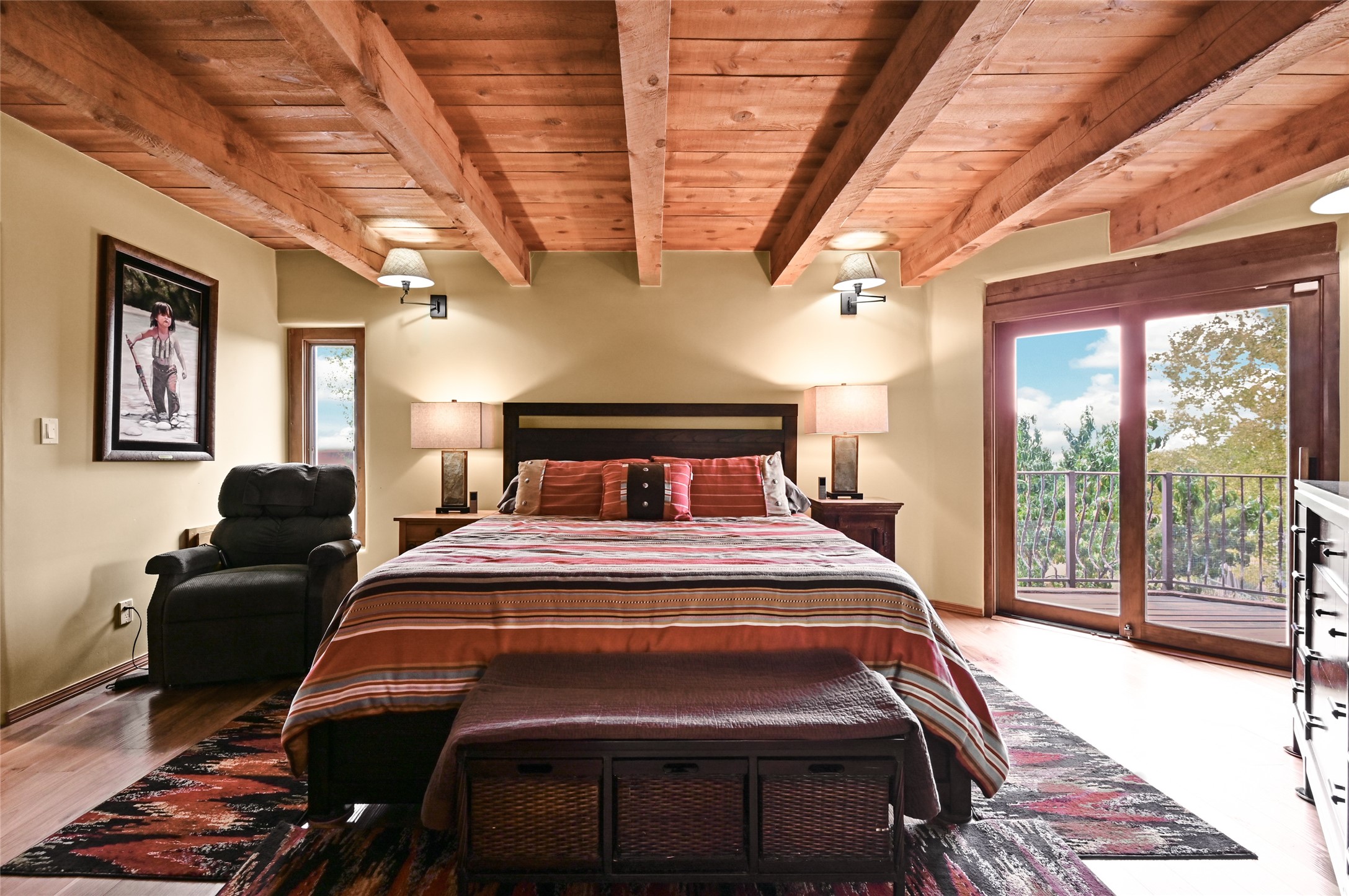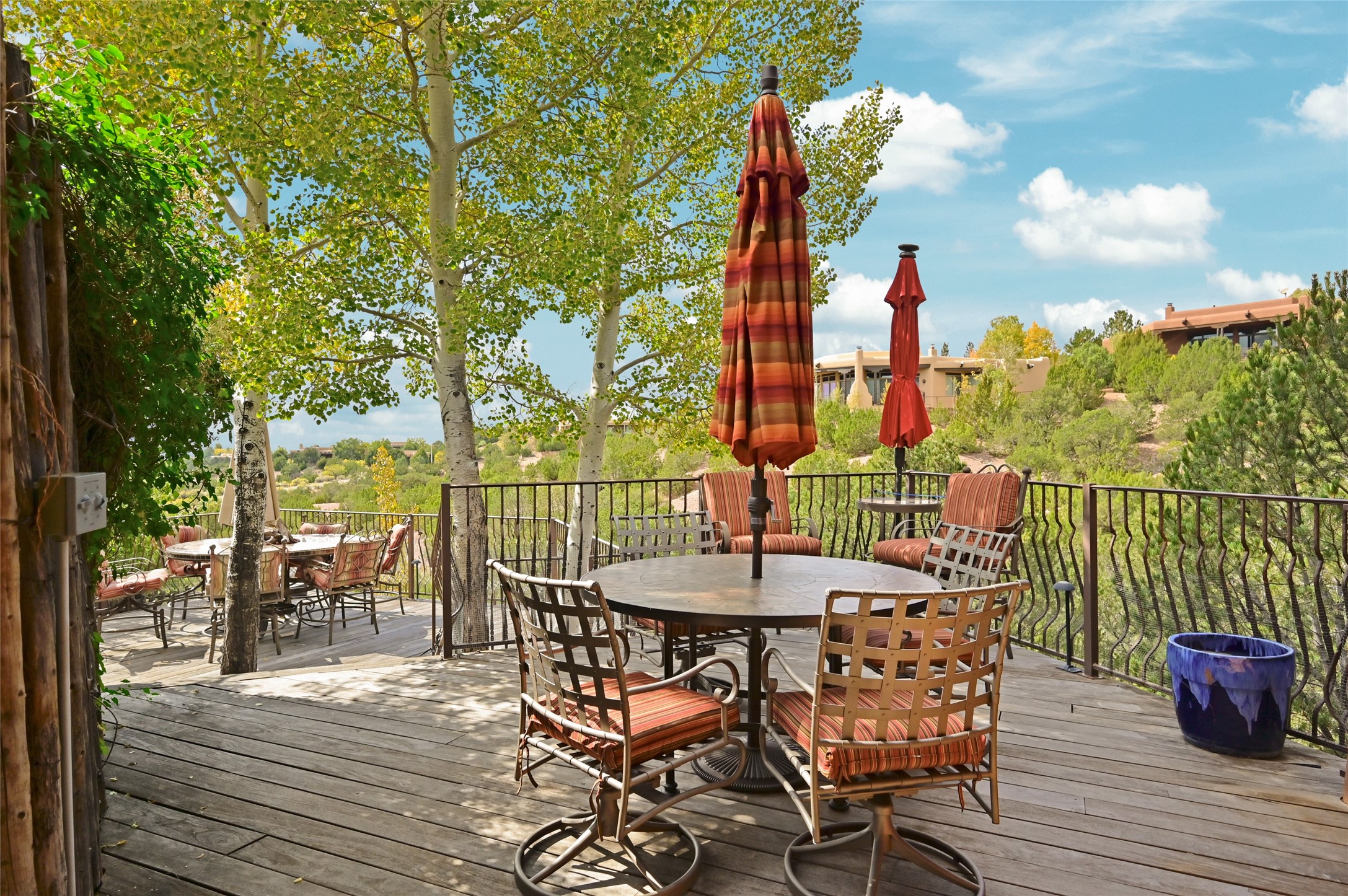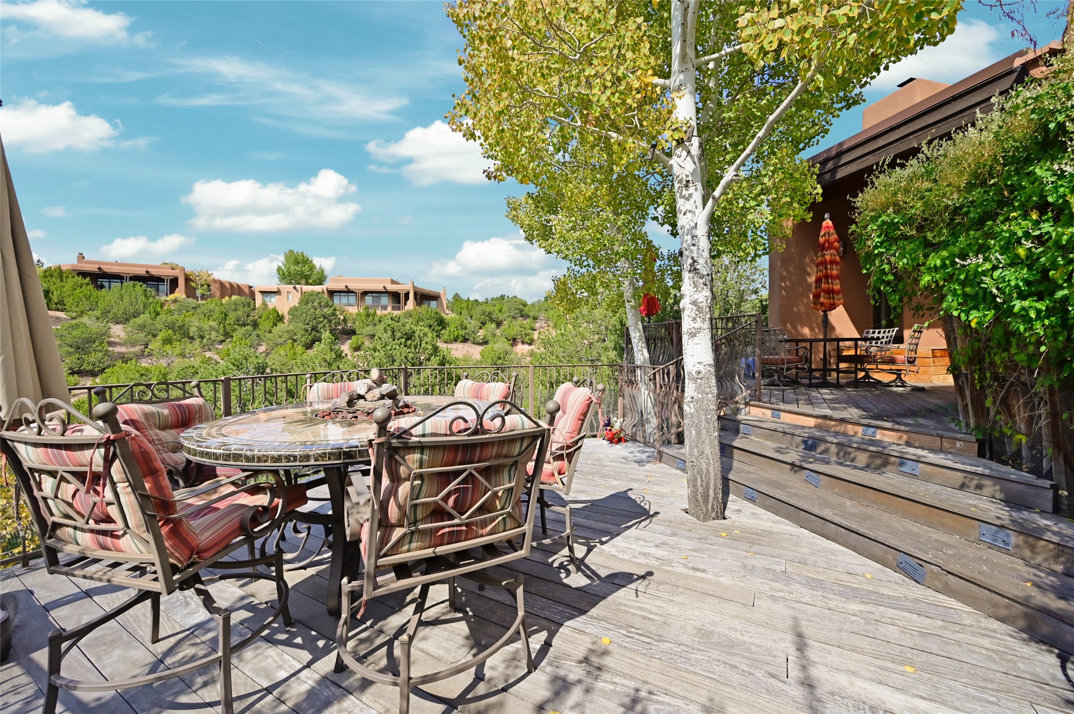Tucked in the peaceful Santa Fe foothills, this beautiful Estancia Primera home offers comfort, character, and a wonderful sense of place. Thoughtfully designed for both everyday living and entertaining, the home blends classic Santa Fe details with warm, inviting spaces that flow easily indoors and out. The flexible four-bedroom layout includes a spacious primary suite with a private balcony that captures natural light and views to the South. Distinct living and dining areas connect to the kitchen and a cozy breakfast nook, creating ideal spaces for gathering and conversation. With ample flexible spaces and bedrooms, the floor plan provides room for an office, studio, or media space, accommodating a variety of lifestyles. Step outside to enjoy the patio and a large deck oriented to the southwest; perfect for relaxing in the sun, enjoying the mature aspen trees, or hosting evening gatherings beneath Santa Fe's gorgeous skies. The two-car attached garage adds everyday convenience, while the location offers an ideal balance of privacy and proximity. Just minutes from the historic Santa Fe Plaza, Fort Marcy Park, and is off the road to Ski Santa Fe, this serene retreat invites you to experience the best of Santa Fe living.