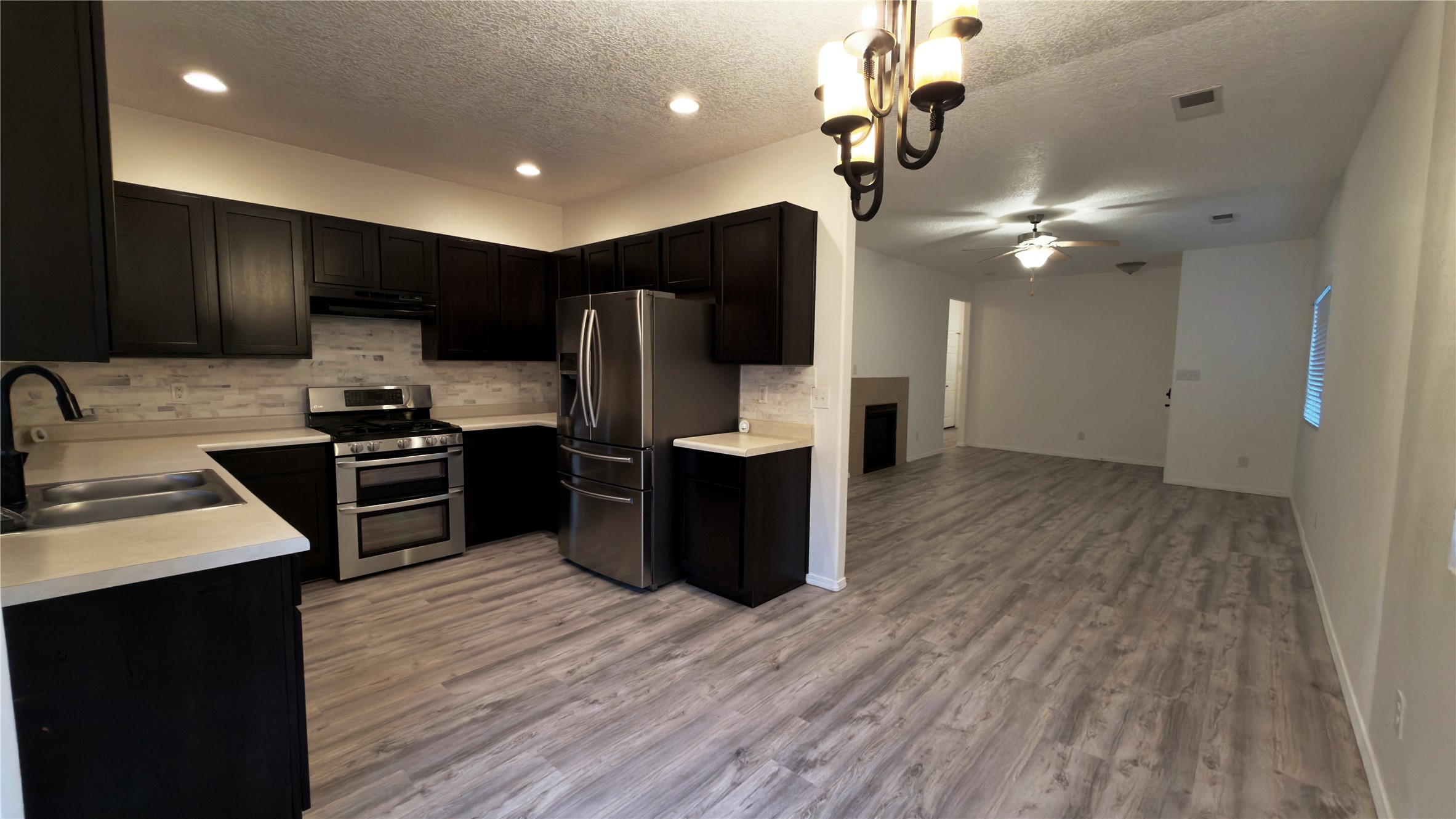 This inviting 4-bedroom, 2-bath home blends modern updates with classic Santa Fe style. Recent improvements include a new roof (2020), new stucco (2024), fresh interior paint, and new carpet and luxury vinyl flooring throughout. The kitchen features a stylish tile backsplash, and a tiled office provides the perfect space for working from home or creative pursuits. Spacious bedrooms and bright living areas create a comfortable and welcoming atmosphere. Conveniently located in a peaceful neighborhood with easy access to the highway for smooth commuting, this home is move-in ready and beautifully maintained.
