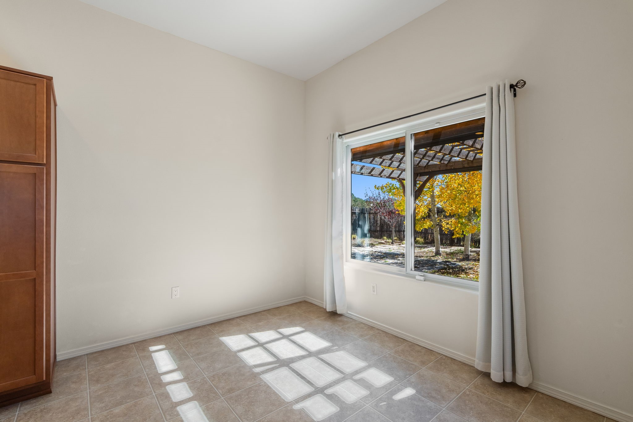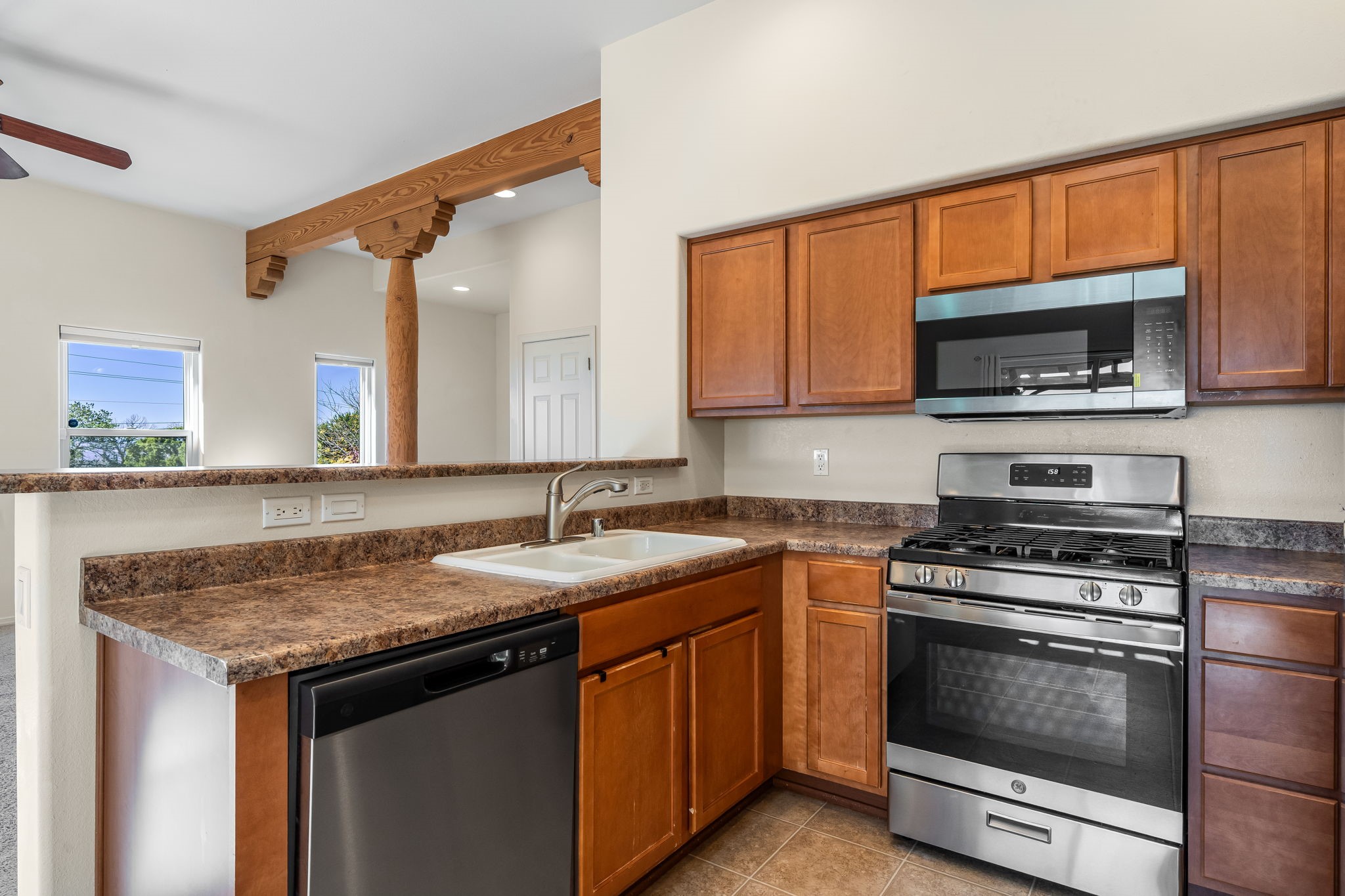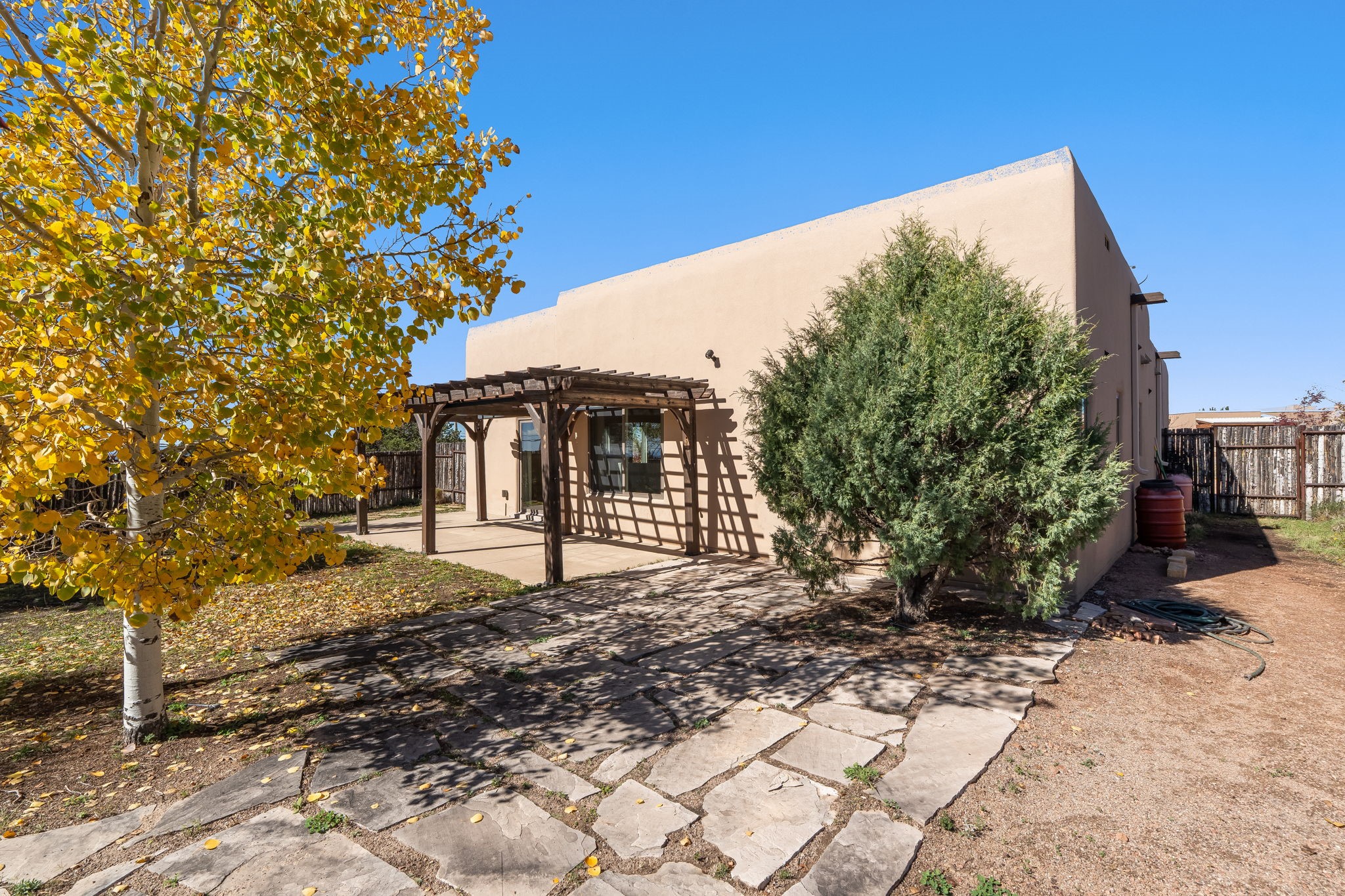 Mountain views from this sunny and charming single-level home with in-floor radiant heat. Located in the WOOD GORMLEY school district and on a cul-de-sac this home has been pre-inspected and is super clean and ready to go. All new stainless appliances with an open floorplan with kitchen, living and dining rooms. Spacious main primary bedroom with double sinks in the 3/4 bath and a walk in closet. Roof maintenance in 2024 with a 2-year warranty. Yard is landscaped on a drip and is fully fenced with two happy Aspen trees in the backyard. Gas fireplace in living room. Proper laundry room with 2024 washer and dryer. Ideal location close to shopping, schools, hospitals and 10 minutes from the Santa Fe Plaza. Six rain barrels stay with the property. There is a whole-house fan and surge protection. ADT alarm system can be transferred to new owners.