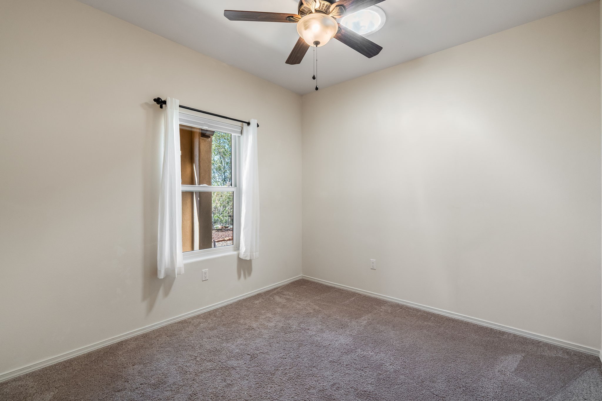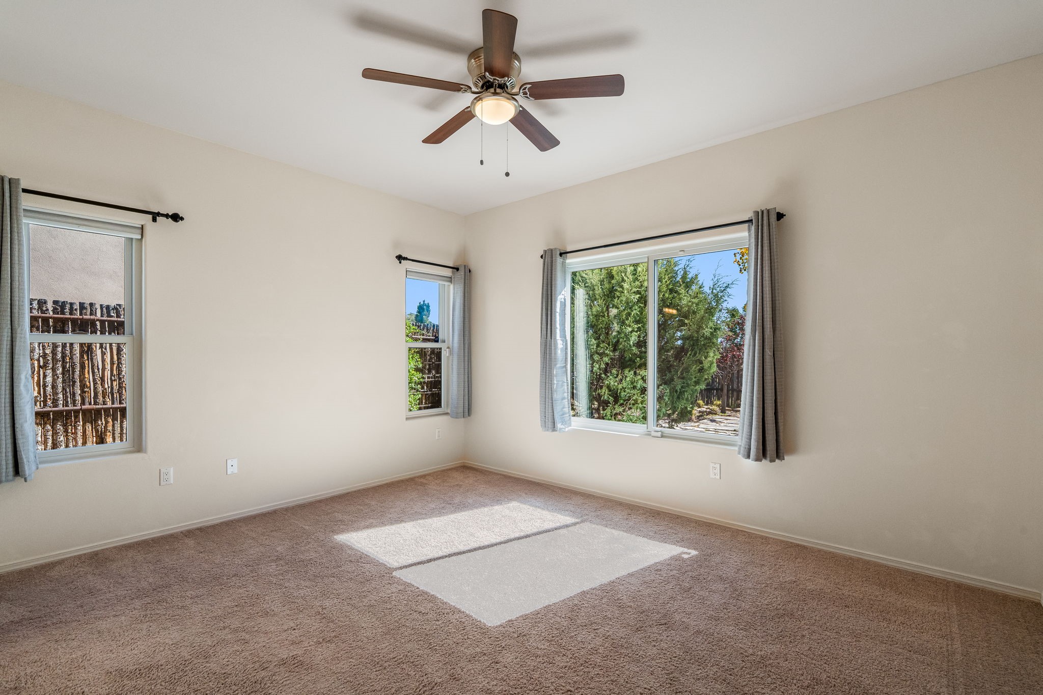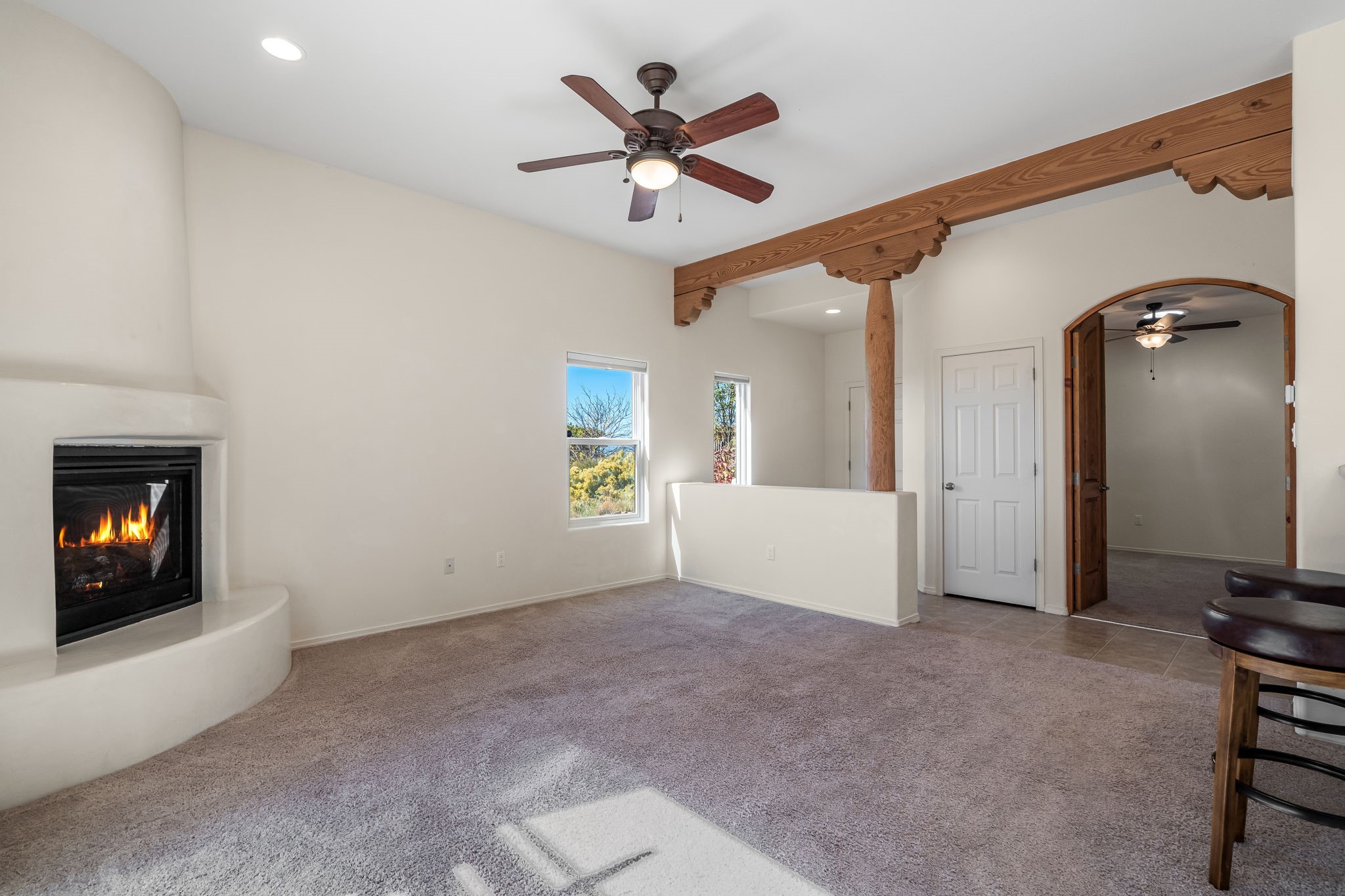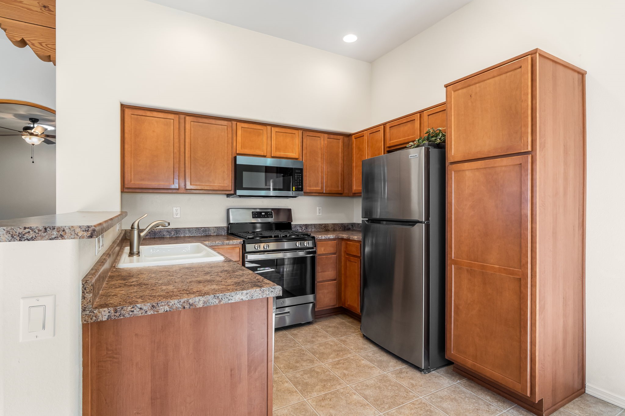 Mountain views from this sunny and charming single-level home with in-floor radiant heat. Located in the WOOD GORMLEY school district and on a cul-de-sac this home has been pre-inspected and is super clean and ready to go. All new stainless appliances with an open floorplan with kitchen, living and dining rooms. Spacious main primary bedroom with double sinks in the 3/4 bath and a walk in closet. Roof maintenance in 2024 with a 2-year warranty. Yard is landscaped on a drip and is fully fenced with two happy Aspen trees in the backyard. Gas fireplace in living room. Proper laundry room with 2024 washer and dryer. Ideal location close to shopping, schools, hospitals and 10 minutes from the Santa Fe Plaza. Six rain barrels stay with the property. There is a whole-house fan and surge protection. ADT alarm system can be transferred to new owners.