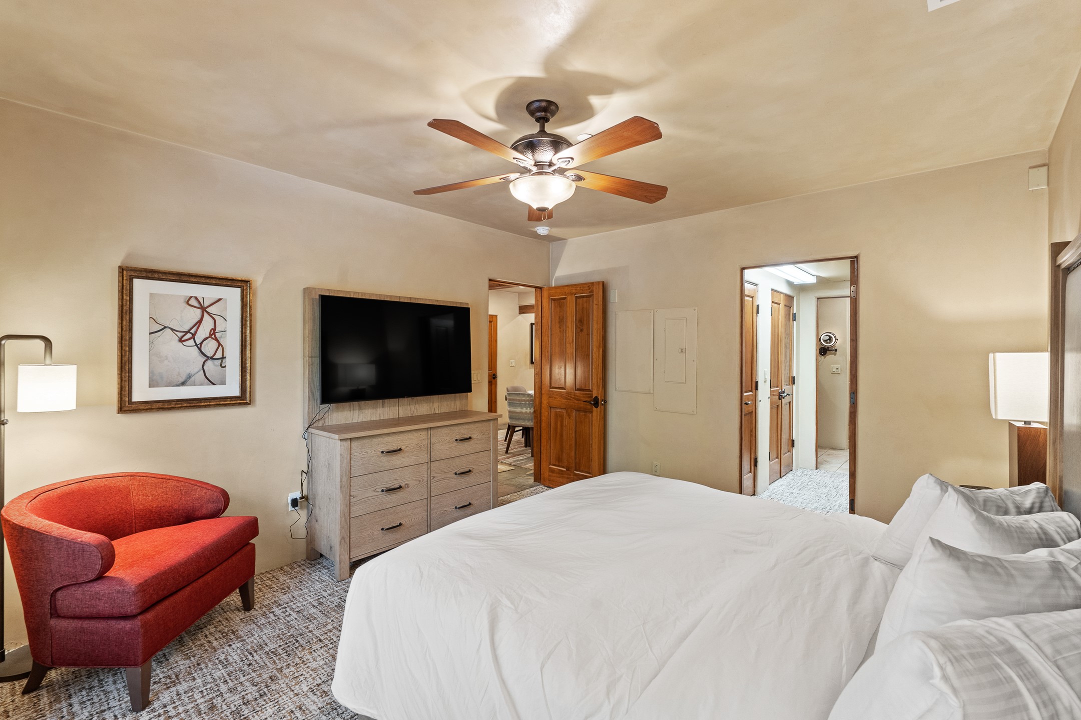 **Seller will pay 6 months of HOA fees at closing with a full-price offer!** This is a fractional ownership offering: Eighth Share Estate H, consisting of an undivided 12.5% (one-eighth) interest as tenant-in-common in Eighth Share Unit 48 at El Corazon de Santa Fe. It is a deeded 1/8th share in Terra floorplan #48H. Owners are entitled to 4 weeks per year, with the possibility of more time if it's available. Two luxurious bedrooms and bathrooms, 1300 sqft, all single level. There is a main living room with fireplace, state-of-the-art kitchen with stainless steel appliances, separate dining area, master bath with dual vanities and jetted tub, private patio, and outdoor and covered garage parking available, accessed with key code. On-site gym, beautiful outdoor gathering spaces, gated property. Walk everywhere from this condo in the heart of downtown. Owners can exchange time through the Hyatt Vacation Club and Registry Collection.