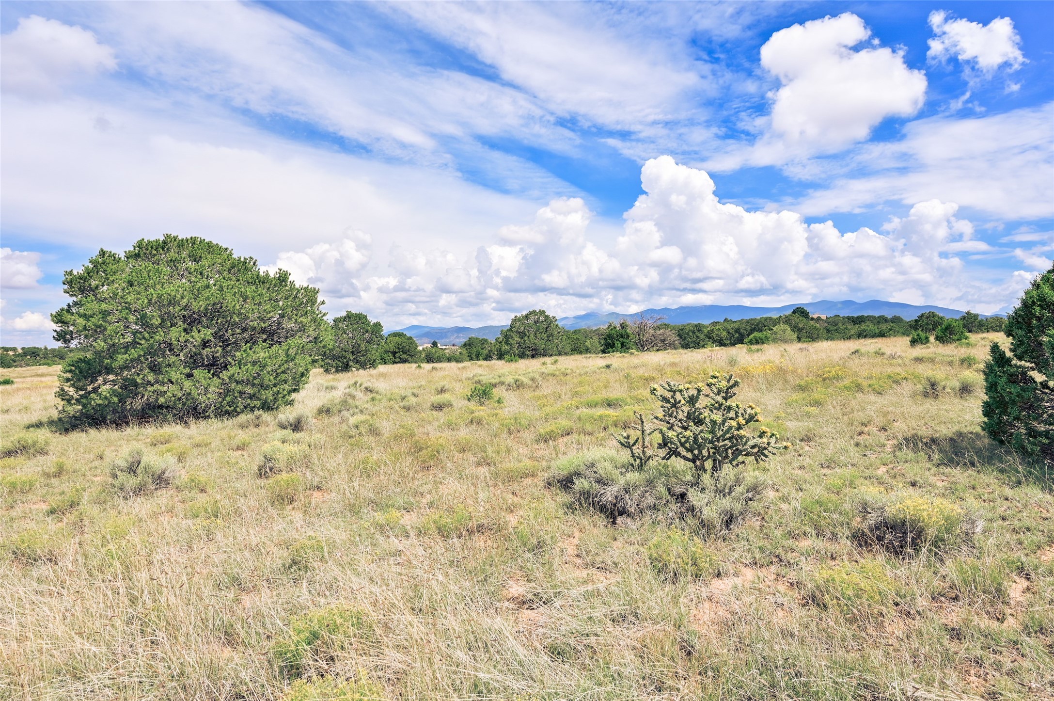 This wonderful, gated property has big views of Sangres de Cristo Mountains and sunset views over the Jemez Mountains. This is a no hassle site, with flat terrain for easy building, a shared well not subject to Aamodt and simple covenants only 15 minutes from the plaza. This gorgeous property is ready for your beautiful new home.