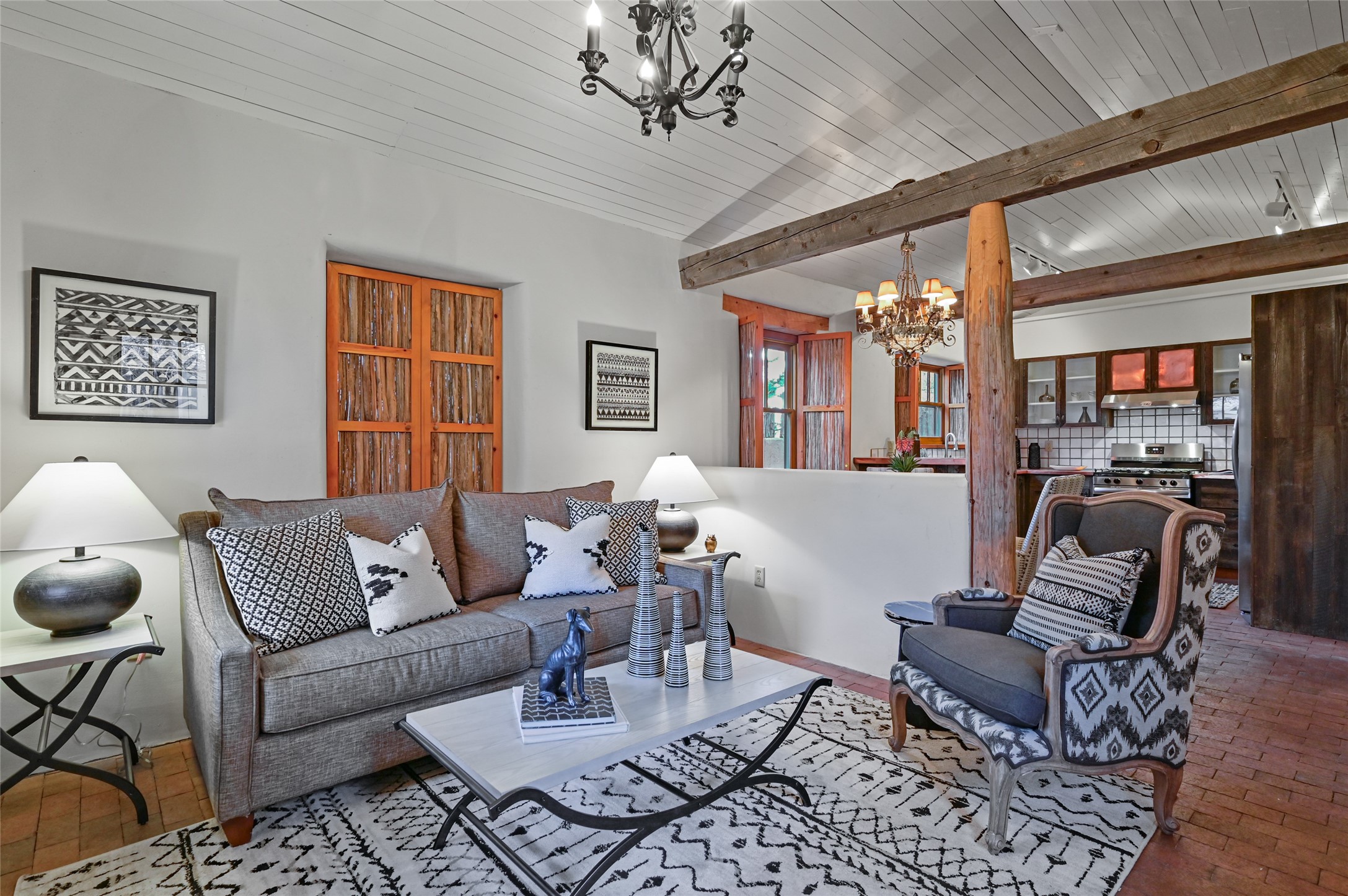 Discover the perfect gated downtown pied--terre--an ideal getaway second home or an effortless lock-and-leave casita for full-time living in Santa Fe. This charming residence features classic Santa Fe character throughout, including brick floors, hand-crafted wood shutters made with latillas, and timeless post-and-beam accents. High ceilings enhance the sense of space, while radiant heat keeps the home cozy and warm. Enjoy privacy, convenience, comfort, and the benefit of new appliances in a beautifully maintained, inviting retreat.