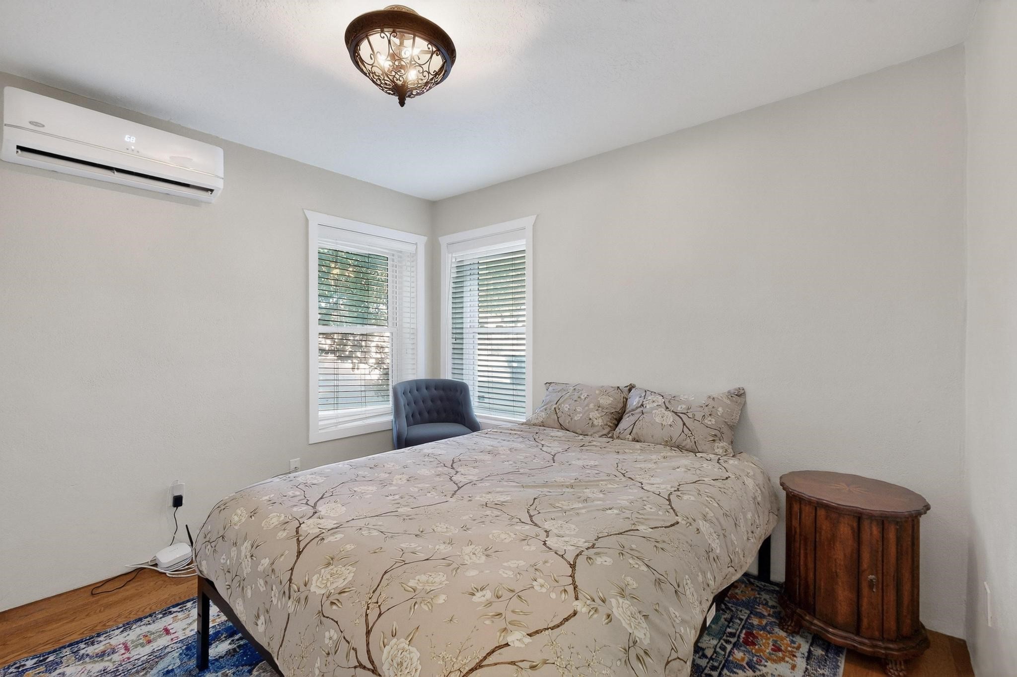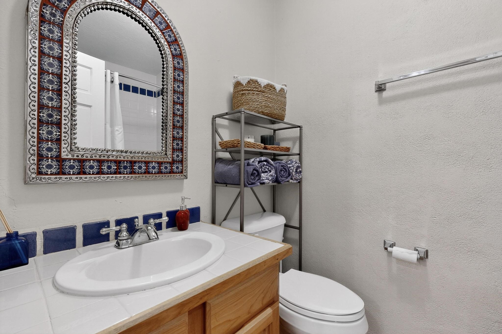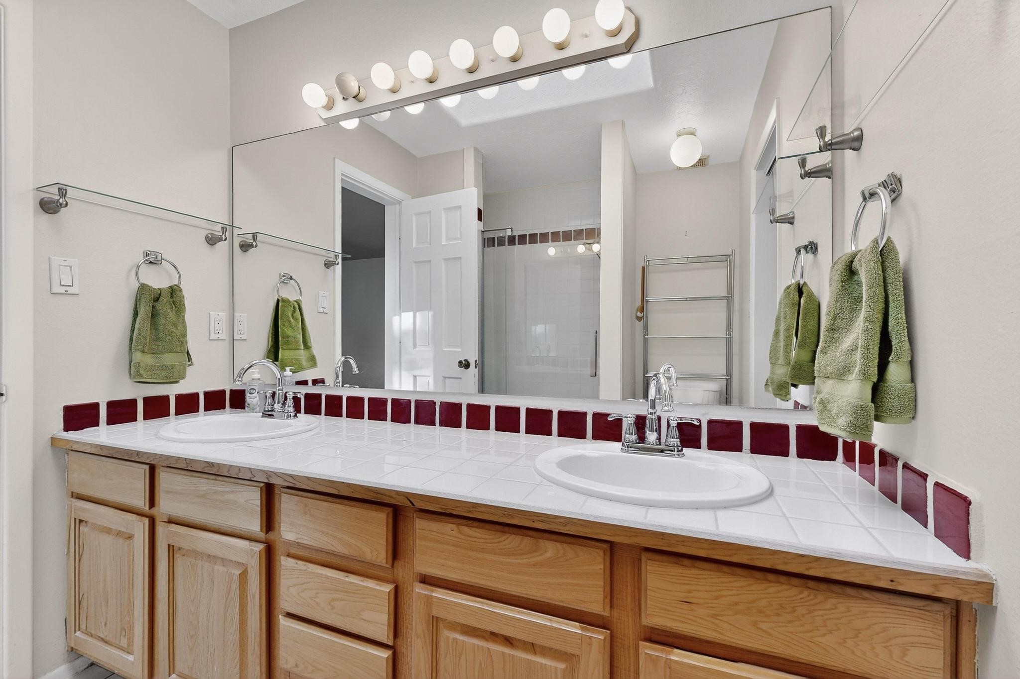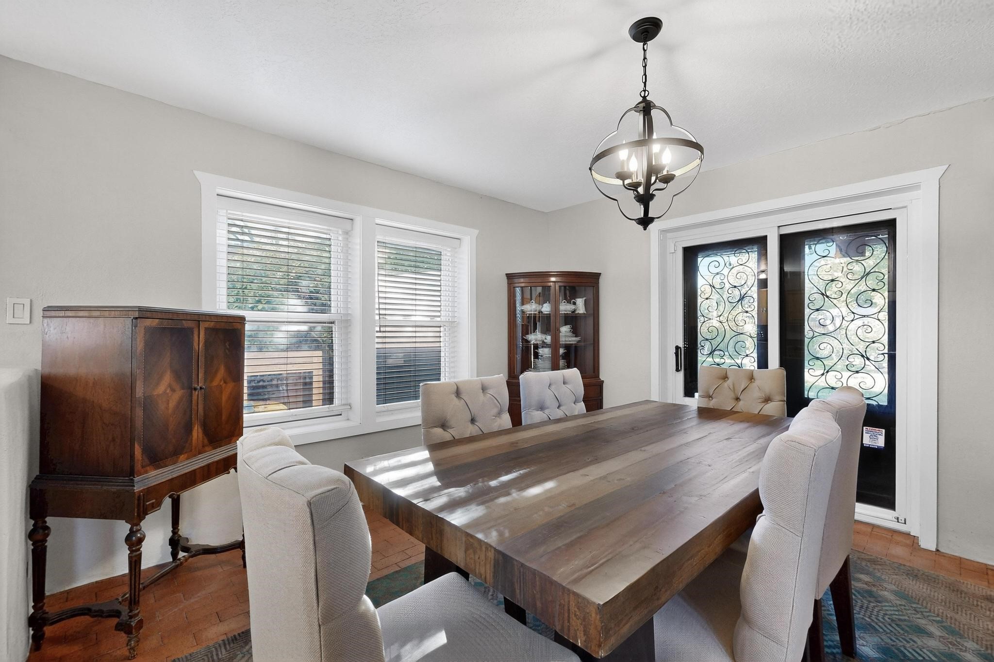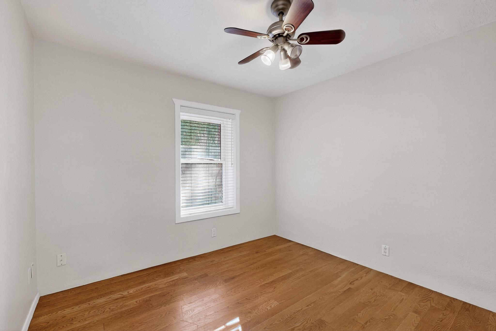 Excellent location with easy access to Old Town, the Bosque Trail, and other Rio Grande/Downtown attractions. No HOA! Charming Southwestern-style adobe & frame home w/ high wood-beam ceilings, clerestory windows, refrigerated air and kiva fireplace. Two bedrooms on the main level plus a large owner's suite with balcony and office/possible 4th bedroom upstairs. Brick floors w/ radiant heat, granite countertops and stainless appliances. Carpet to be replaced after move out, or credit to be used toward other flooring of buyer's choice. Whole house water treatment system. Sunny kitchen opens to dining and patio. Finished, heated/cooled garage. Large fenced -acre yard--minutes to dining, shopping, El Vado, and the Bio Park / Botanical Gardens. Fantastic Short Term Rental possibility!