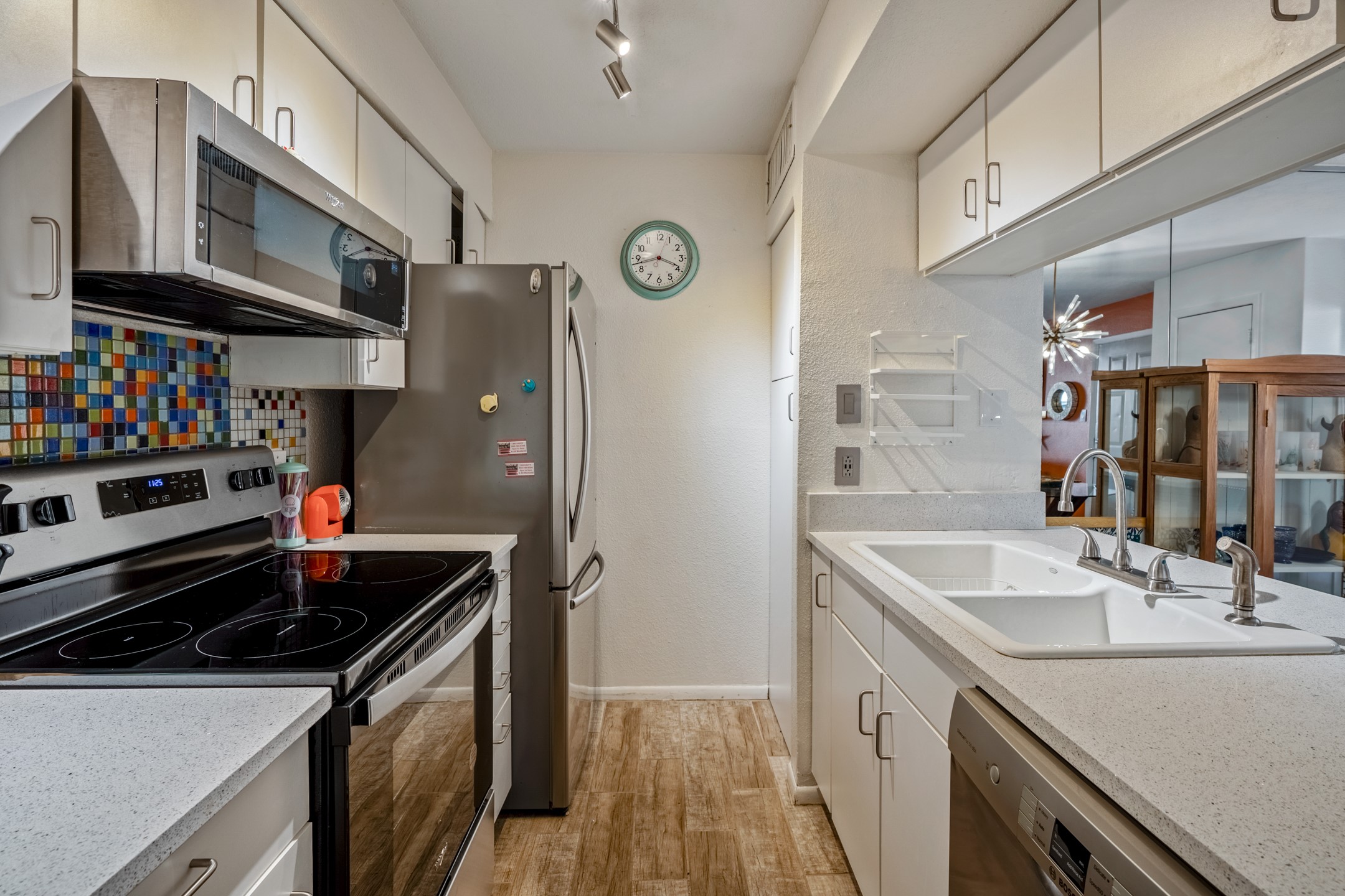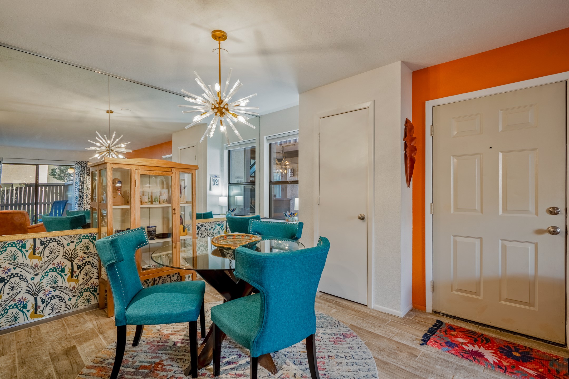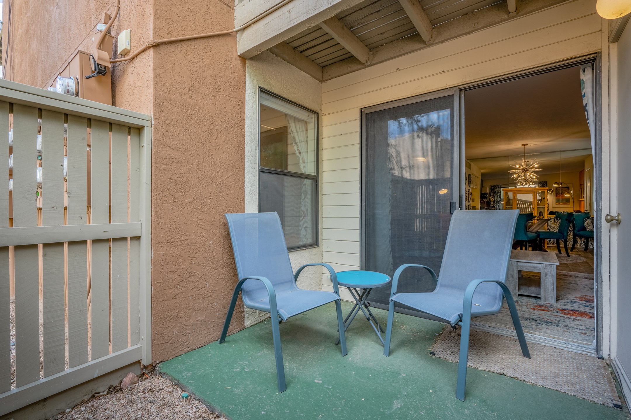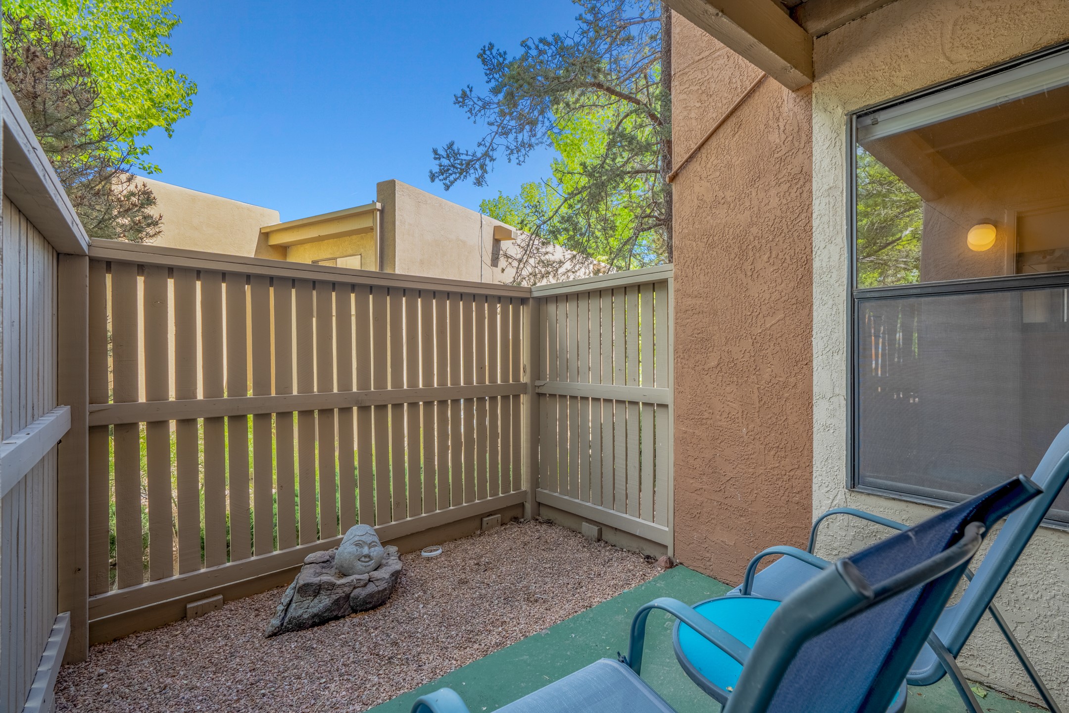 Sleek Ground-Floor 1BD/1BA in The Reserve - Beautifully Upgraded and Furnished! Modern and move-in ready! This stylish ground-floor condo features wood-style flooring, frosted bathroom. All furnishings convey. Enjoy your morning coffee on the walkout patio in this quiet location. The Reserve offers fantastic amenities including an outdoor heated pool (swim yer-round!), fitness room, laundry facilities, and a community center. The Reserve is next to the walk/bike path and minutes to downtown shopping, great Santa Fe restaurants and entertainment. Come See!