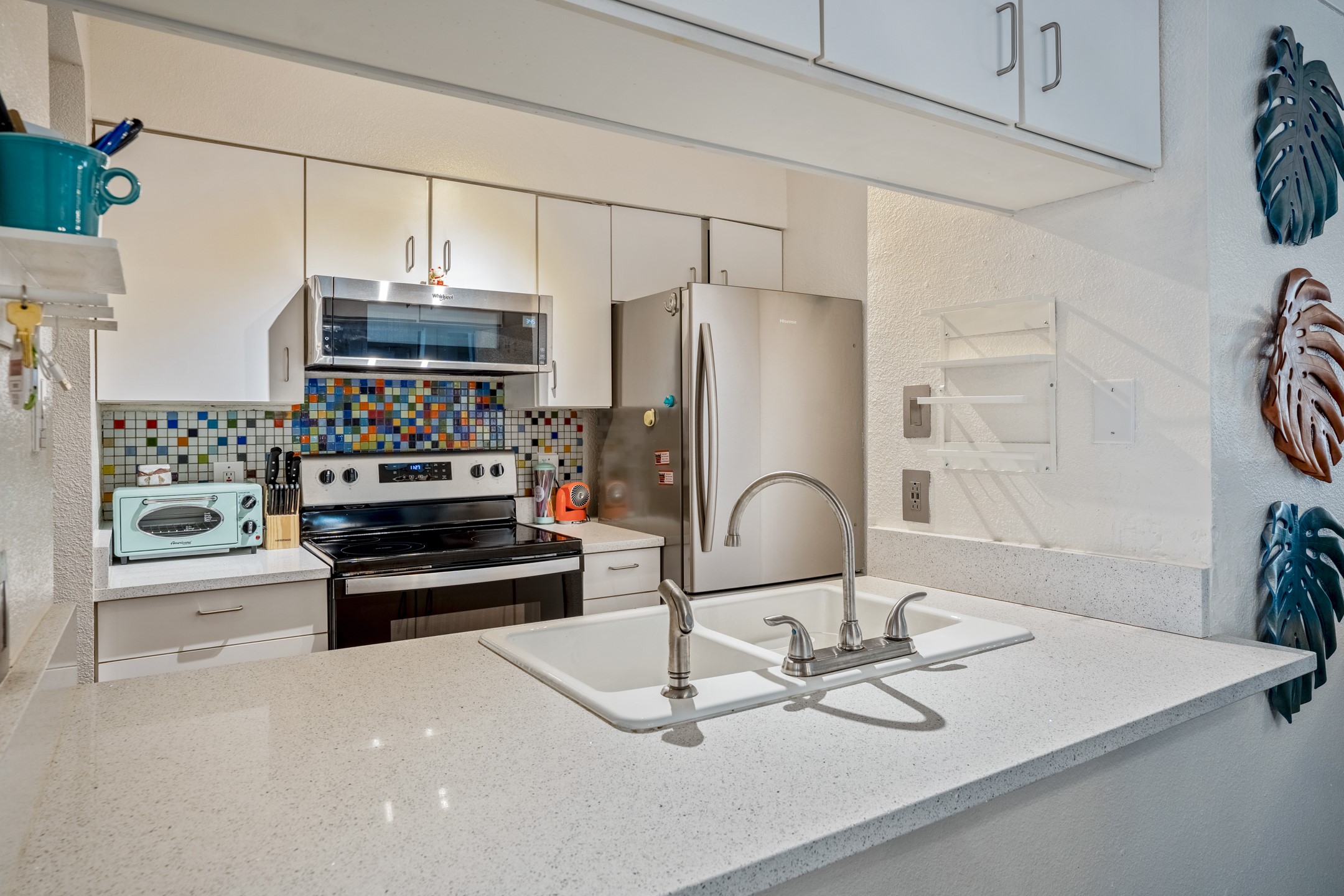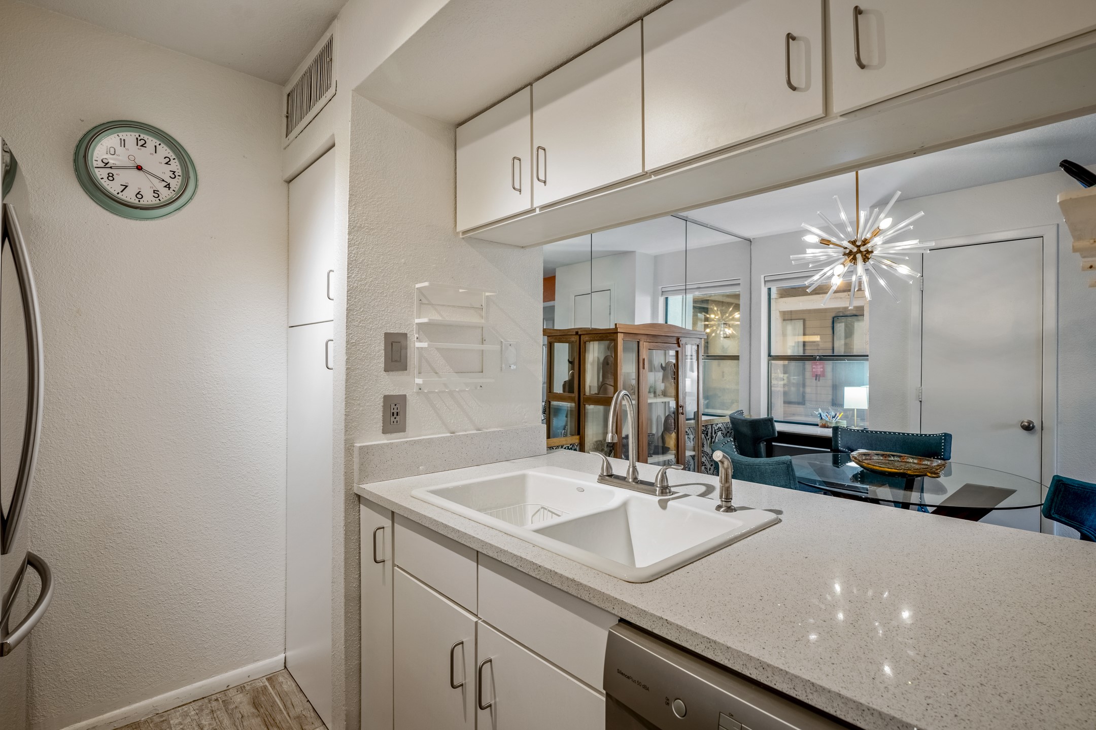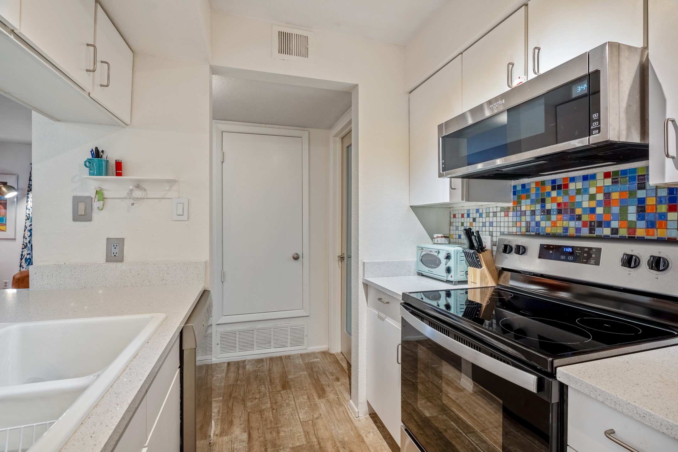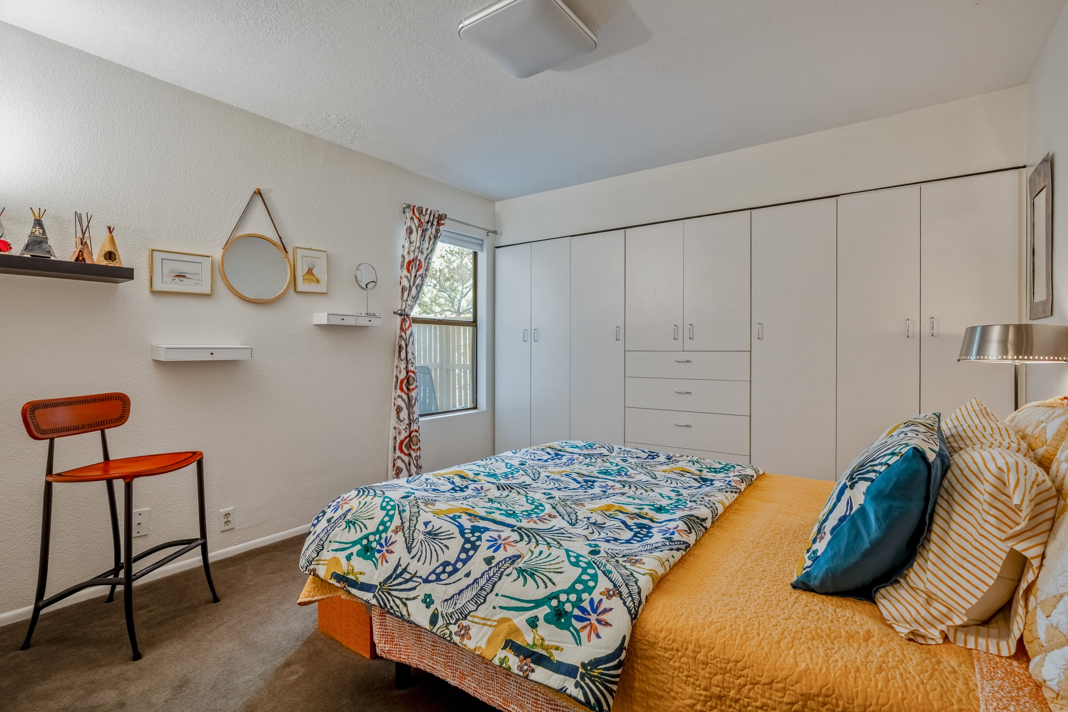 Sleek Ground-Floor 1BD/1BA in The Reserve - Beautifully Upgraded and Furnished! Modern and move-in ready! This stylish ground-floor condo features wood-style flooring, frosted bathroom. All furnishings convey. Enjoy your morning coffee on the walkout patio in this quiet location. The Reserve offers fantastic amenities including an outdoor heated pool (swim yer-round!), fitness room, laundry facilities, and a community center. The Reserve is next to the walk/bike path and minutes to downtown shopping, great Santa Fe restaurants and entertainment. Come See!
