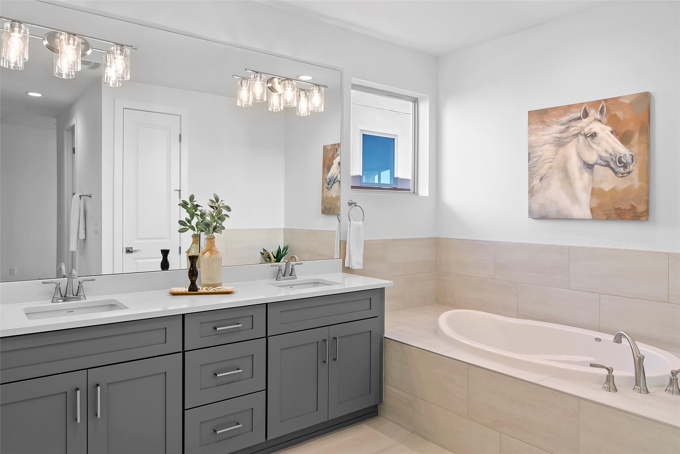 Views! Views! Views! Fully landscaped! This brand new home is gorgeous and ready for immediate move-in. Comes with a 2-10 warranty for purchasers peace of mind. The features and amenities of this home are luxurious. The giant shower in the primary bathroom is so cool along with the dual walk in closets makes this space unique. The ample covered patio space and beautiful views out the back with a fully landscaped backyard are so peaceful and inviting. The open concept living, dining and kitchen fill up with natural light from the large sliding glass door and windows. The bedroom sizes in this particular floorplan are grand! Come check this one out, it will be worth the look. The feeling you get from walking into this brand new home is truly special.
