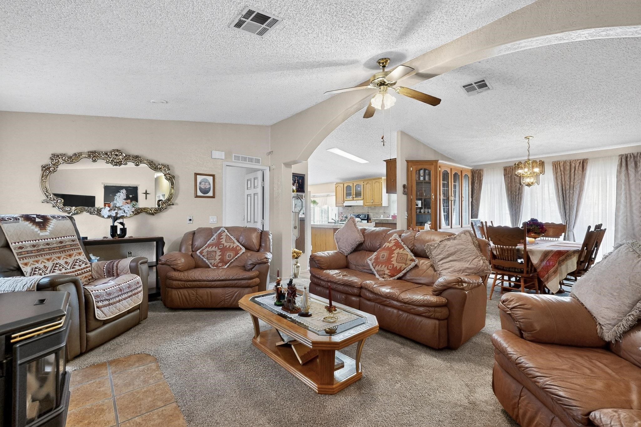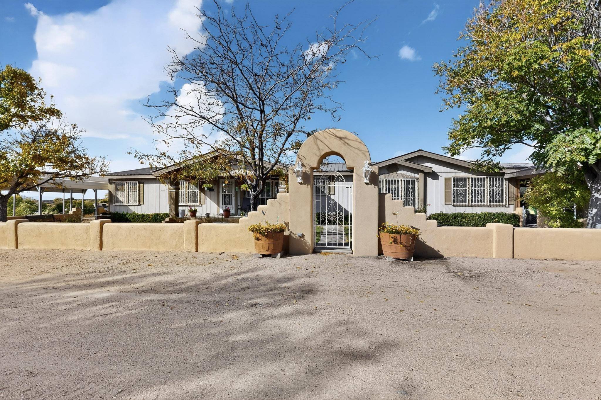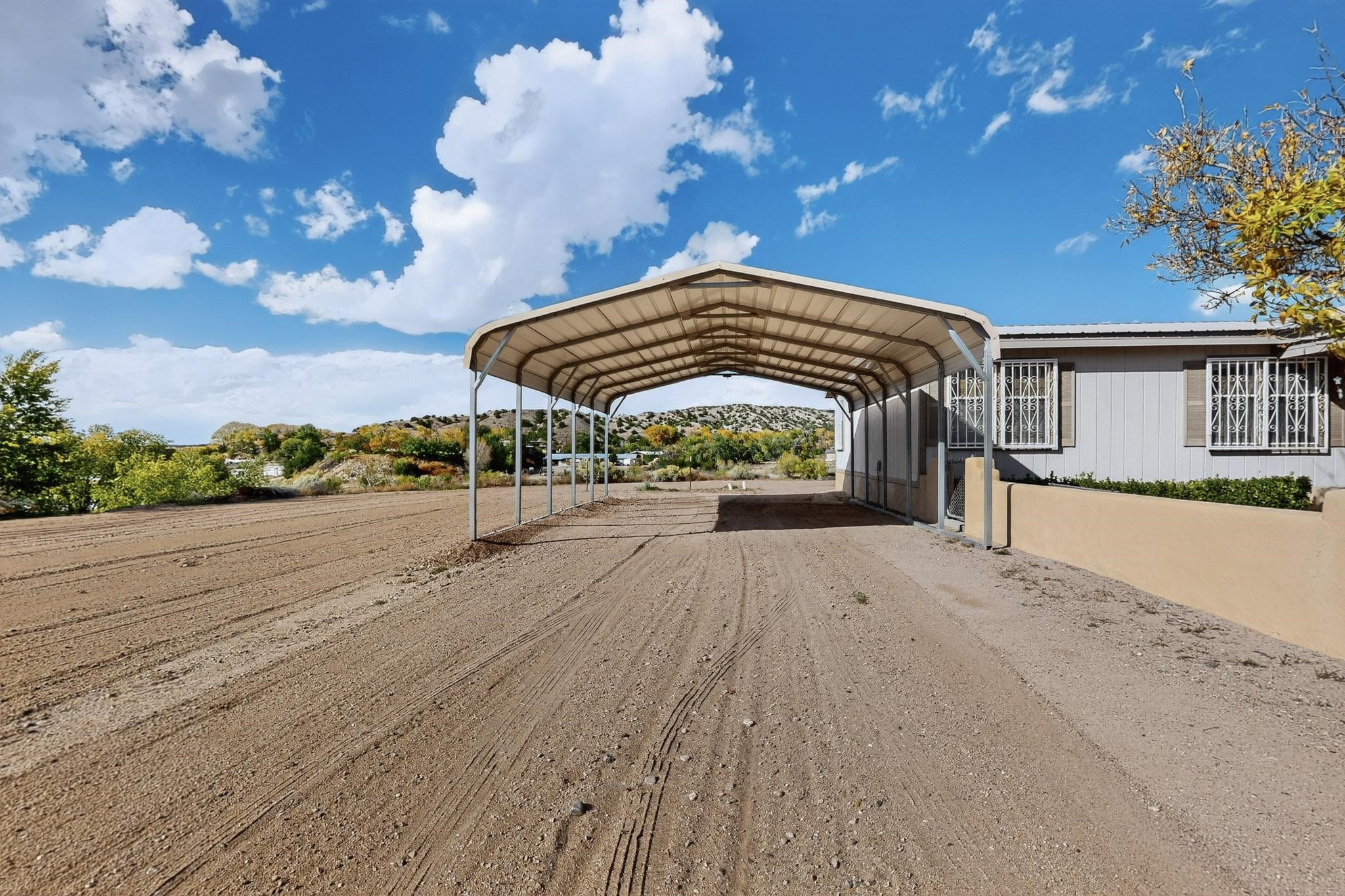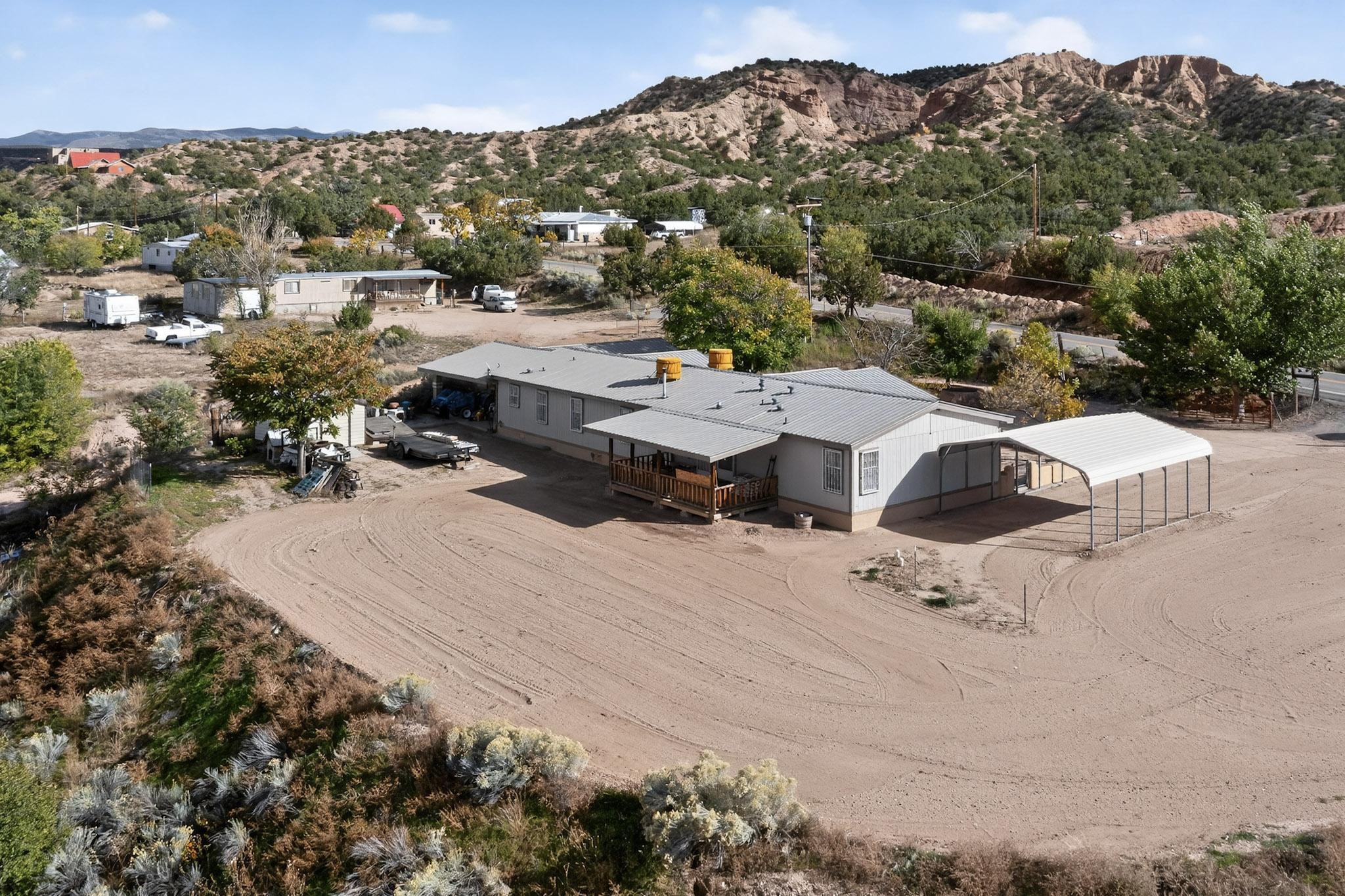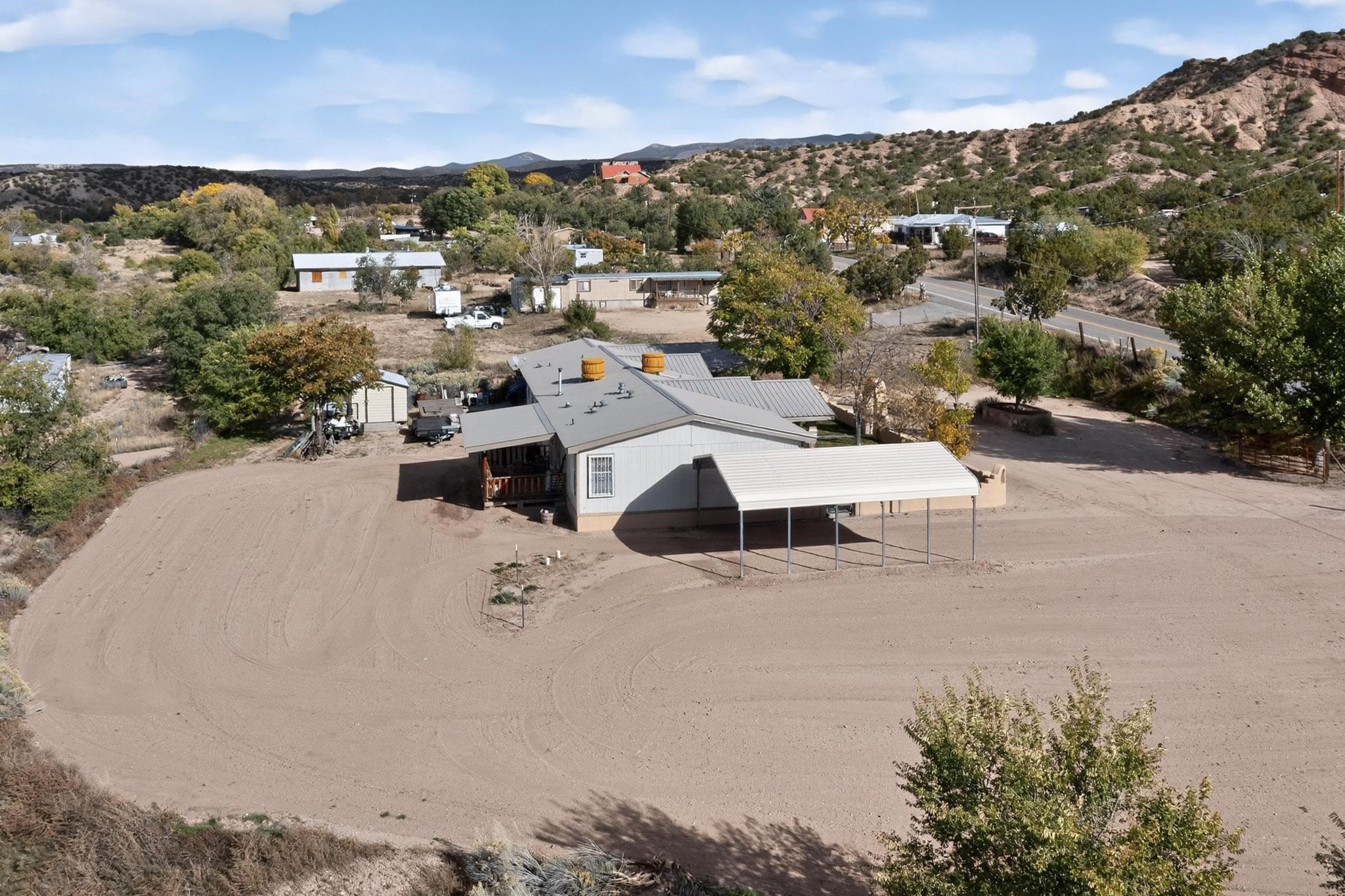 Welcome to this beautiful and cozy 4-bedroom, 2.5-bath 1995 Champion 28x80 home on a permanent foundation with a deactivated title, making it bank-financeable. With 2,026 sq. ft. of living space on 2.49 peaceful acres, this property offers the perfect blend of comfort, functionality, and northern New Mexico charm.Inside, you'll find a spacious and inviting layout featuring remodeled bathrooms, a pellet stove, natural gas central heating, and two evaporative coolers for year-round comfort. The home is highly energy efficient with a metal Pro-panel roof, residential-style overhang, upgraded high-rated insulation, and an added 1-inch foam insulation wrap around the entire exterior.Outside, enjoy plenty of storage and parking with a 2-car metal detached carport, 4-car attached carport with attic storage, and a 10x20 Morgan shed. The property includes a private well (with an option to connect to community water), a private septic system, and natural gas service.Nestled in the heart of historic Chimayo--known for its scenic views, rich culture, and traditional New Mexican heritage--this home offers a peaceful rural lifestyle just a short drive to Espaola, Santa Fe, and Los Alamos. There's plenty of room for vehicles, hobbies, and outdoor living. Furniture is available for sale separately.