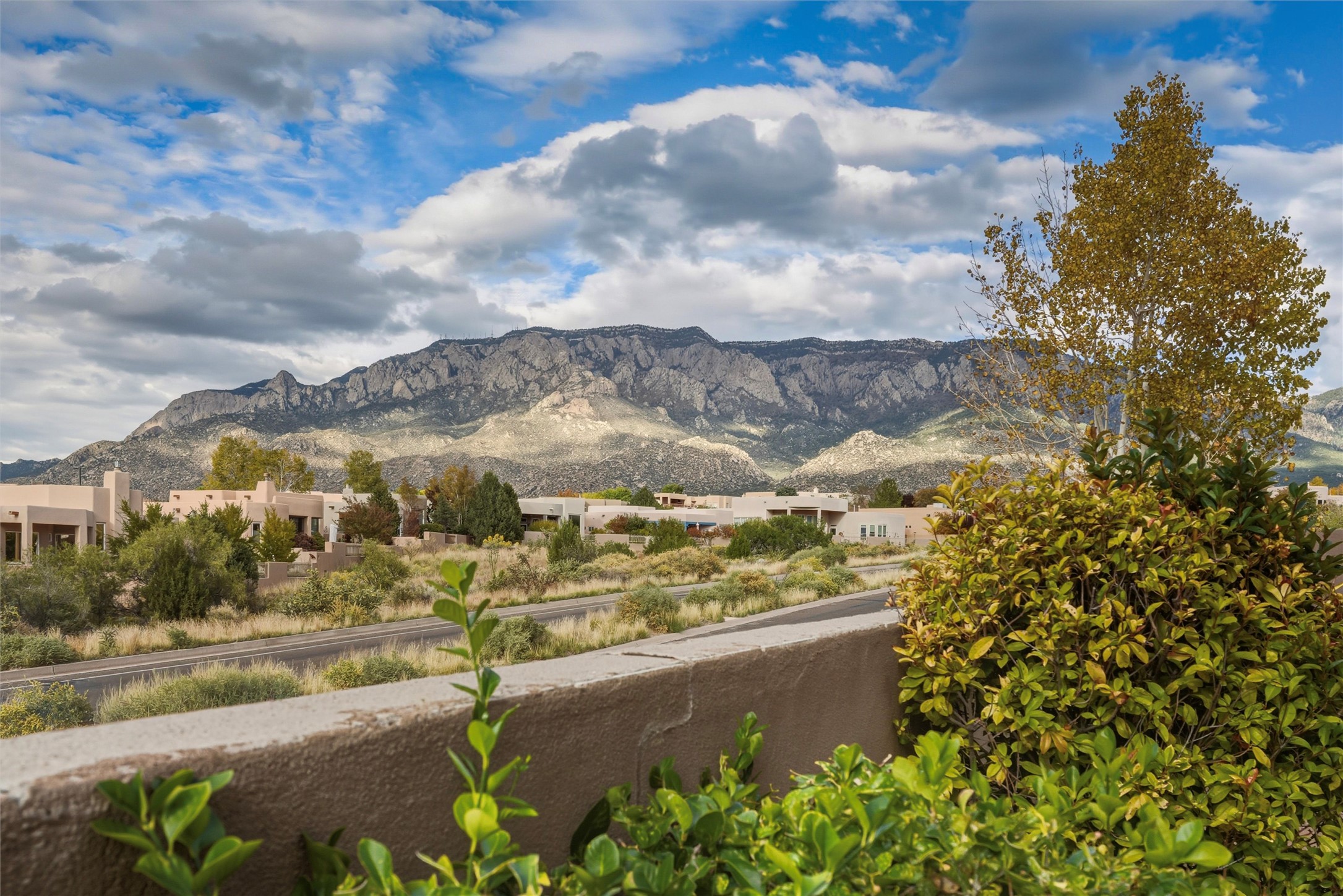 Discover a rare custom masterpiece at The Legends, where luxury and tranquility meet. This artfully designed home offers seamless indoor-outdoor living, highlighted by a chef's kitchen w/ all SS applainces & Sub-Zero wine storage, elegant great room for entertaining, and a spa-inspired primary suite with fireplace, steam shower & private patio. Enjoy alfresco evenings by the waterfall and outdoor fireplace. Private 2nd primary bedroom, potential basement wine cellar & gated privacy on a serene cul-de-sac make this residence an ultimate retreat for refined living near the Sandia Mountains. The owned solar system, full finished basement and privacy in this quiet High Desert community welcomes you home to serenity and peace. One owner has maintained this custom built and updated property.