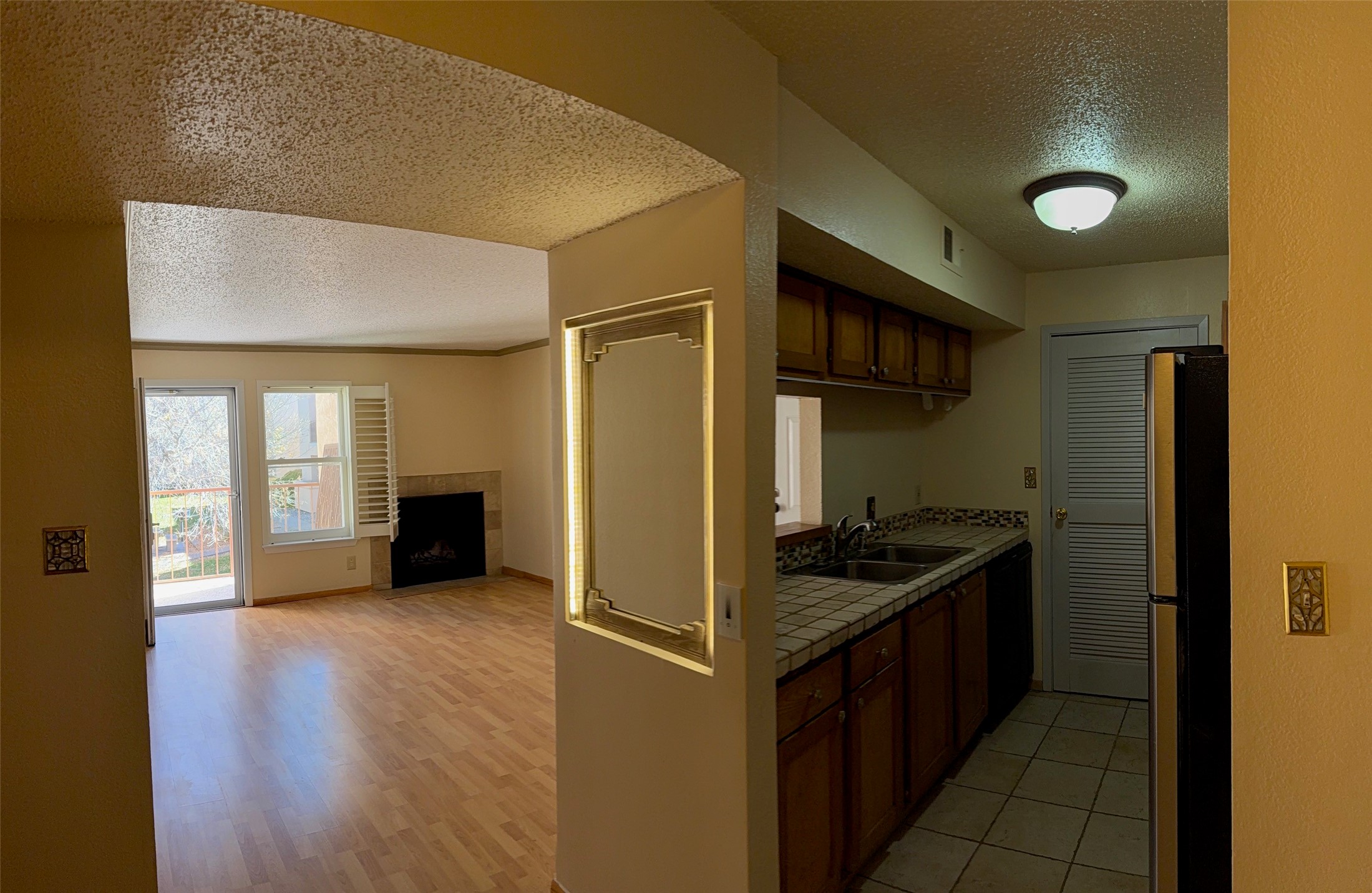 Discover comfort and convenience in this beautifully appointed 2-bedroom, 2-bath condo located on the second floor of the desirable Zia Vista community. The living area features a charming wood-burning fireplace and opens to a private balcony--perfect for relaxing. The primary suite offers a peaceful retreat with an en-suite bath and custom California Closets. The second bedroom also includes its own walk-in closet, providing ample storage. A dedicated utility room with washer and dryer adds everyday convenience. Residents of Zia Vista enjoy a full array of amenities, including a heated swimming pool, clubhouse, tennis court, on-site laundry facilities, and well-maintained outdoor common areas. Thoughtful touches like window shutters and tiled countertops in the kitchen and baths add character and style. Ideally located near shopping and just minutes from downtown Santa Fe, this condo combines lifestyle and location in one exceptional package.