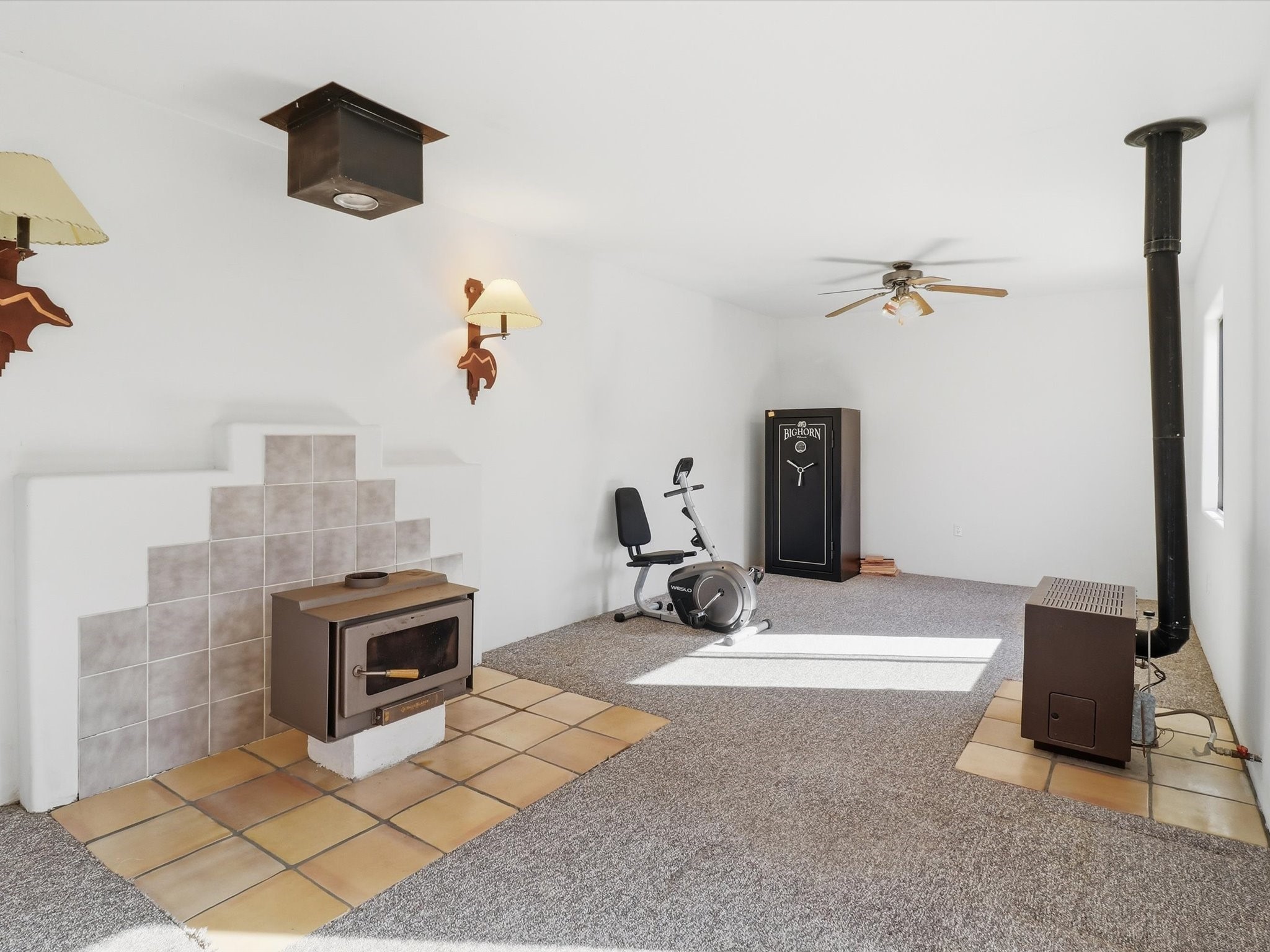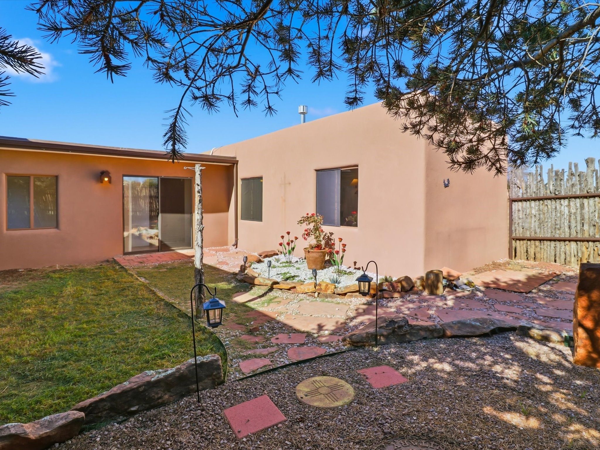 A serene Santa Fe retreat in the coveted Eldorado community. This beautifully designed 3-bed, 2-bath residence sits on 1.64 acres with sweeping mountain views and the peaceful rhythm of desert living. Light-filled interiors feature high ceilings, tile floors, and a Kiva fireplace that adds warmth and timeless Santa Fe charm. The kitchen and living spaces open to a private patio perfect for entertaining or quiet starlit evenings. Experience tranquil country living just minutes from Santa Fe's Plaza, galleries, and fine dining. The spacious lot offers room to garden, relax, or expand. A perfect blend of comfort, elegance, and Southwest beauty, schedule your private tour today and see it for yourself.
