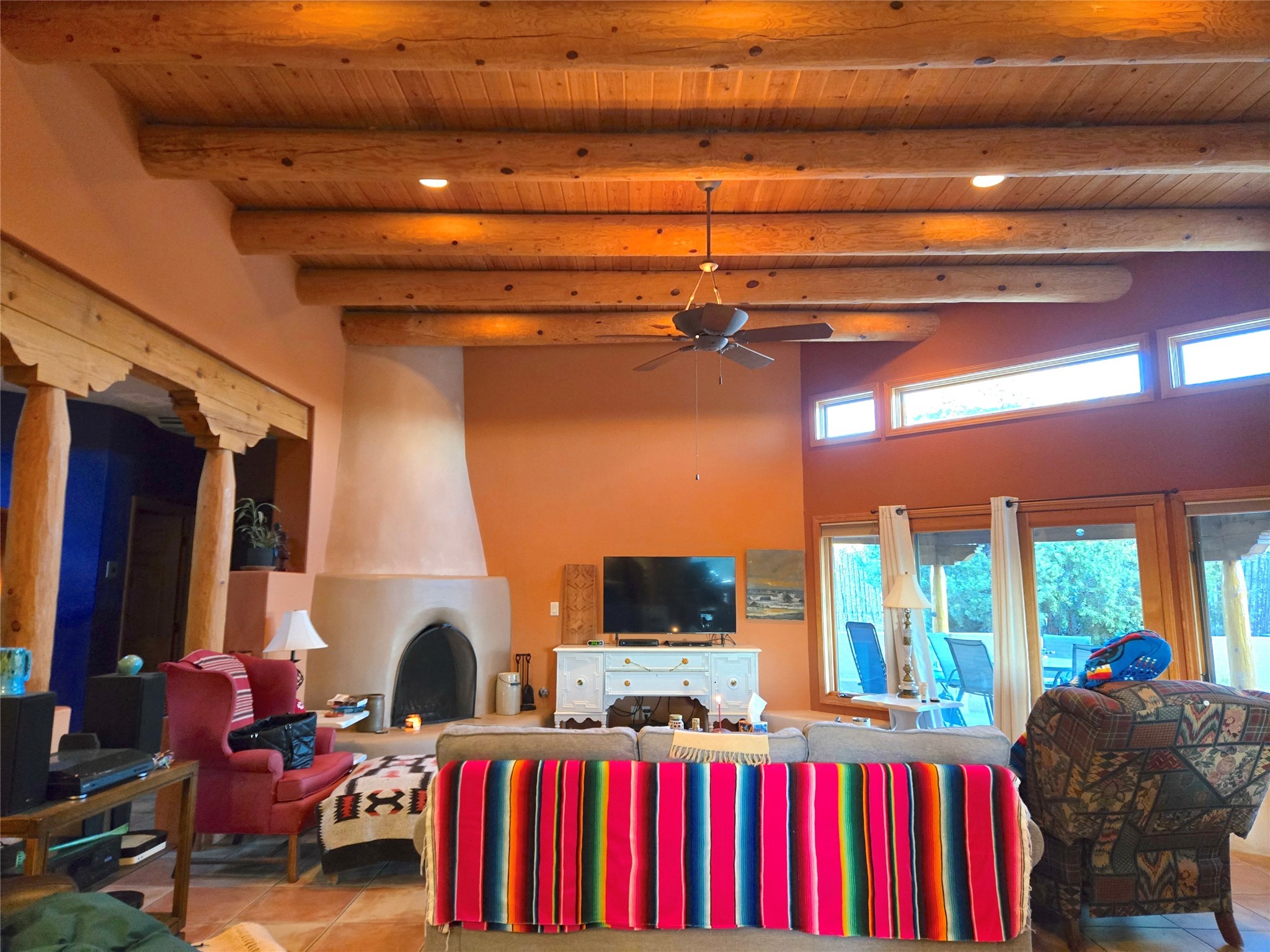 Built in 2001, this well-maintained 3-bedroom, 2-bath home combines classic Southwest design with modern upgrades. Features include hand-carved vigas, tile floors, built-in bookshelves, a kiva fireplace, large kitchen with walk-in pantry, and a spacious laundry/mudroom. The primary suite offers a walk-in shower with dual showerheads and excellent closet space.Recent improvements include a new garage door (2024), new electric circuit breaker box with solar panels (2023), Sierra Pacific windows and new water heater (2025), washer (2024), dryer (2022), dishwasher (2024), and a new coyote fence (2023). Outdoor features include a covered patio, drip irrigation, and an attached garage.The property borders the National Monument with direct access to scenic hiking trails. Enjoy fishing, boating, and camping at nearby Cochiti Lake, just one mile away. The enchanting city of Santa Fe is just a 25-minute drive, and the major metropolitan area of Albuquerque is about 45 minutes away. Enjoy country living without sacrificing nearby services, shopping, and conveniences.Beautiful craftsmanship, solid updates, and a prime location make this home a perfect New Mexico retreat.