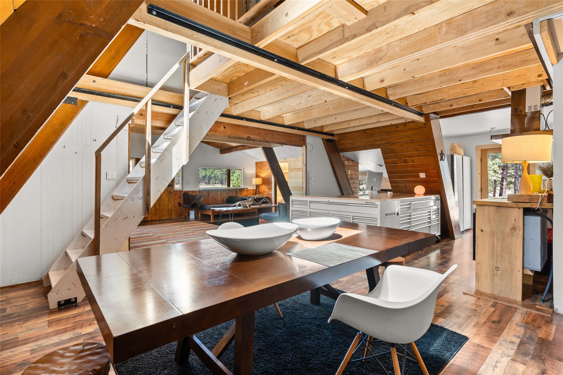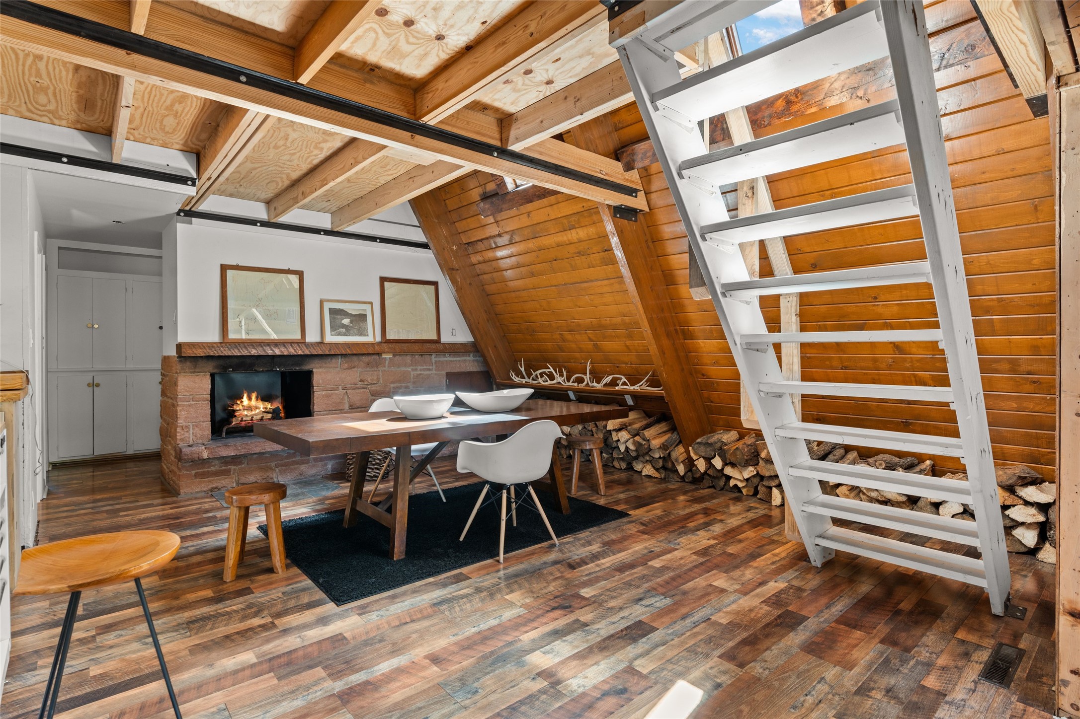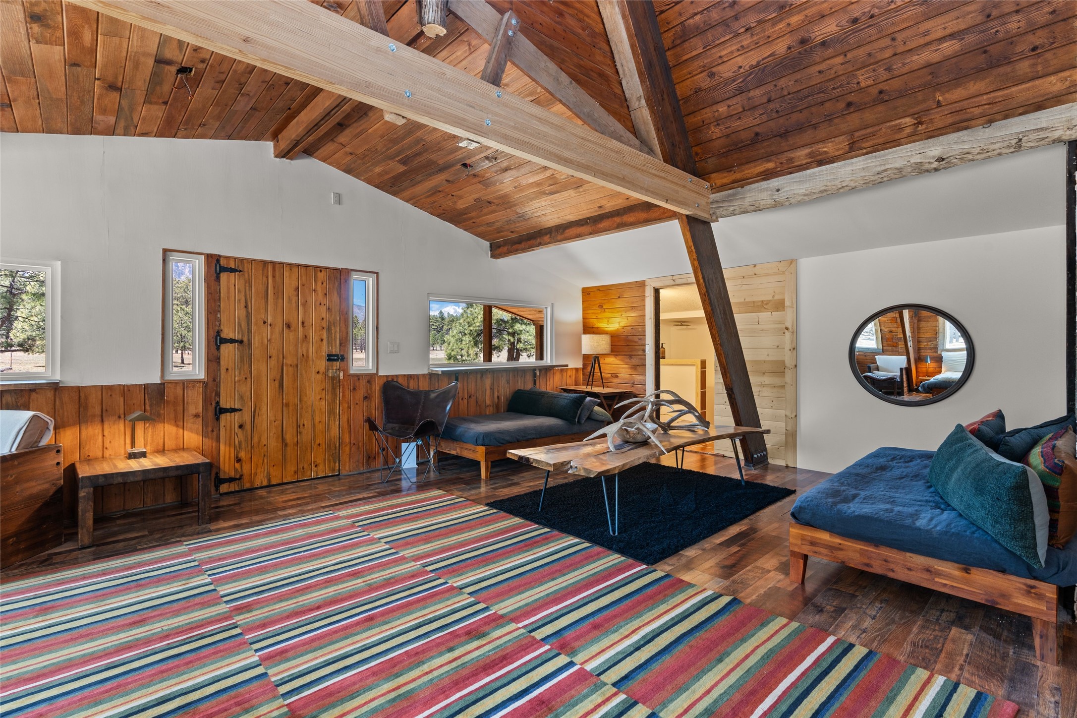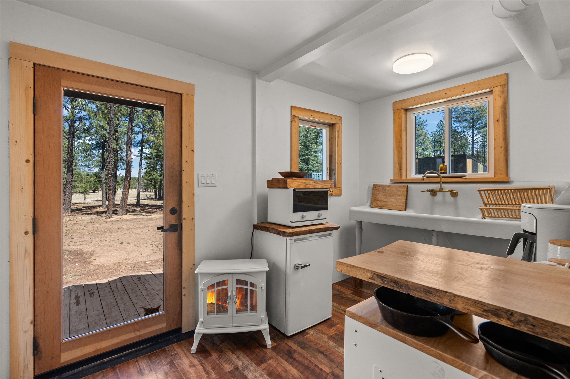 Secluded Mountain Retreat with Modern Upgrades.Behind a gated entrance, this 11.86-acre mountain retreat near Las Vegas, NM, and Storrie Lake offers privacy, sustainability, and stunning views of Hermits Peak. Originally a faminly hunting compound, the beautifully remodeled A-fram home features 3 bedrooms, 1.5 baths, an open-concept living area with a pellet stove, and a kitchen with movable workbench-style counters and an induction cooktop.Upgrades include lifetime warranty windows, a battery-ready 19-panel solar system, new laminte flooring, and enhanced insulation. The fully fenced property is ideal for homesteading or horses, with a hay barn, electric solar horse paddock, and trailer turnarounds. Enjoy two ponds, two wells, a 1/2 acre garden, and compost bins. Outdoor spaces shine with a wrap-around deck, hot shower, and cold plunge pool.Additional features: 500-gallon propane tank, RV hookups, three freezers, two refrigerators, and major fire mitigation. Don't miss this rare blend of mountain seclusion and modern comfort!