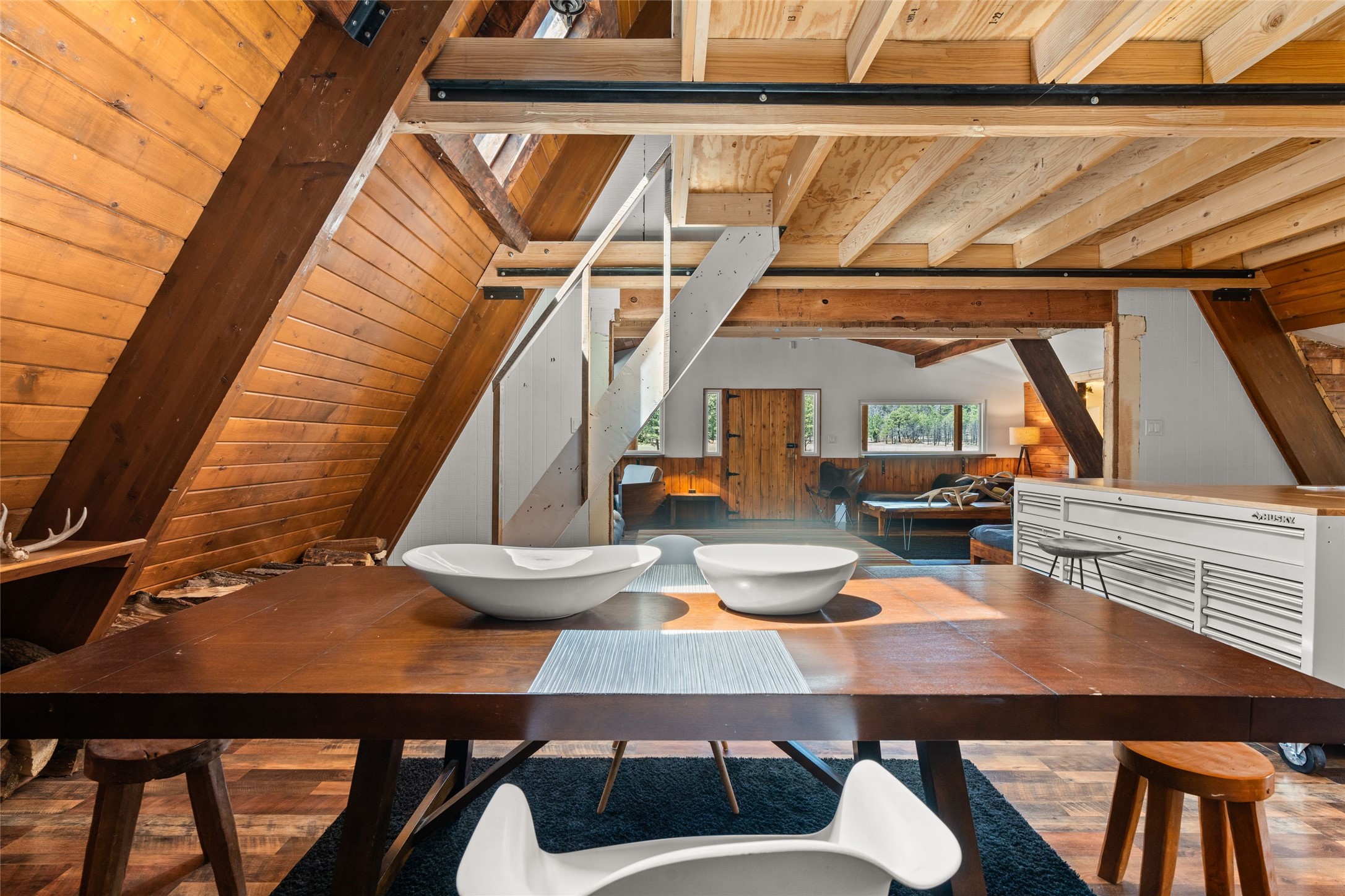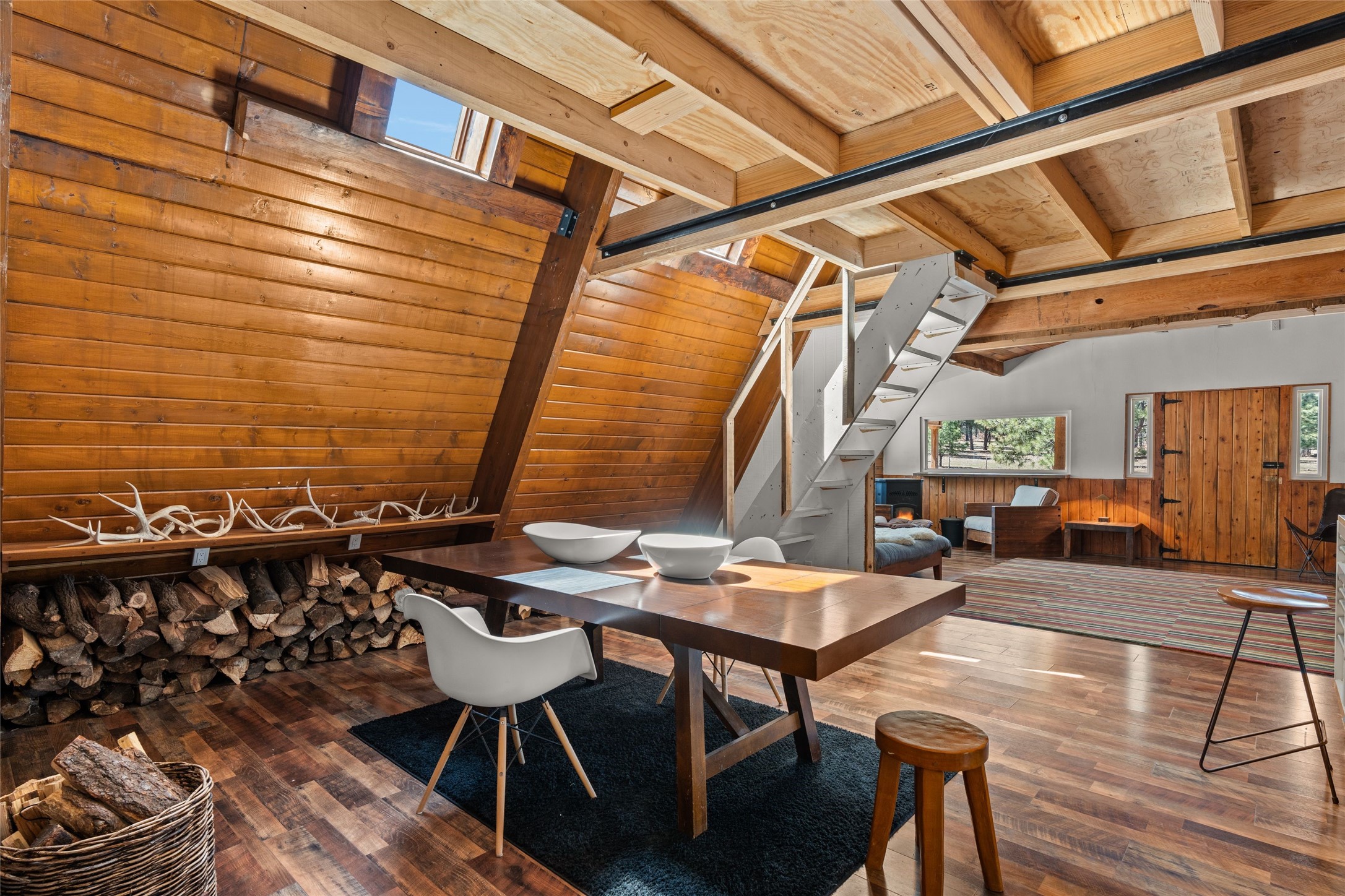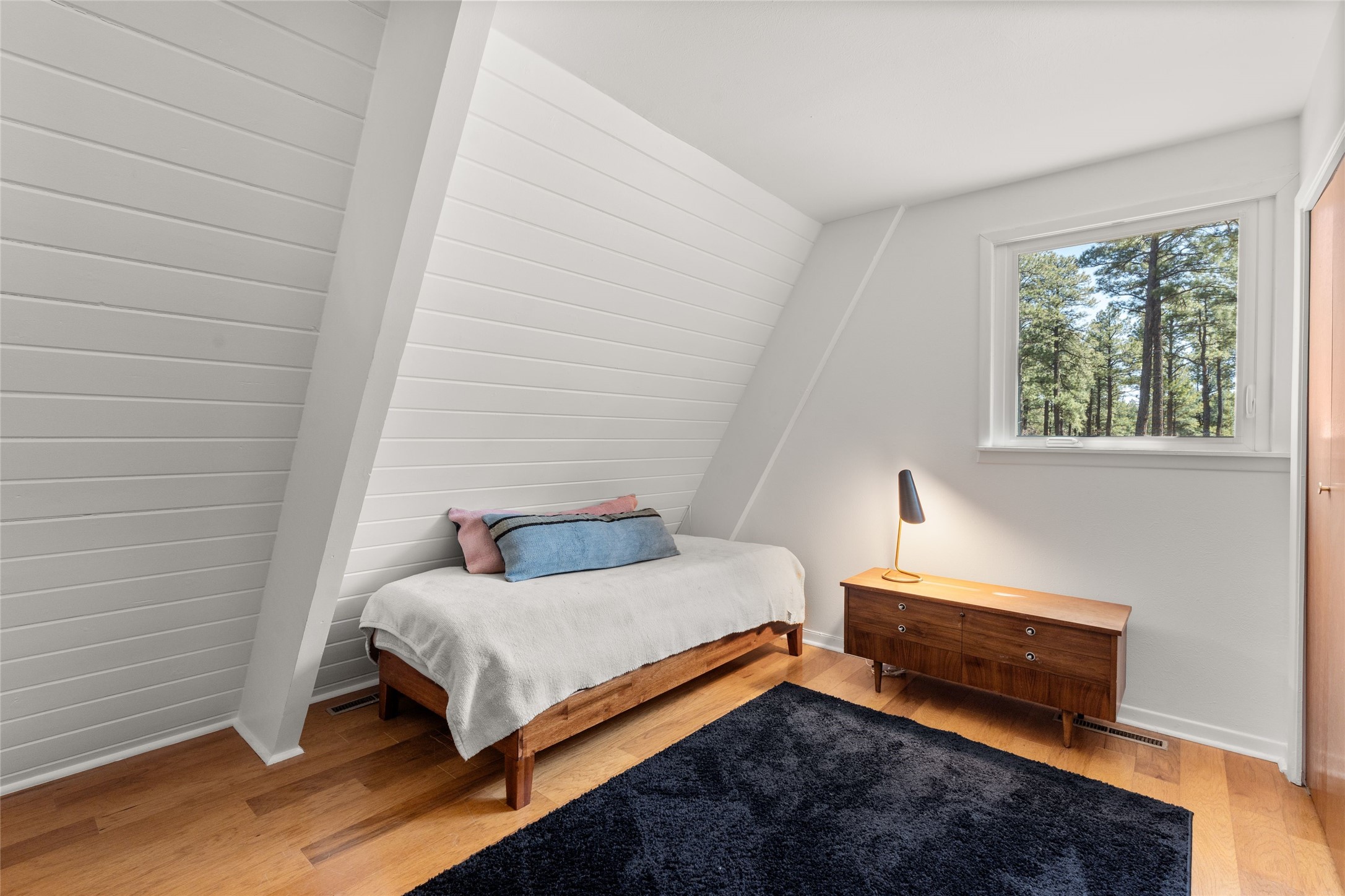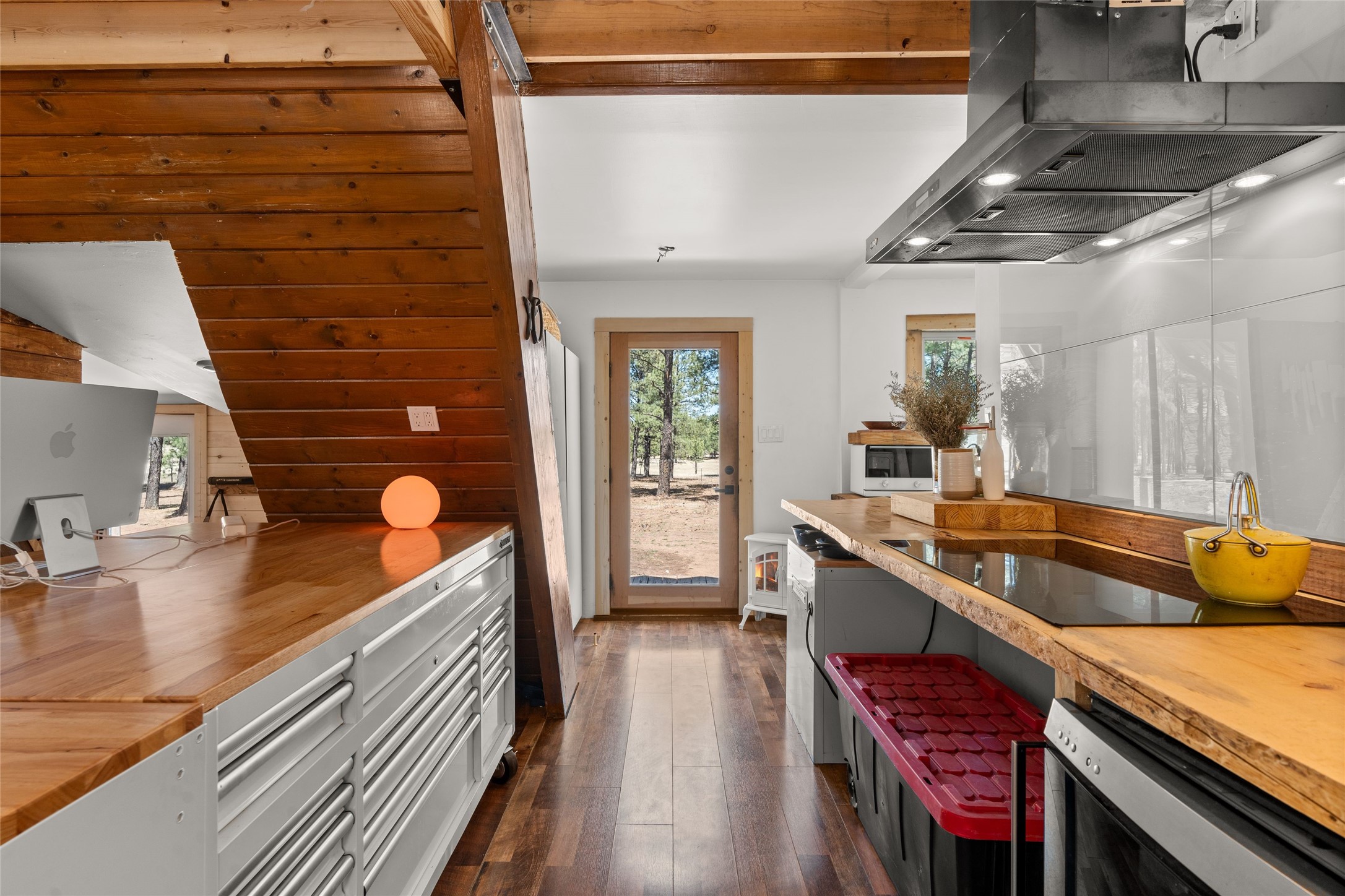 Secluded Mountain Retreat with Modern Upgrades.Behind a gated entrance, this 11.86-acre mountain retreat near Las Vegas, NM, and Storrie Lake offers privacy, sustainability, and stunning views of Hermits Peak. Originally a faminly hunting compound, the beautifully remodeled A-fram home features 3 bedrooms, 1.5 baths, an open-concept living area with a pellet stove, and a kitchen with movable workbench-style counters and an induction cooktop.Upgrades include lifetime warranty windows, a battery-ready 19-panel solar system, new laminte flooring, and enhanced insulation. The fully fenced property is ideal for homesteading or horses, with a hay barn, electric solar horse paddock, and trailer turnarounds. Enjoy two ponds, two wells, a 1/2 acre garden, and compost bins. Outdoor spaces shine with a wrap-around deck, hot shower, and cold plunge pool.Additional features: 500-gallon propane tank, RV hookups, three freezers, two refrigerators, and major fire mitigation. Don't miss this rare blend of mountain seclusion and modern comfort!