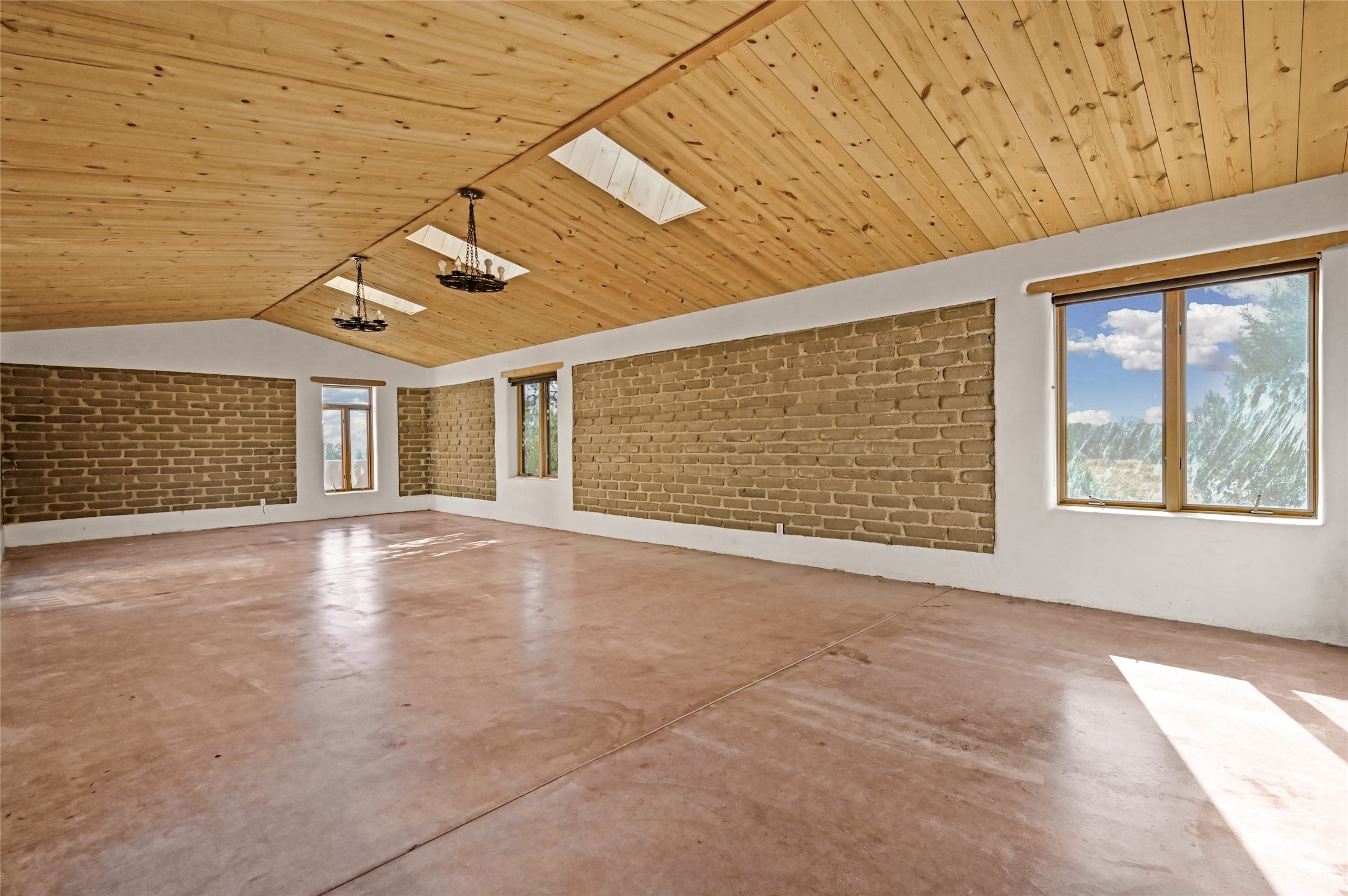 Welcome to this remarkable property that exudes the rustic charm of the old west and features the adobe walls that distinguishes true Santa Fe from the rest! Settled on just under a 10 acre naturally landscaped parcel of land with dreamy mountain views and populated with Pinon and Juniper Trees throughout, this property is the one you've been waiting for. The one bedroom one bath private main home boasts an open concept floor plan and 1,500+/- heated square feet. In addition to the main home there are three separate studios for your use and imagination! A 1,000 +/- sqft adobe with one bath would be great for your guests. The 985+/- sqft "music studio" with one bath attracts great natural light and contains a loft up above the main level. The cute 300 +/- detached studio is just off of the walled courtyard and next to the outdoor hot tub. Another great feature and added benefit to this property is the designated RV parking and hookup area! Come and own your own unique perspective of the gorgeous sunrise and sunset views that Santa Fe is known for from this one of a kind property. The property is fully-fenced and is about a 20 minute drive from the Santa Fe city limits.