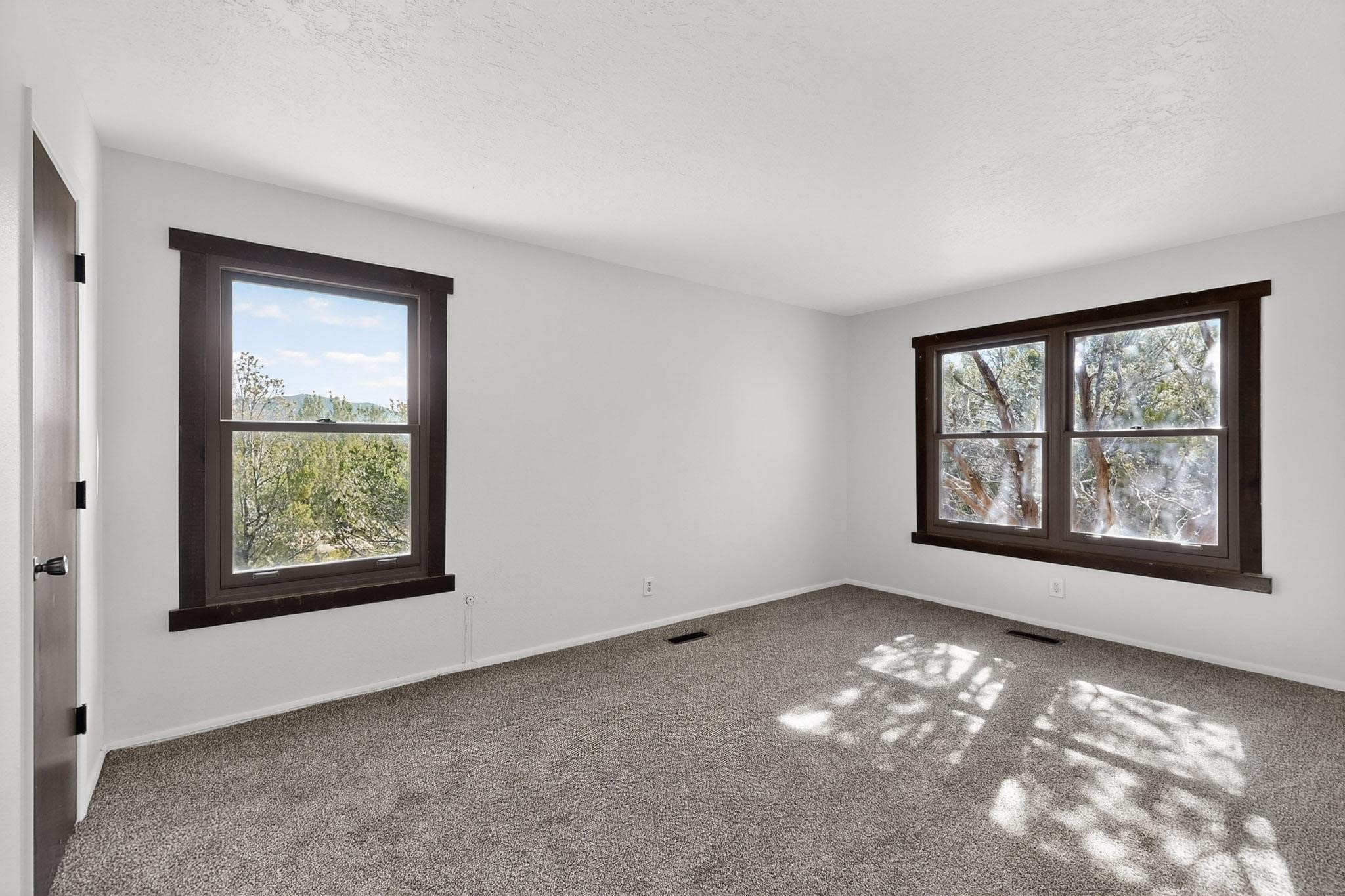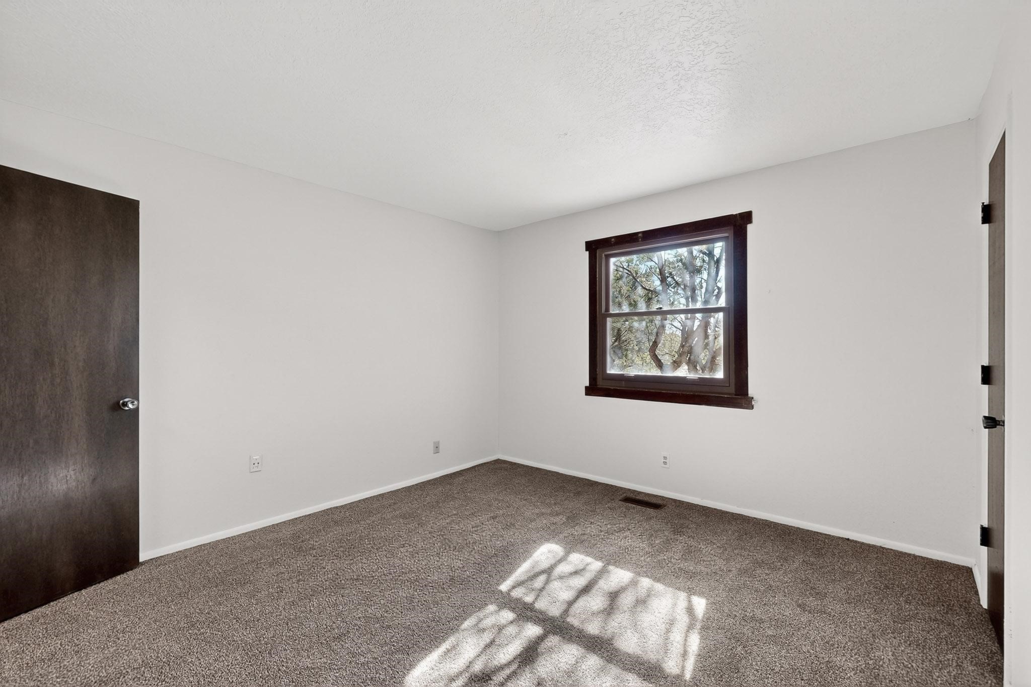 You are just going to love this beautiful free standing single level three bedroom Northside condo just a quick five minute drive to the historic Santa Fe Plaza! Beamed ceilings, wood burning kiva fireplace, two full baths, two private courtyards, a single car garage, refrigerated air conditioning, brand new carpet and mountain views!