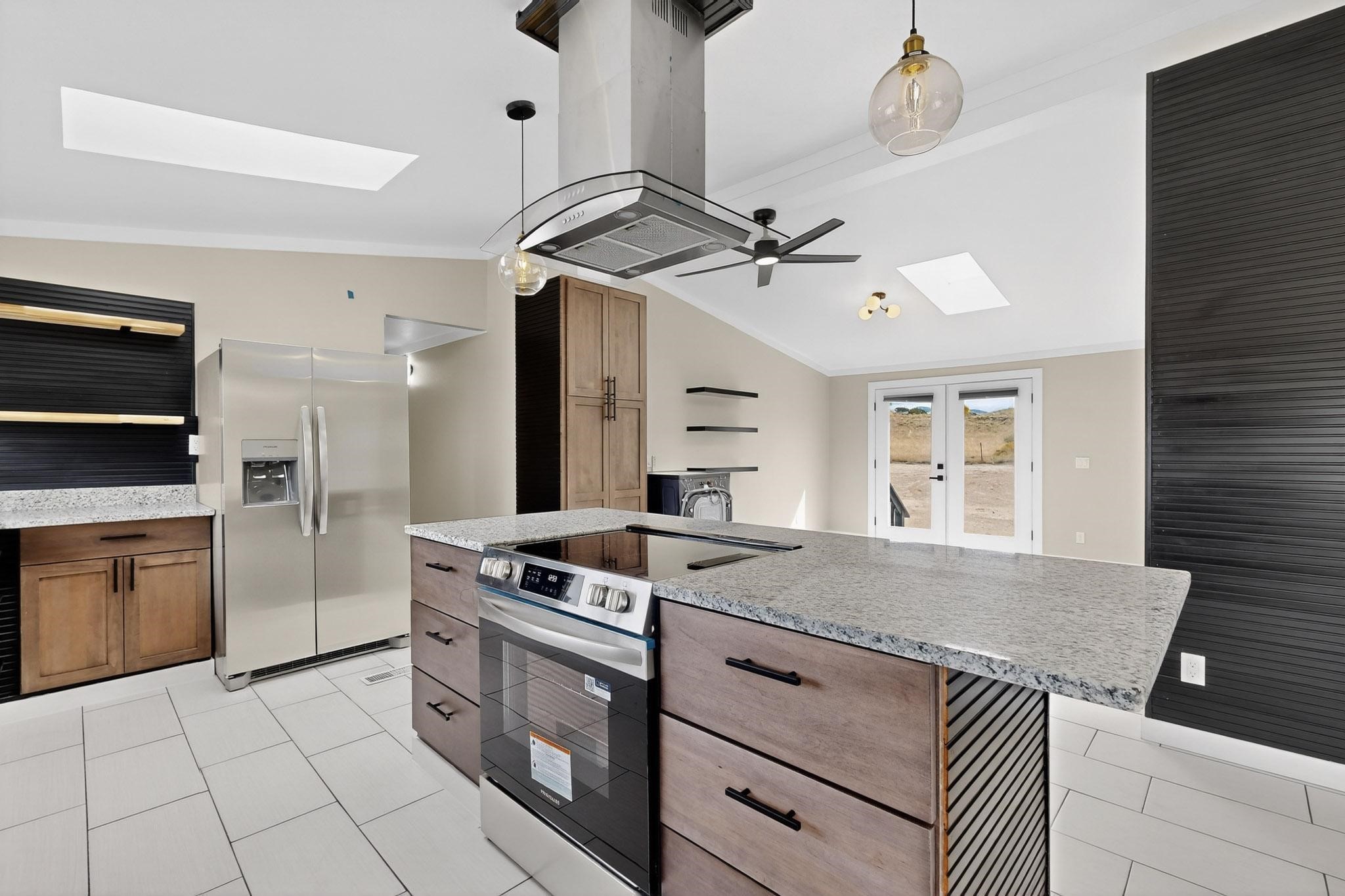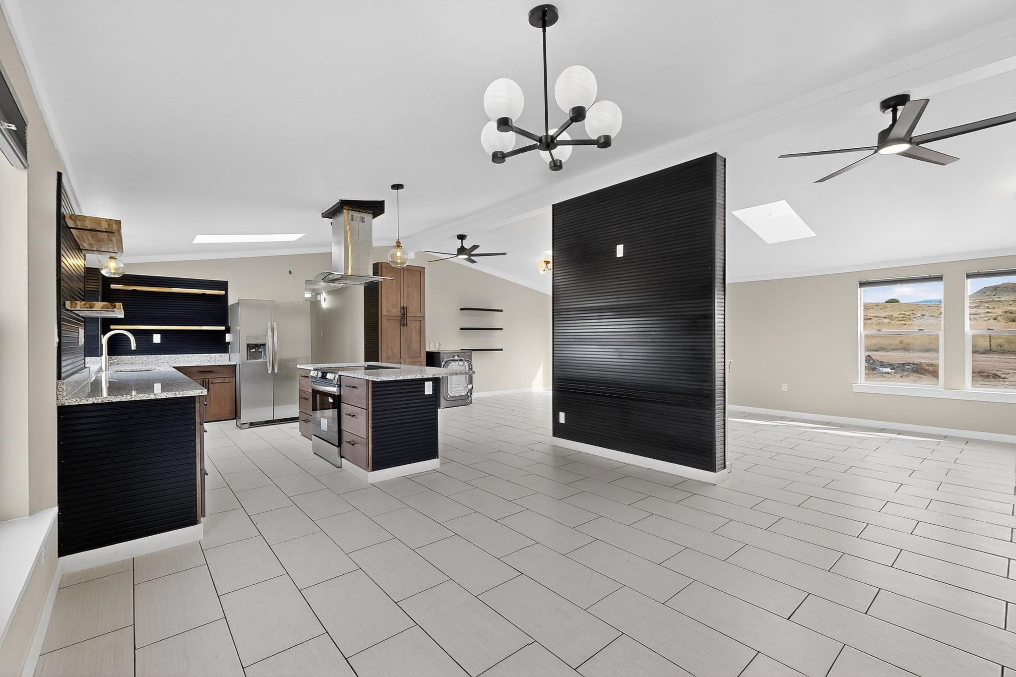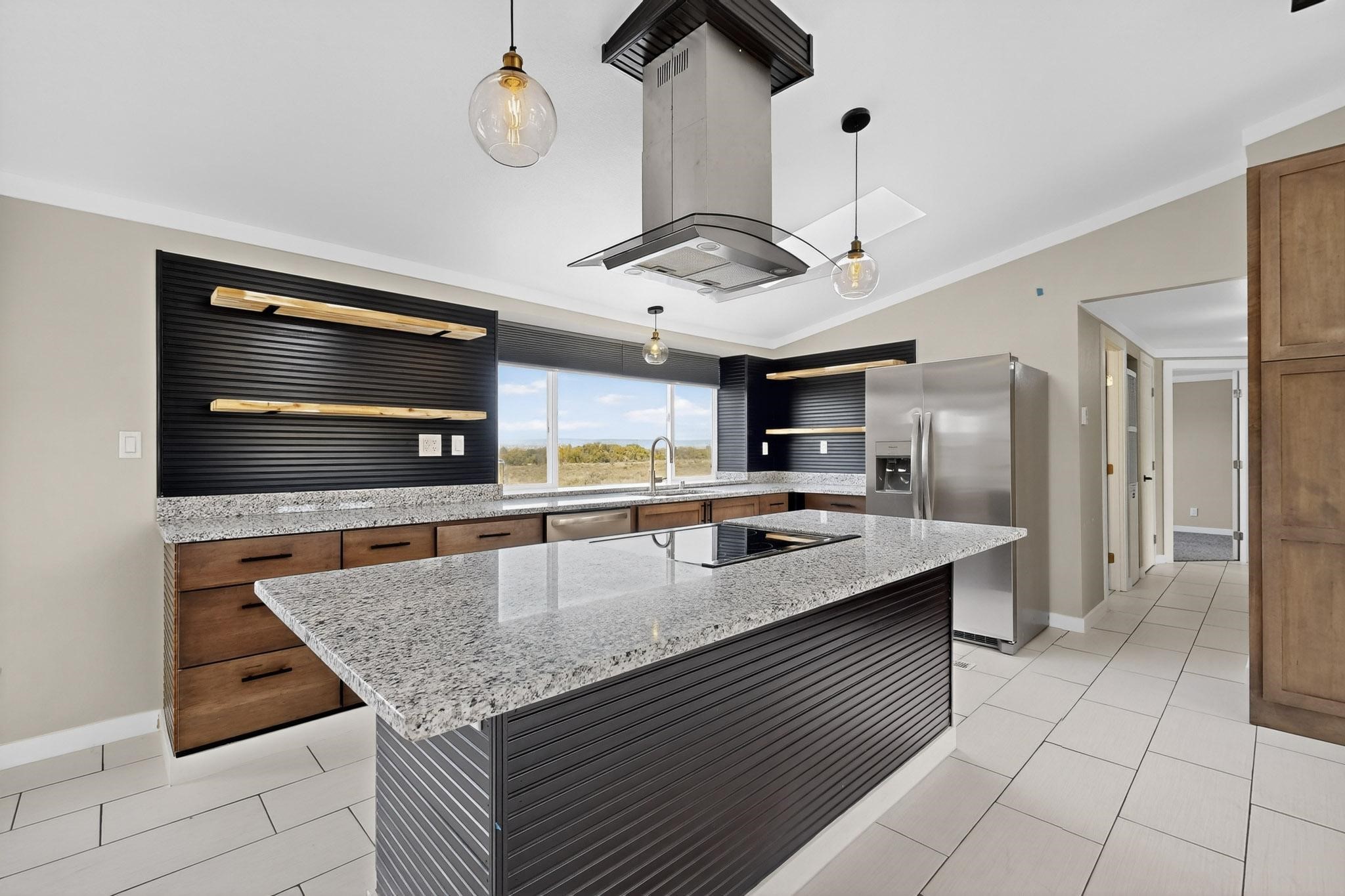 This beautifully remodeled 3-bedroom, 2 bath home offers modern comfort in a peaceful rural setting with spectacular views of the Jemez Mnts. Revel in the natural light that comes in through the 3 skylights. Enjoy a bonus room perfect for a home office or hobby space. Recent upgrades include new windows, new blinds, new roof, new tile flooring with plush carpet in the bedrooms, new lighting, and a new furnace and refrigerated air unit and new hot water heater. The kitchen has been thoughtfully redesigned with custom cabinetry, granite countertops and a new stainless appliance package.Home sits on a permanent foundation, with a new septic system and well improvements completed for peace of mind. Home also has an over sized 2-car garage. Property borders BLM land, providing privacy, open space and unmatched beauty right outside your door. Move-in ready and beautifully finished!!