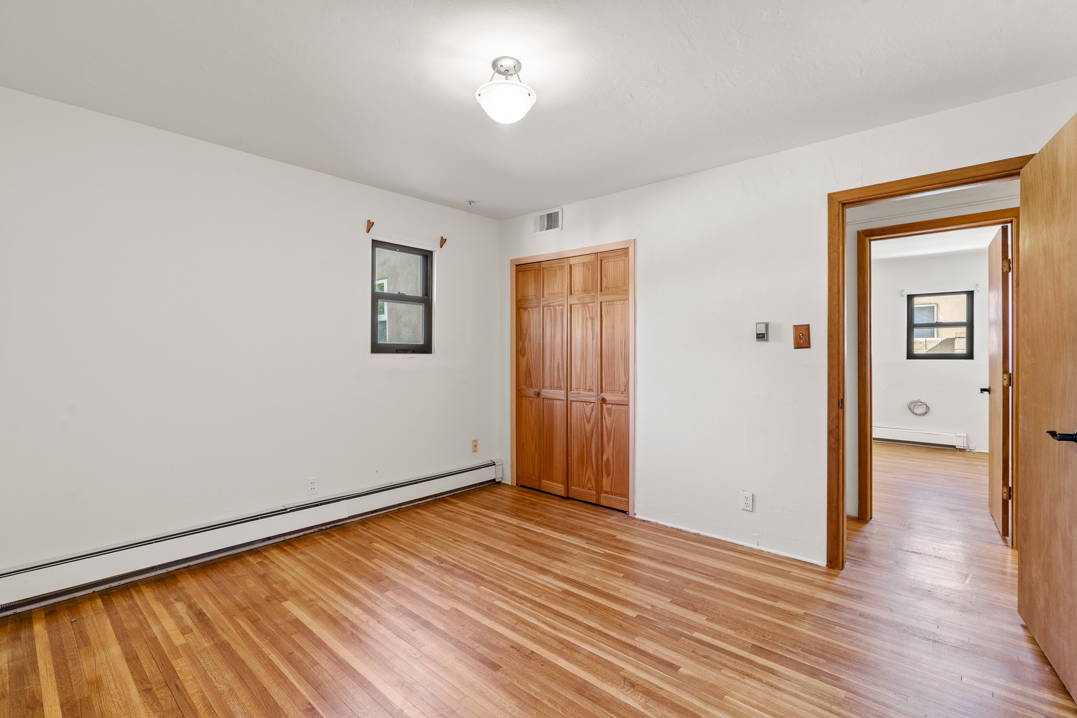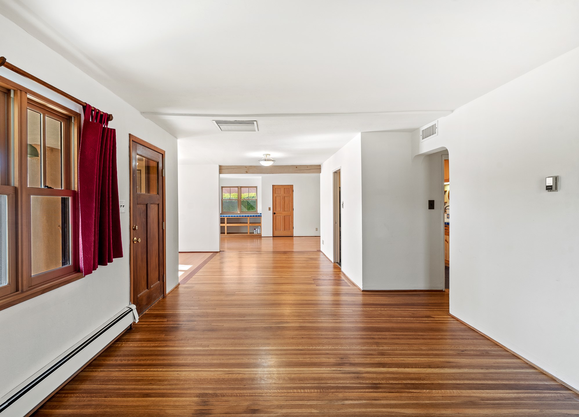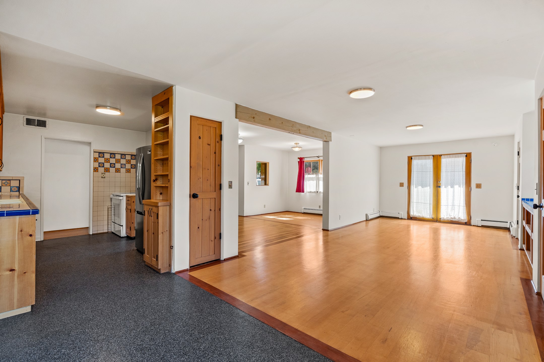 Charming and versatile single-level home nestled in the highly sought-after Casa Alegre neighborhood. Back on the market with significantly improved price. This property stands out as a unique opportunity, featuring multiple living areas and exceptional flexibility for the modern homeowner. This generous residence offers three bedrooms and two bathrooms, complemented by a large heated and finish open area. The oversized bonus space features direct access, presenting enormous possibilities. It's perfectly suited for a private art studio, home occupancy business, large gym, or a dedicated multi-generational living suite. The interior includes dedicated family, living, and dining rooms, all boasting beautiful hardwood flooring throughout the main living areas. Santa Fe Lifestyle at Your Doorstep. Enjoy true convenience with easy access to local shopping and dining. Best of all, the home is ideally situated near the Santa Fe River Trail and the Acequia Trail, providing direct, car-free routes straight to the vibrant Railyard District and historic downtown. The property features a spacious, fenced backyard and a covered portal, creating an ideal setting for outdoor entertaining and relaxation. Enjoy year-round comfort with reliable hot water baseboard heating and evaporative cooling.This motivated seller opportunity won't last long--schedule your showing today!