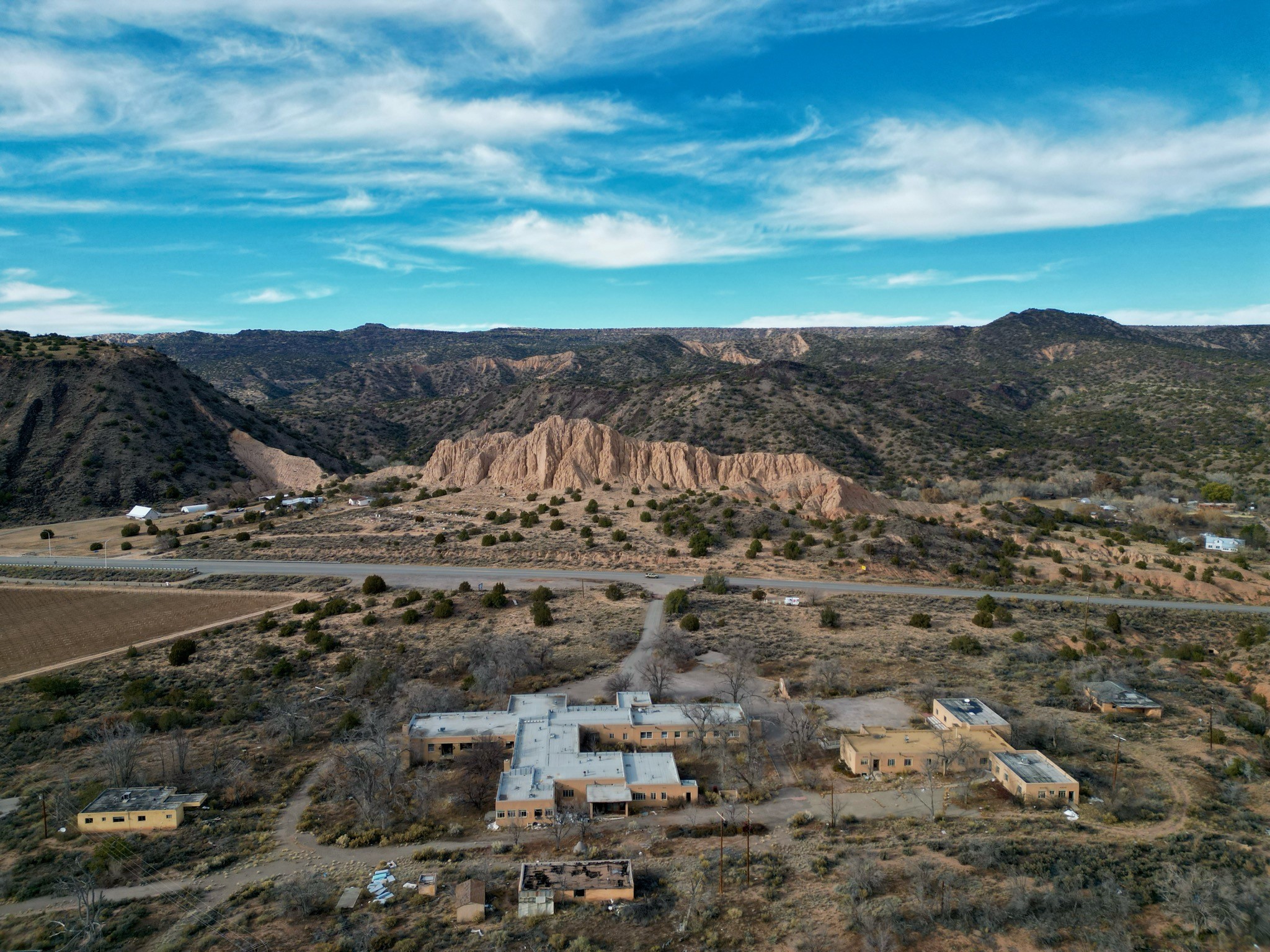 in the heart of the scenic Rio Grande Valley between Taos and Hernandez. Next to the iconic Vivac winery and just down the street from the historic Embudo Station. This section of the river valley is rich with history and culture. This property represents a rare investment opportunity on about 63 acres, featuring multiple structures with significant redevelopment potential. The site includes five detached houses, a former hospital, a clinic, and an old dental office, totaling over 35,000 sq ft of building space. All structures have been unoccupied for some time and require extensive repair or renovation, offering flexibility for residential, commercial, or mixed-use development. The five houses are scattered across the grounds, ideal for rental or live-in spaces once rehabilitated. The hospital and dental office occupy a central location with large floor plans suitable for offices, clinics, or community use. The property includes two wells, power infrastructure and a septic system, plus additional land that could be used for construction, landscaping, or parking. A hold harmless agreement is required prior to viewing. Sold As-Is.