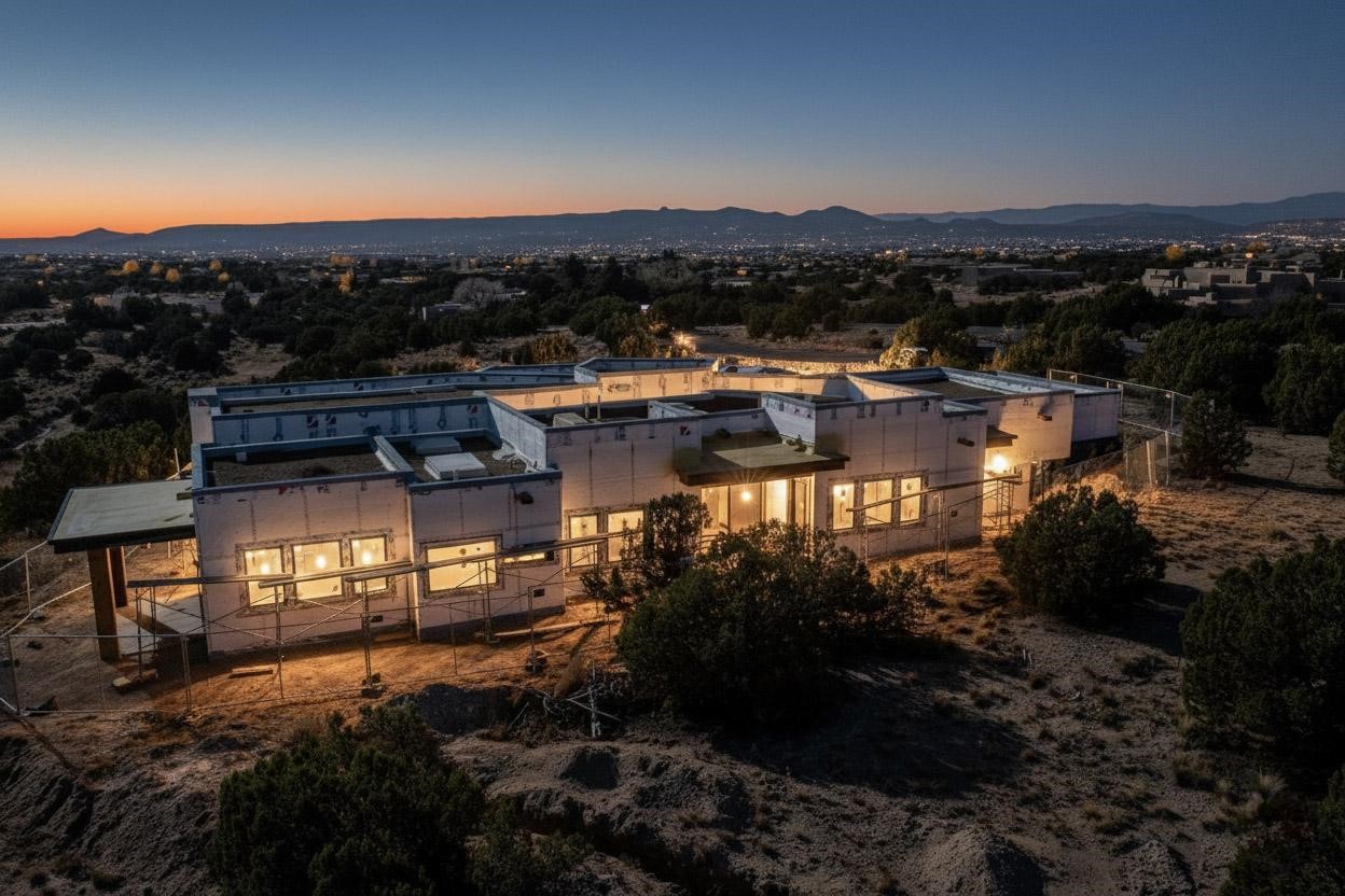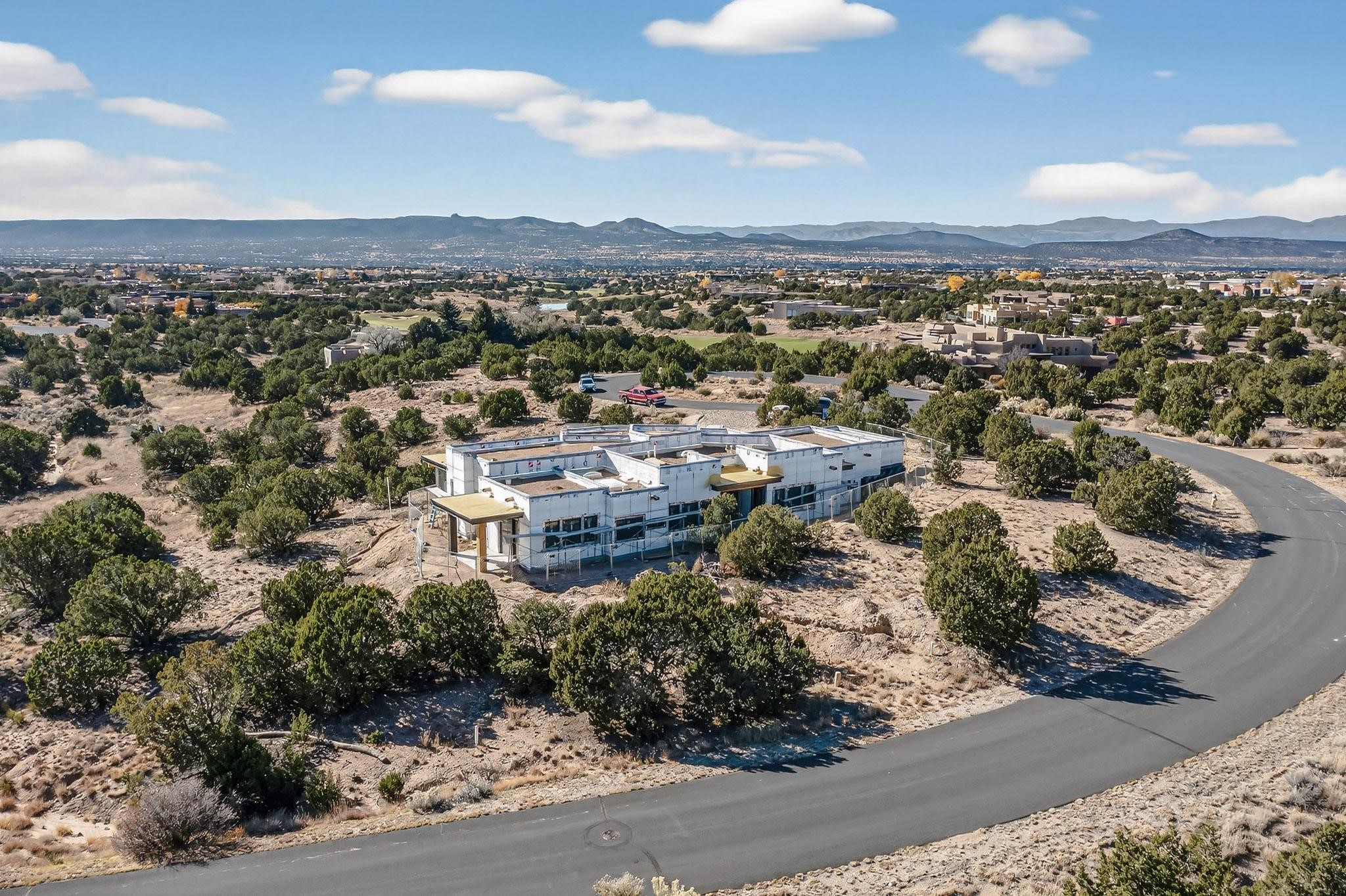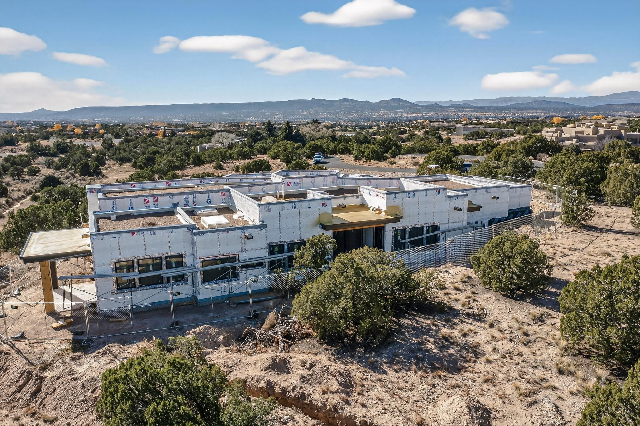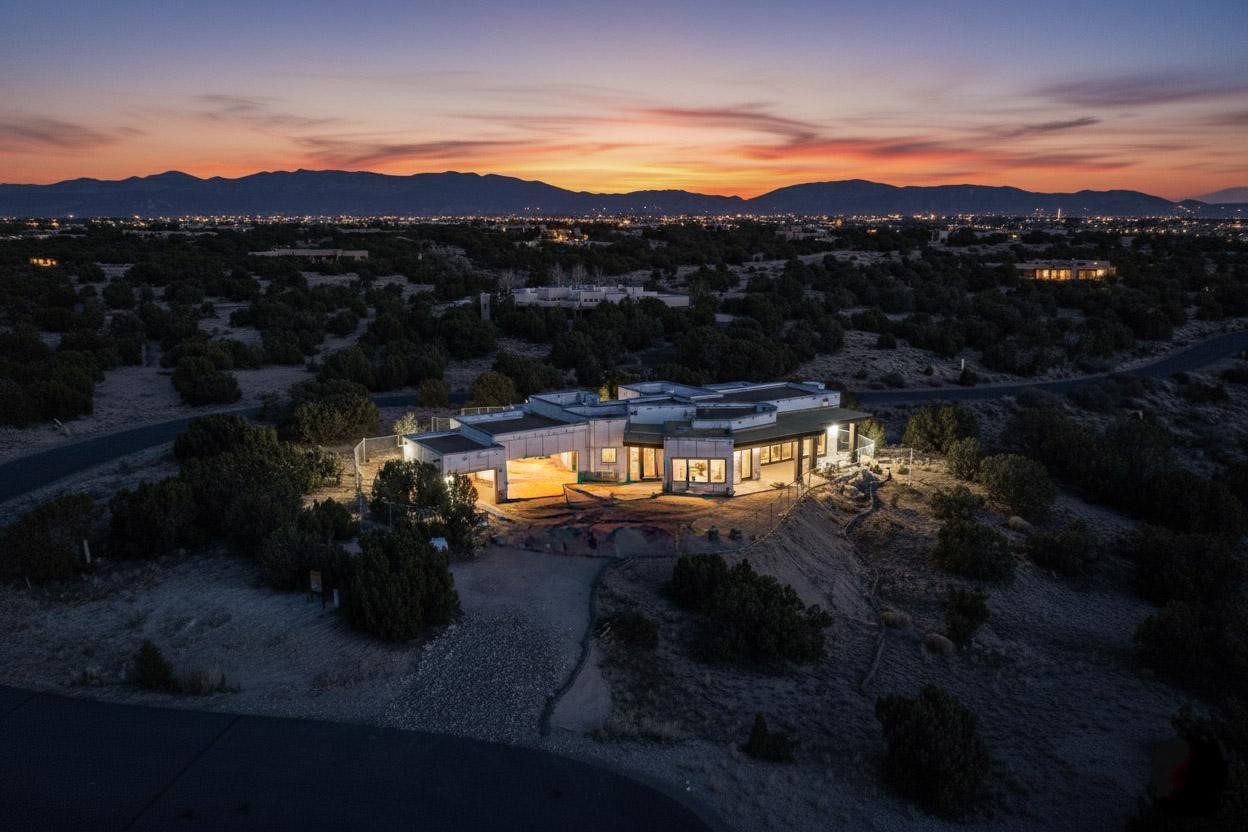 A masterful expression of contemporary design and refined elegance, this residence captures the essence of modern Santa Fe living. Currently under construction with a target completion of Spring 2026, this architectural gem--conceived by Five-Ten Architecture, B Constructiv, and Martinez Design Group--harmonizes innovation, sophistication, and a profound connection to the surrounding landscape. Perfectly sited on a elevated and expansive 2.5 acre lot, the home offers an extraordinary sense of privacy and serenity. Expansive walls of glass frame breathtaking vistas of the Jemez and Sandia Mountains, where the interplay of light and shadow transforms each sunrise and sunset into an unforgettable experience. There are partial, yet captivating views of the Sangre De Cristos from the primary bedroom and primary bedroom portal. The thoughtfully designed floor plan features three bedrooms, an office, and four baths, blending effortless functionality with timeless style. Clean lines, minimalist forms, and luxurious finishes define every space, while seamless transitions between interior and exterior living areas create a natural flow ideal for both relaxation and entertaining. Every element of this residence speaks to exceptional craftsmanship and design integrity--a collaboration between visionary creators who understand that true luxury lies in the details. This is more than a home; it is a sanctuary of peace, beauty, and contemporary sophistication. Welcome to the perfect balance of art and architecture, where modern living meets the timeless allure of the Santa Fe landscape.