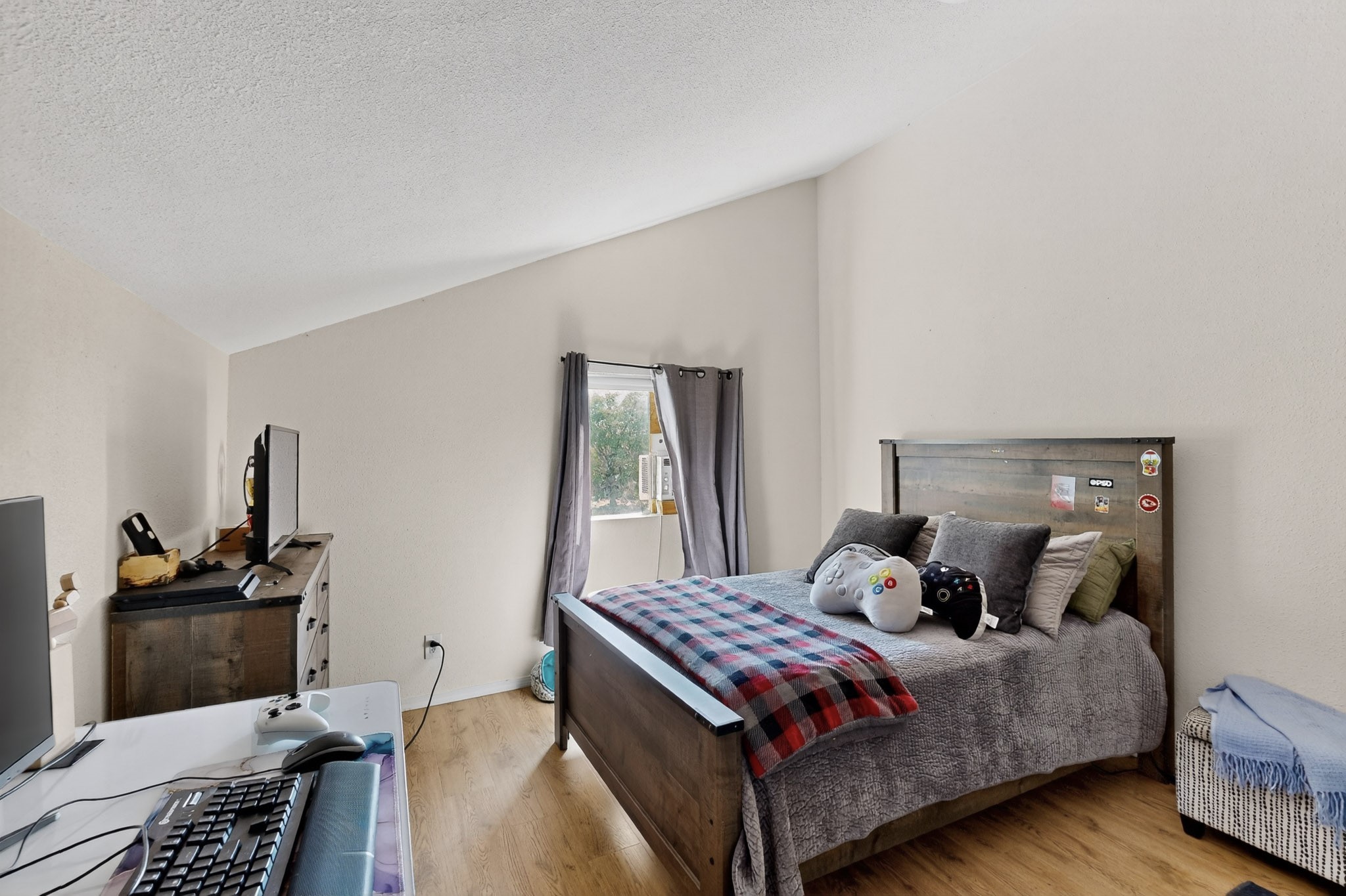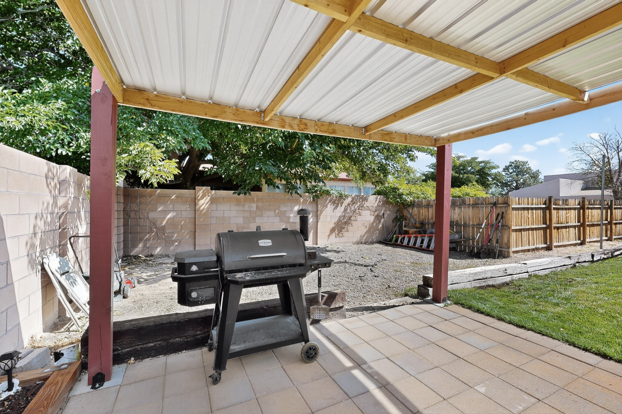 Welcome to this stunning 4 bedroom 2 bathroom property that offers 2,106 sq ft of thoughtfully designed living space in one of the most desirable neighborhoods in Rio Rancho. This home features REFRIGERATED AIR, Central air Heating, water heater installed 2023, NEWER roof TPO with a TRANSFERABLE WARRANTY. The Solar System ONLY has a bill of 109.00$ and a PNM bill of $8 dollars. NO POLYBUTYLENE. Conveniently located close to restaurants, shopping centers and schools. Come and take a tour of this beautiful home today!