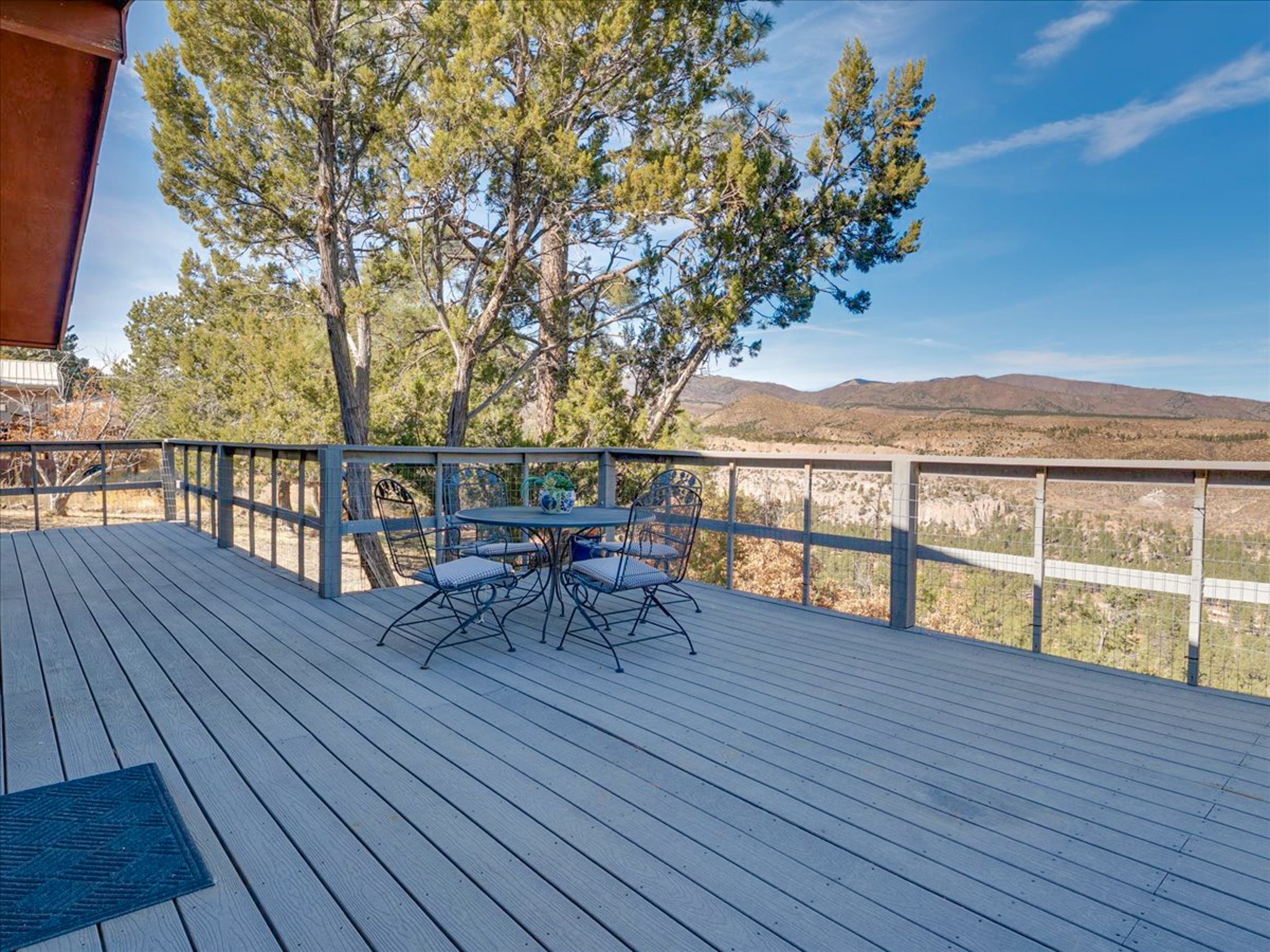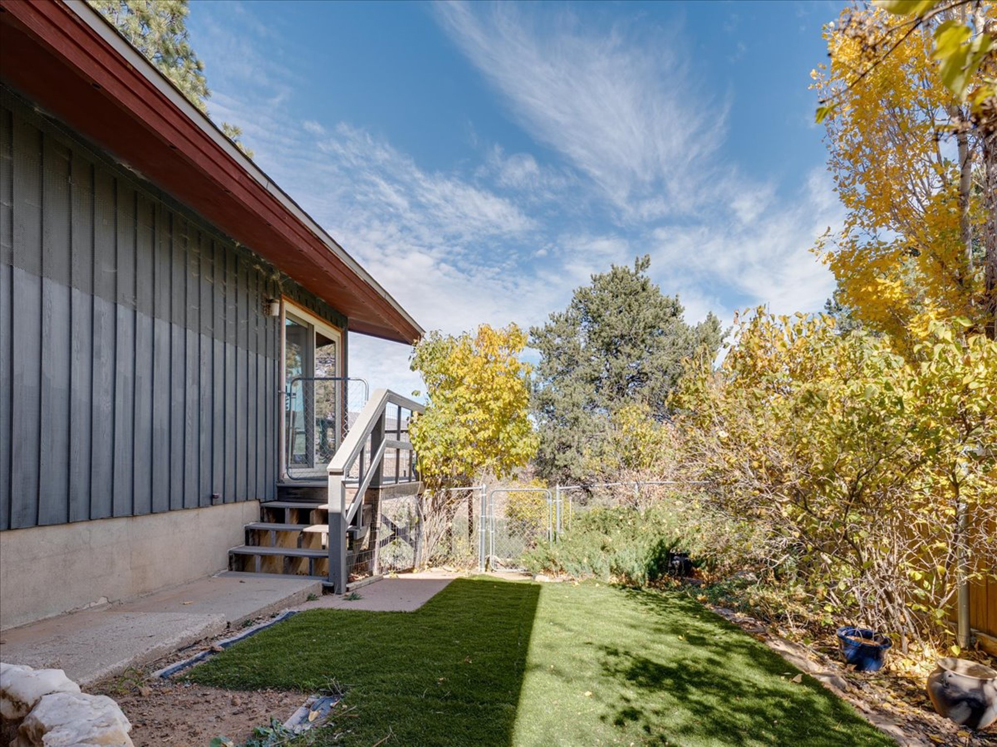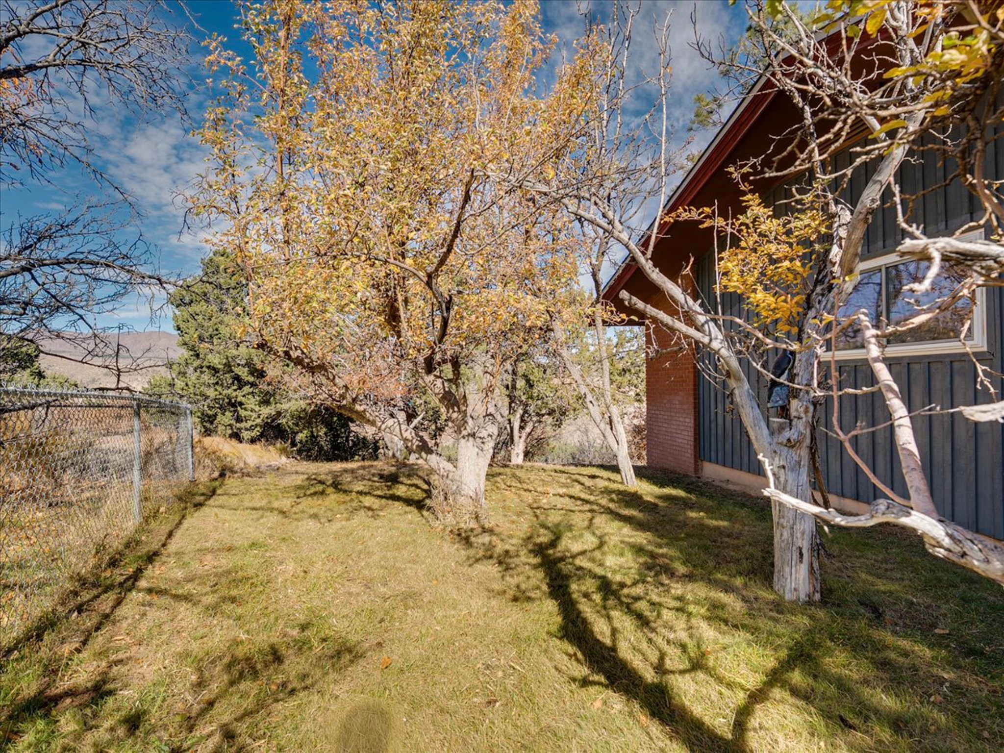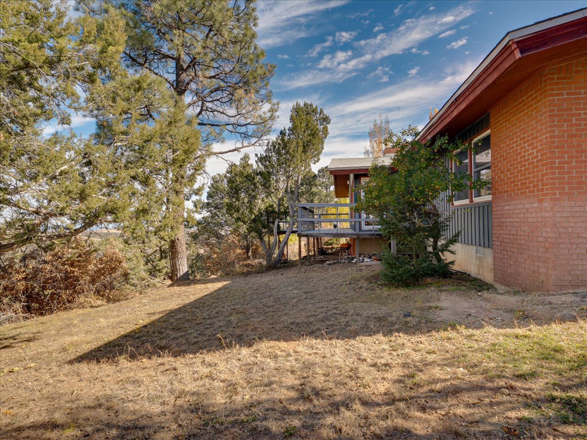 Stunning Barranca Mesa home overlooking Rendija Canyon. Perched on a generous 0.335-acre canyon lot, this property offers the best of both worlds - expansive outdoor space paired with sweeping canyon views. Mature pine trees provide natural beauty, shade, and privacy. Inside, a spacious living room features floor-to-ceiling picture windows and a striking raw-edge quartz fireplace with a wraparound mantle that flows into the dining room, which is large enough to serve as a second living area. The bright white kitchen offers ample room for an eat-in nook, pantry, and the adjacent laundry room provides direct garage access, functioning perfectly as a mudroom or drop zone. The primary suite includes a built-in vanity, a walk-in closet, and large windows facing the canyon. Three additional bedrooms and a guest bath complete the floor plan. From the dining room, step out onto a lovely balcony overlooking the canyon, ideal for morning coffee or evening sunsets. You'll also find a fenced dog run with low-maintenance artificial turf, perfect for pets. Recent updates include a new roof (2024), a new heating system (2025), new flooring (2025), a refrigerator (2025), interior paint (2025), new blinds in the living room, family room, kitchen, and a bedroom (2025), and newer double-pane windows (2005). This is a rare opportunity to own a beautiful home with unmatched canyon views on Barranca Mesa. This one is not to be missed! Schedule a private showing today. Disclosure: Owner Broker