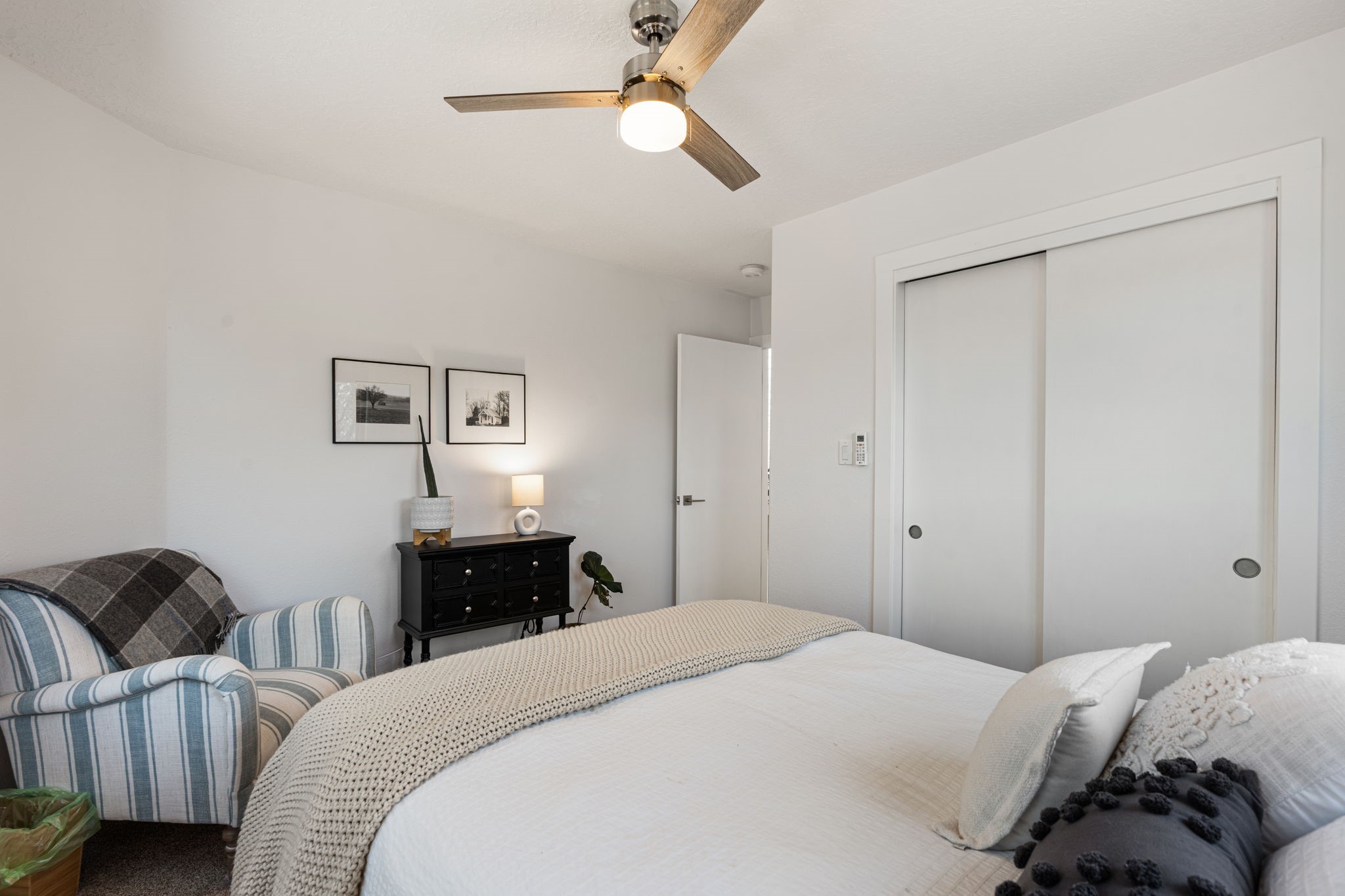 This updated home situated on 4.68 acres & 2 lots, zoned A-2, NO HOA & additional 820 sq. ft Bunker like basement is one of the most unique in the east mountains. It features an oversized 33.9x24 tandem style garage, automatic gate, vaulted ceilings, natural light, exposed wood beams, large casement windows, multiple outdoor seating areas, hot tub purchased 11/1/24, community water-no well. 3 sources of heat: Radiant baseboard, 6 Mini Splits& Wood stove. Solar panels that will be paid off by the Seller with acceptable offer. The views are stunning! The home is open & inviting. The property will take your breath away. Outdoor features include an oversized chair facing the Sandias for a beautiful sunset view, access through back gate, chicken coop and goat pen and much more
