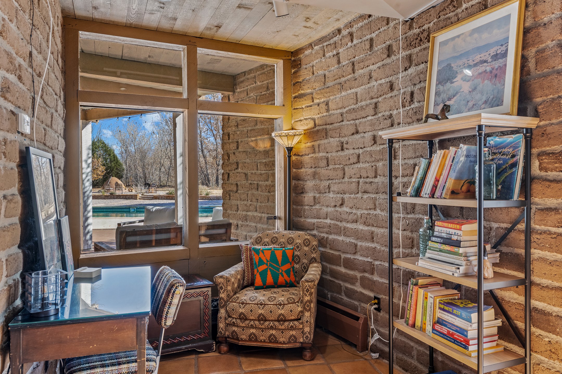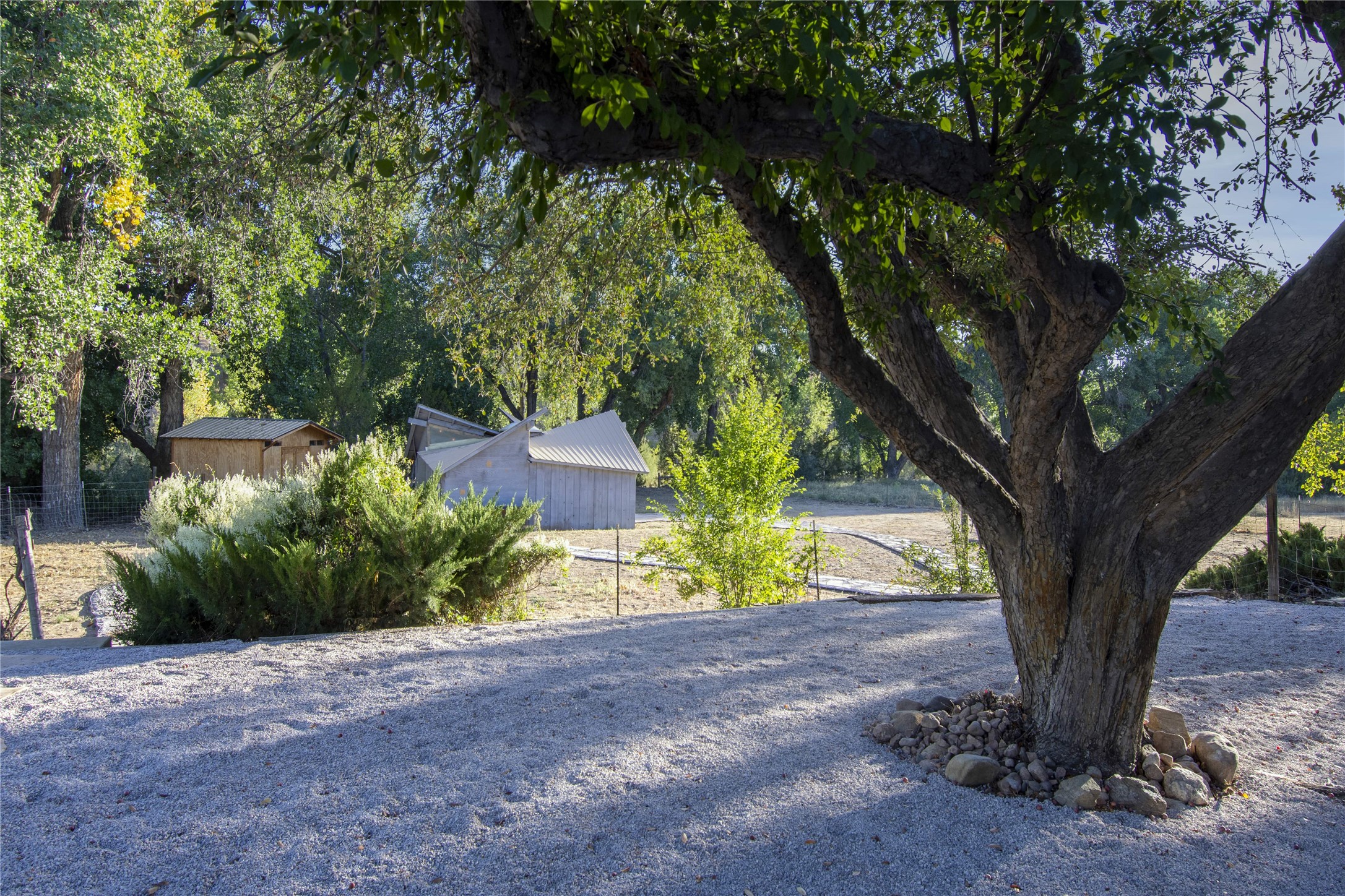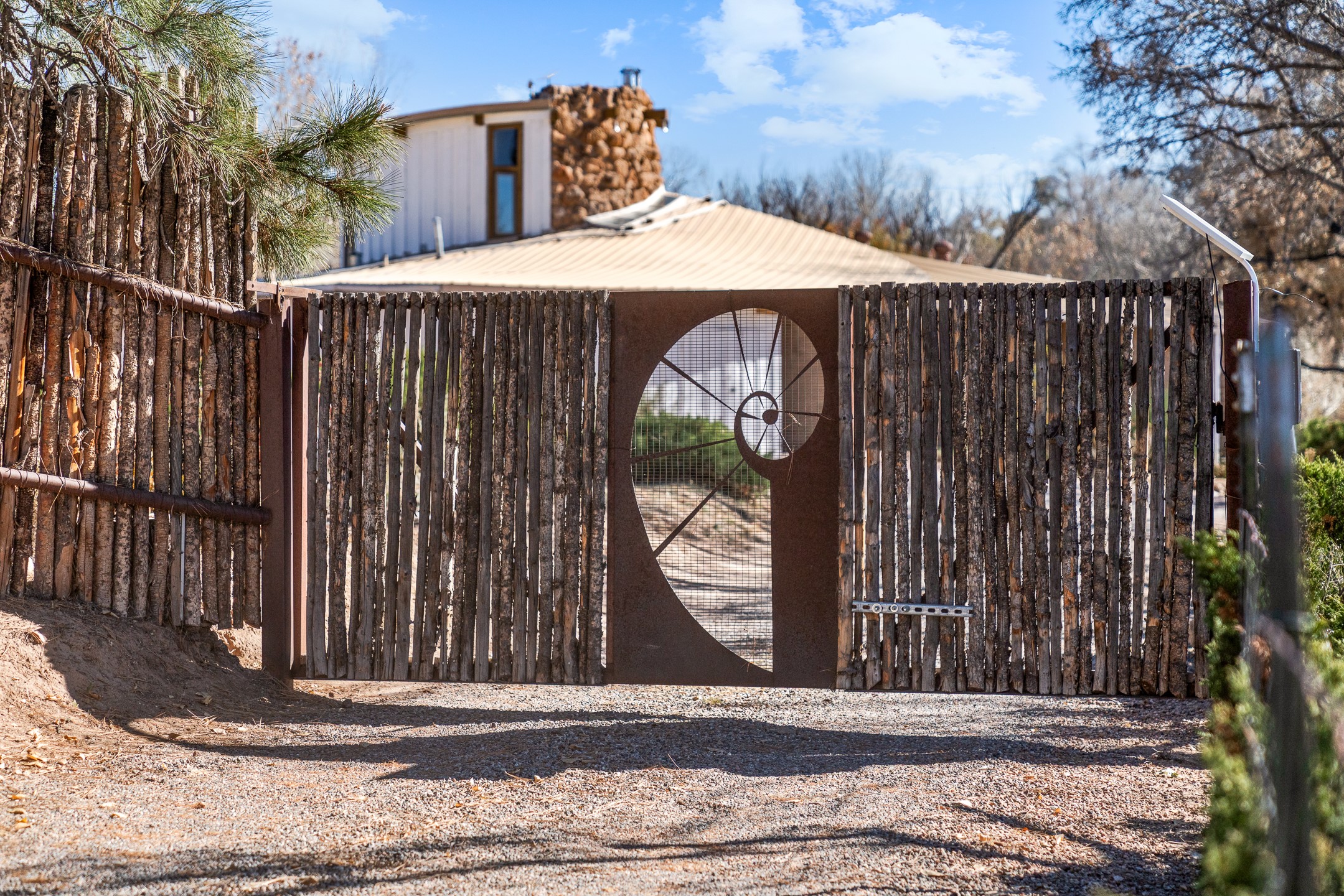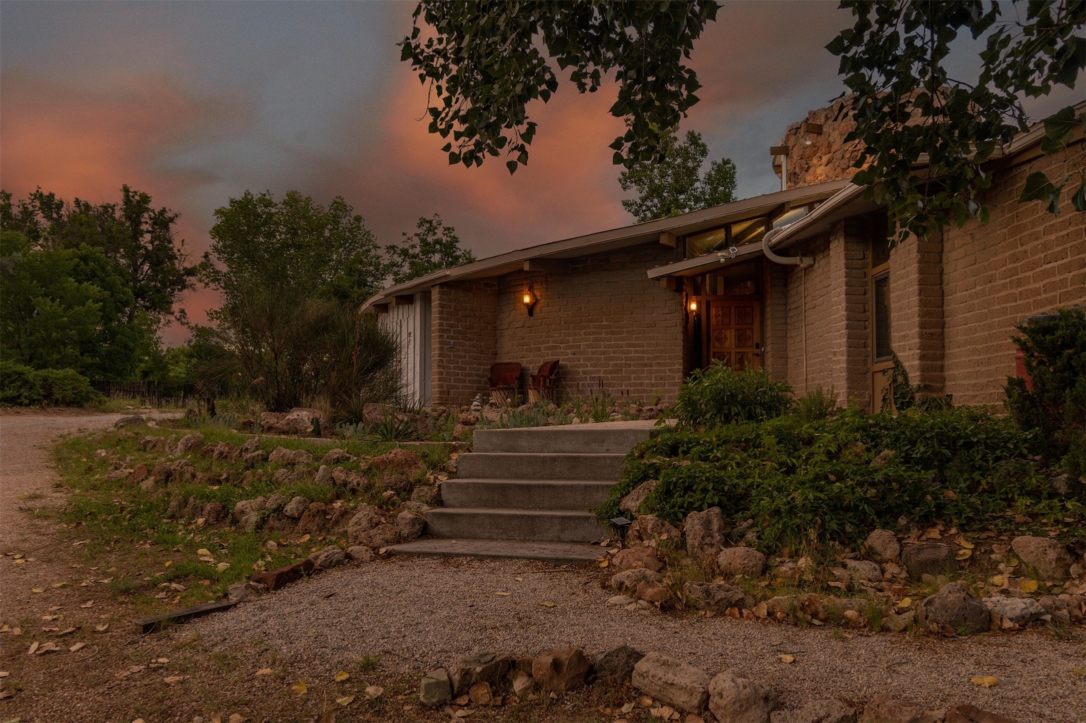 El Caracol Court | 34 State Road 503 is a truly distinctive riverfront property located along the Rio Nambe in the lush Nambe Valley. Designed by renowned local architect Allen L. McNown, a University of Oregon trained architect who settled in Pojoaque in the 1950s and became known for his contemporary adobe work with undulating forms and tinted-light interiors, including the modern church at Namb Pueblo. The home combines artistic design, functionality, and nature in an extraordinary way. Its form is inspired by the spiral geometry of a nautilus shell, a motif McNown used in other celebrated "snail" houses in the valley, and this architectural concept defines a flowing interior that celebrates light, water, and organic space. Set on approximately 2.10 acres, the property is fully fenced and offers both privacy and usability. It benefits from surface water rights off the Rio Nambe as well as a shared well, providing flexibility for landscaping and irrigation. The grounds include mature trees, gardens, a swimming pool, storage shed, and a separate workshop--a combination rarely found in this corridor.The residence itself measures roughly 4,000 square feet with three bedrooms and three bathrooms. Key design features include adobe and frame construction, dramatic curving walls, exposed wood beams, a lava-rock fireplace, and a sweeping staircase that centers the home's open plan. Additional amenities include: 40' Private swimming pool with adjacent lounge area, covered portal, sunroom with glass enclosure, solar improvements, mechanical system updates, maintained roof and gutters, radon mitigation system, updated appliances, and enhanced irrigation infrastructure. Exceptional maintenance and stewardship, upgrades over recent years that have modernized systems while preserving the artistic integrity of the home. The property has also been operated as a short-term rental, generating consistent income and showing strong demand as a retreat or vacation destination.