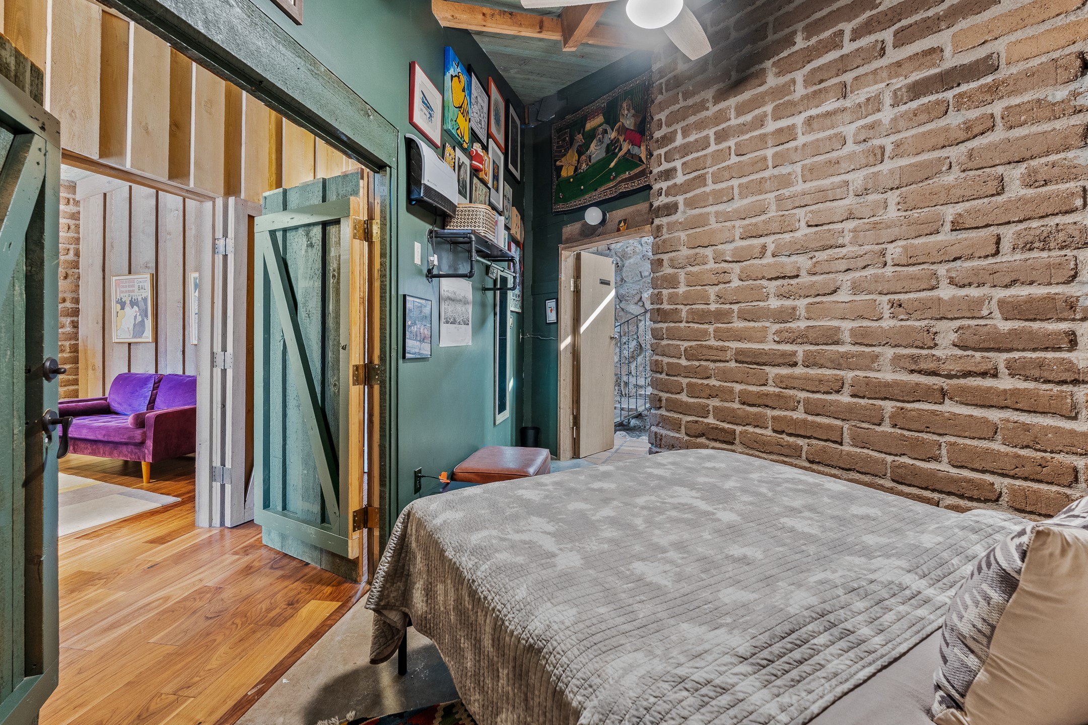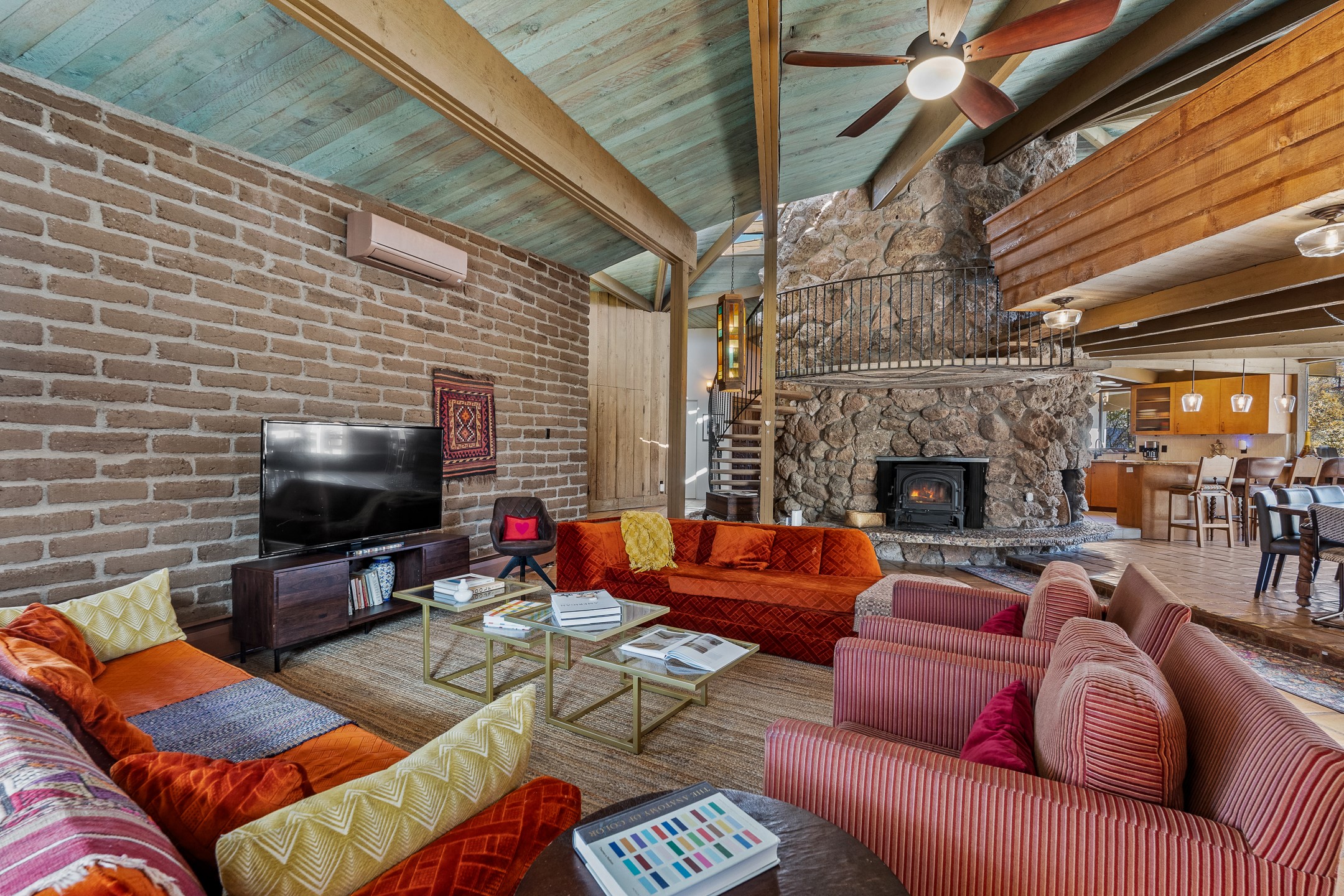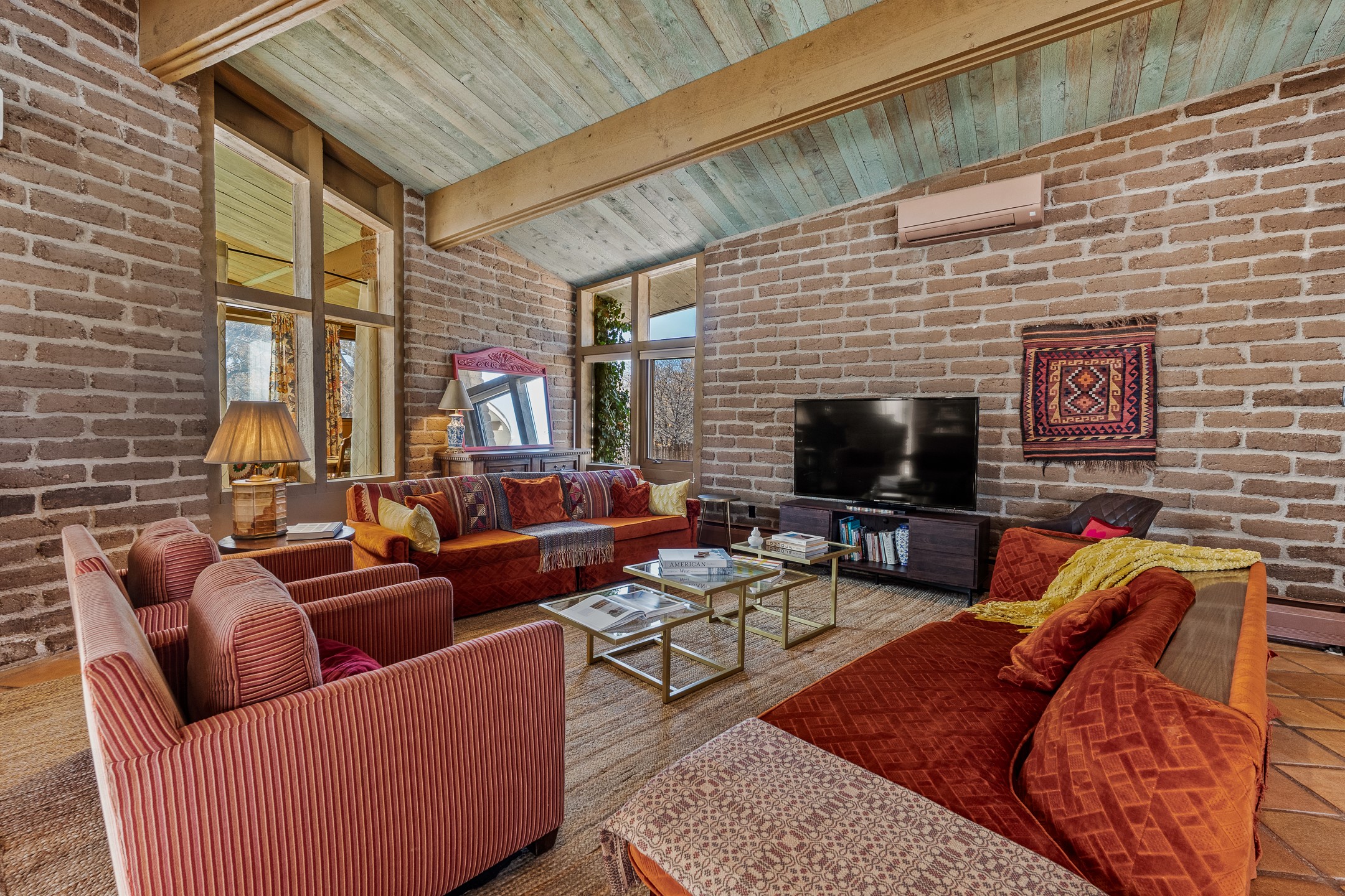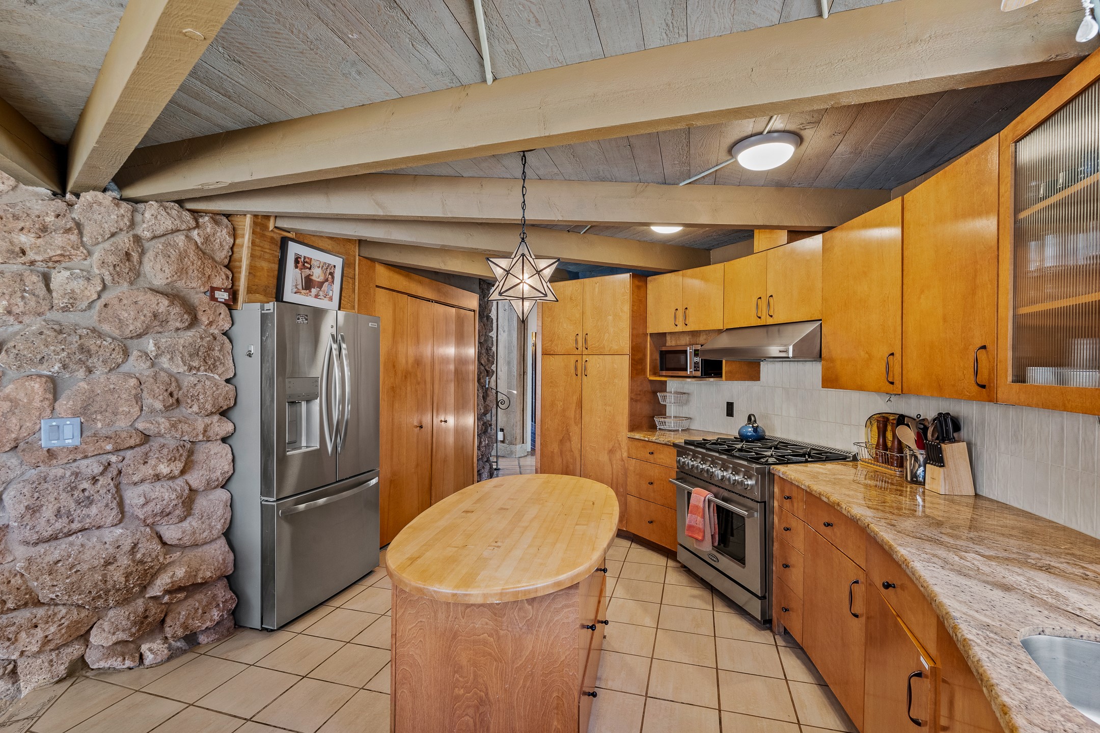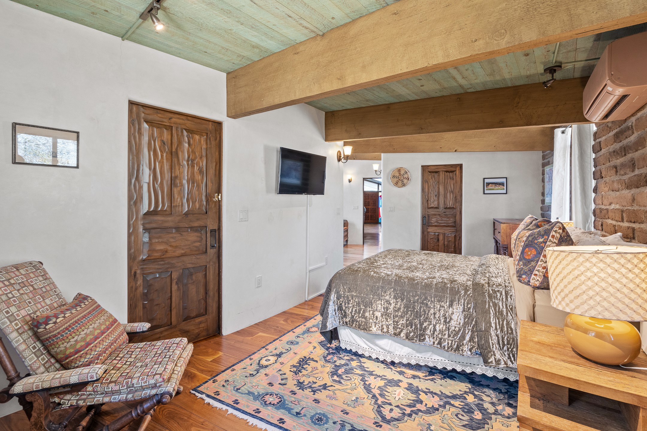 El Caracol Court | 34 State Road 503 is a truly distinctive riverfront property located along the Rio Nambe in the lush Nambe Valley. Designed by renowned local architect Allen L. McNown, a University of Oregon trained architect who settled in Pojoaque in the 1950s and became known for his contemporary adobe work with undulating forms and tinted-light interiors, including the modern church at Namb Pueblo. The home combines artistic design, functionality, and nature in an extraordinary way. Its form is inspired by the spiral geometry of a nautilus shell, a motif McNown used in other celebrated "snail" houses in the valley, and this architectural concept defines a flowing interior that celebrates light, water, and organic space. Set on approximately 2.10 acres, the property is fully fenced and offers both privacy and usability. It benefits from surface water rights off the Rio Nambe as well as a shared well, providing flexibility for landscaping and irrigation. The grounds include mature trees, gardens, a swimming pool, storage shed, and a separate workshop--a combination rarely found in this corridor.The residence itself measures roughly 4,000 square feet with three bedrooms and three bathrooms. Key design features include adobe and frame construction, dramatic curving walls, exposed wood beams, a lava-rock fireplace, and a sweeping staircase that centers the home's open plan. Additional amenities include: 40' Private swimming pool with adjacent lounge area, covered portal, sunroom with glass enclosure, solar improvements, mechanical system updates, maintained roof and gutters, radon mitigation system, updated appliances, and enhanced irrigation infrastructure. Exceptional maintenance and stewardship, upgrades over recent years that have modernized systems while preserving the artistic integrity of the home. The property has also been operated as a short-term rental, generating consistent income and showing strong demand as a retreat or vacation destination.