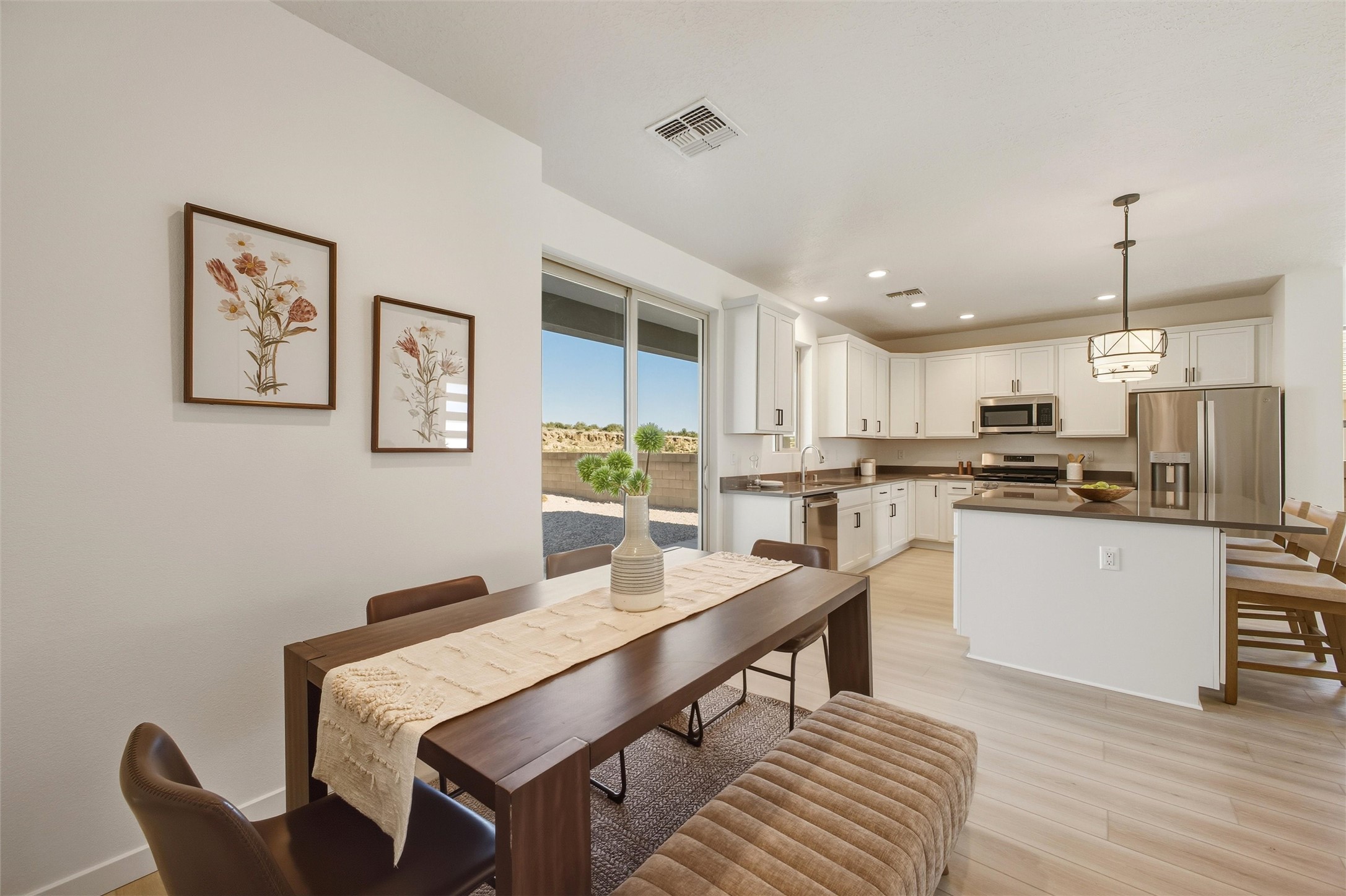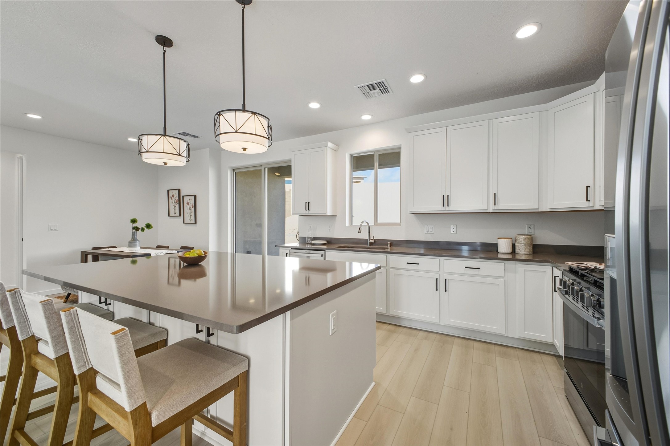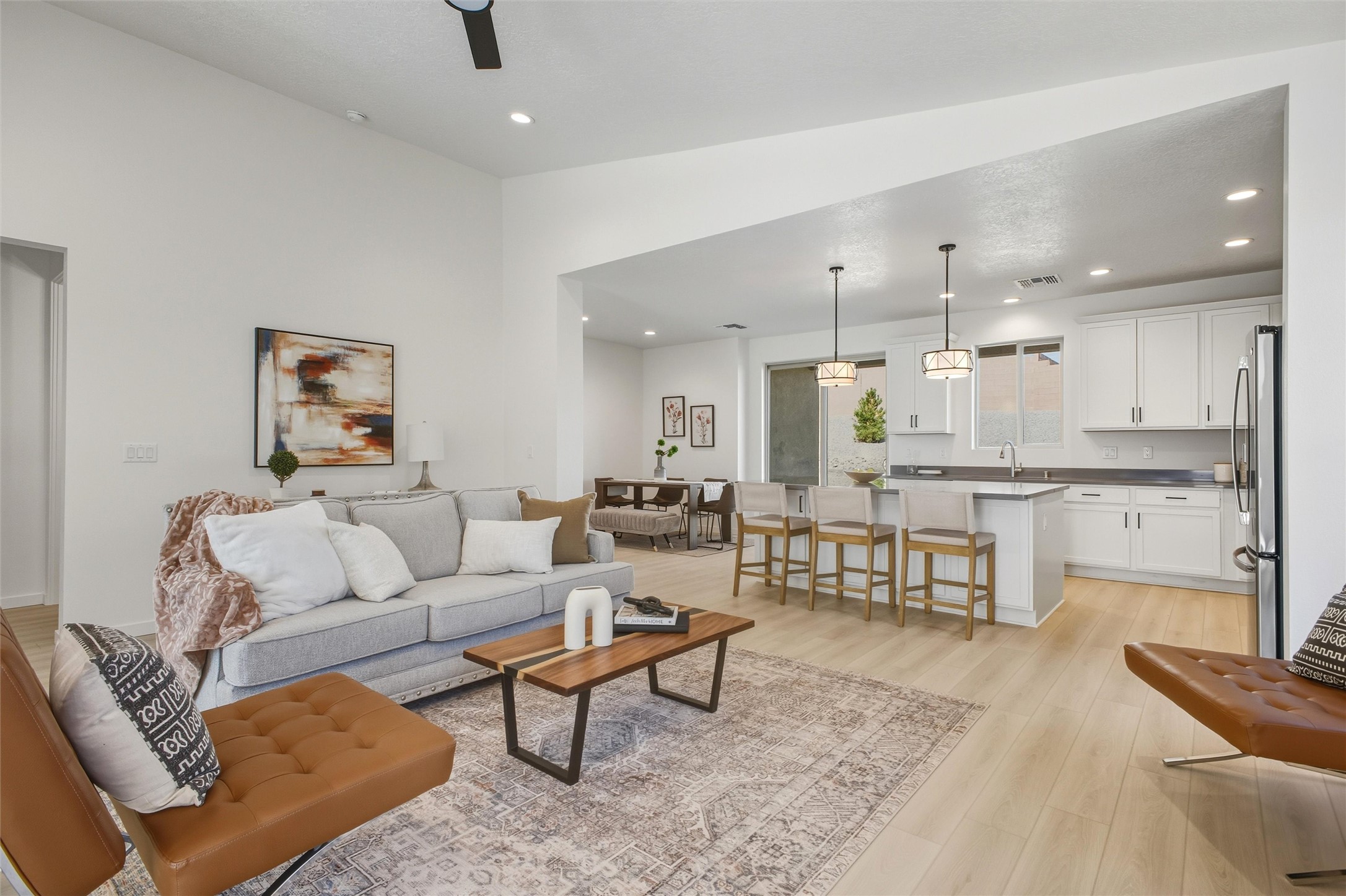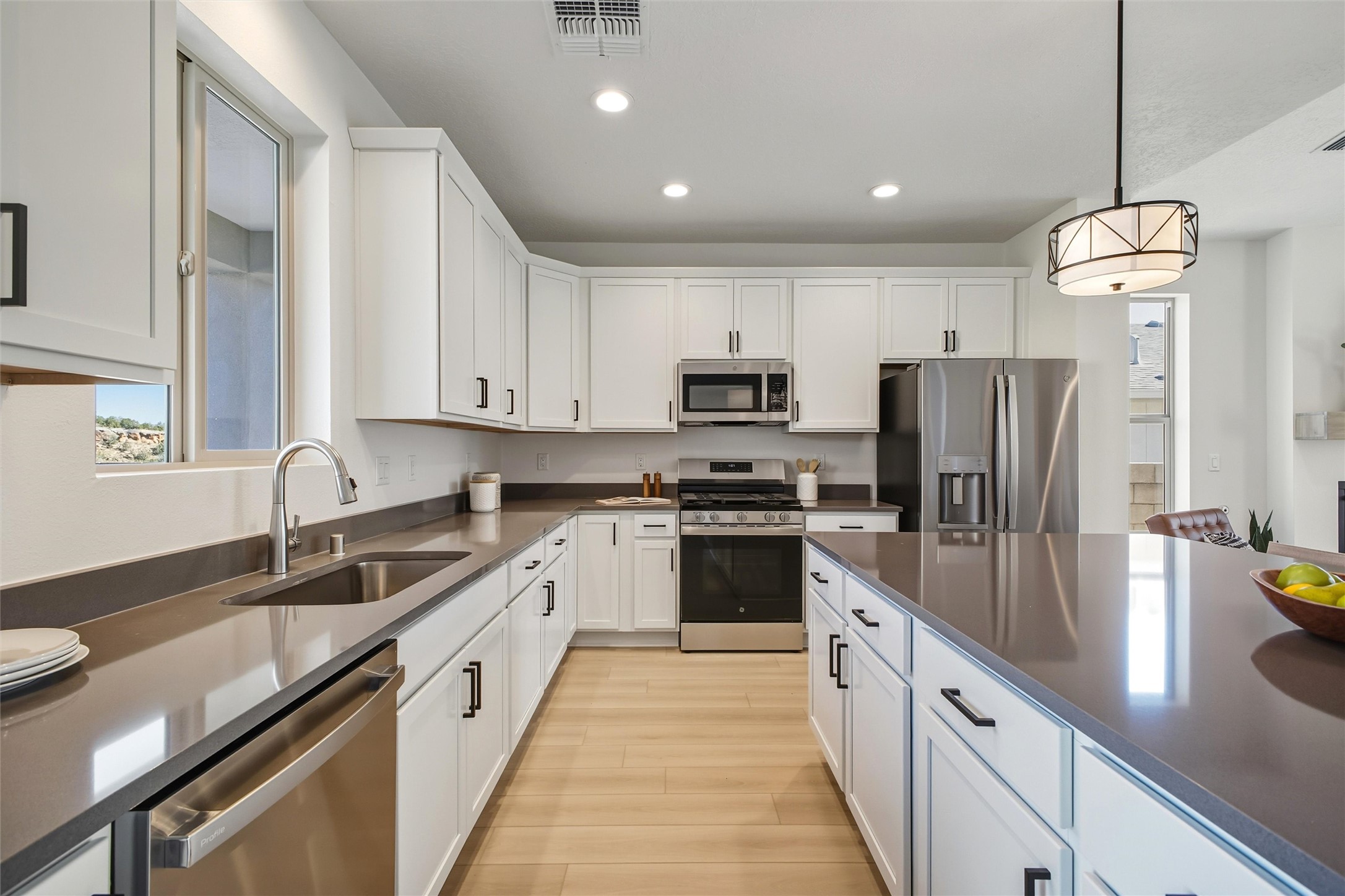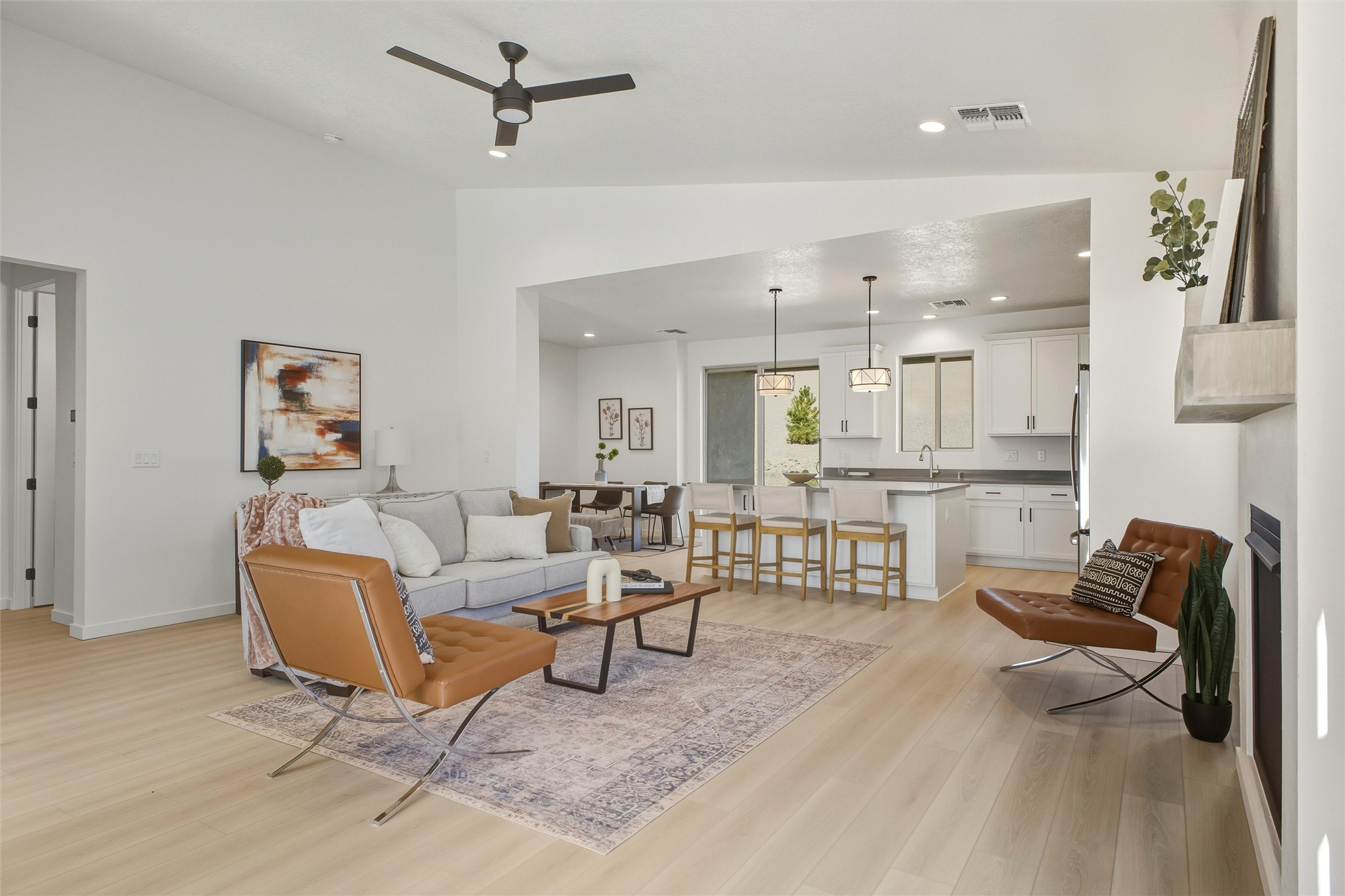 Step into modern comfort with this stunning brand-new 3 bedroom, 2 bathroom home, thoughtfully designed with energy efficiency and long-term peace of mind at the forefront. This move-in-ready residence features an open, light-filled layout with beautiful contemporary finishes, sleek fixtures, and quality craftsmanship throughout.The spacious kitchen flows seamlessly into the dining and living areas, creating an inviting space perfect for everyday living, enjoy the convenience of a 2-car garage, and the security of a 2-10 warranty. Step outside to a fully landscaped backyard--a rare turnkey treat--where you can relax and soak in the scenic views right from your own space.With modern design, efficiency, warranty, and a truly move-in-ready presentation, this home is the perfect blend of style, comfort, and value. Your new beginning starts here.