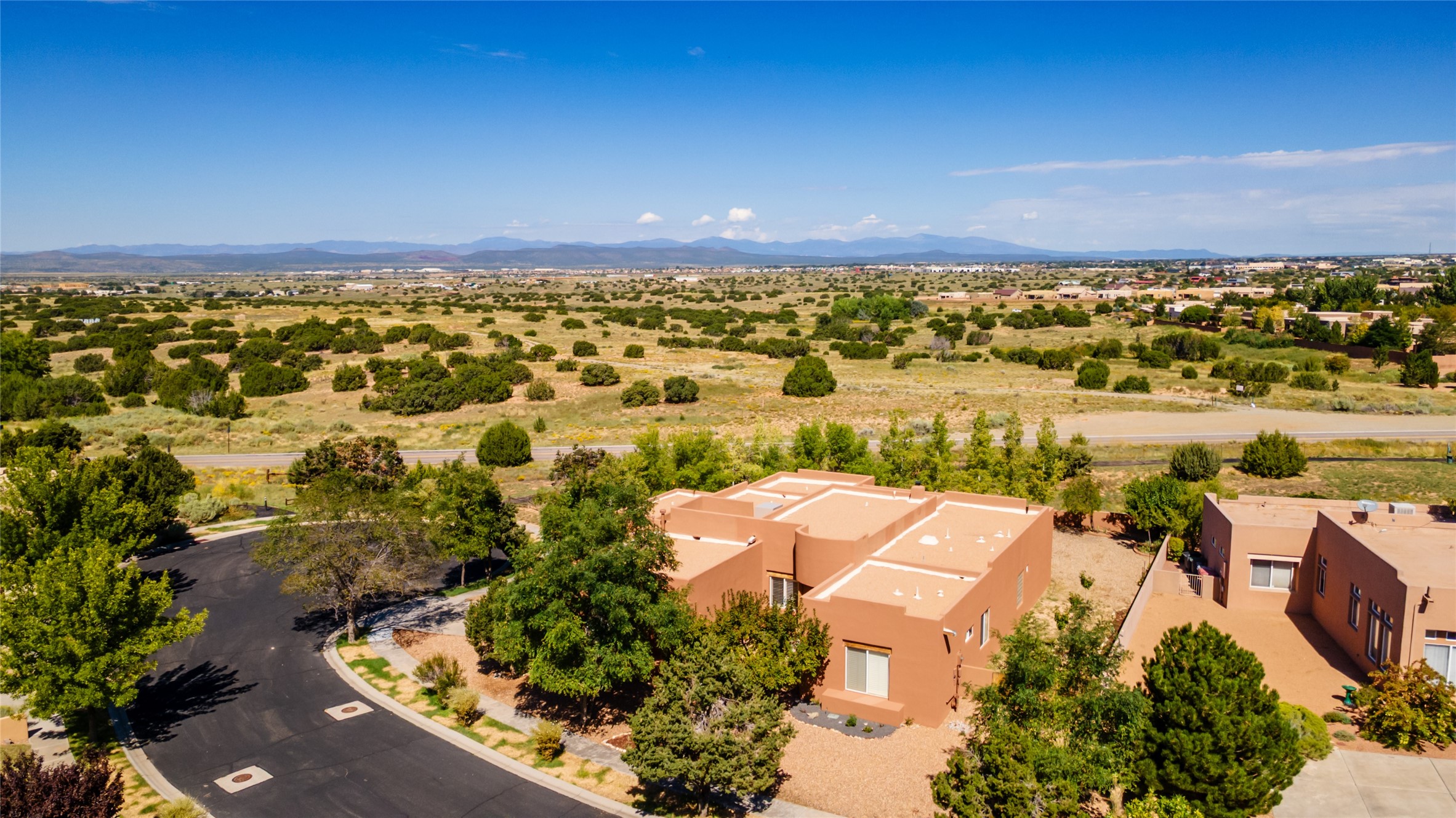 Welcome to this exceptional home, perfectly sited on a spacious lot at the end of a quiet cul-de-sac, with open space on two sides and gorgeous sunset views. Enjoy evenings by the outdoor fireplace as the sky puts on its nightly show. Thoughtfully updated by its current owners, this property offers tremendous value in today's market. With five full bedrooms, (two of which are currently used as an ensuite office and studio) and four full baths, the home provides remarkable flexibility for every lifestyle. The heart of the home is the magnificently remodeled chef's kitchen--an absolute showstopper. Bosch appliances, beautiful two-tone cabinetry, subway tile with mosaic accents, hand-punched tin details, brick-set tile flooring, and a mix of granite and quartz countertops come together in a space any cook will adore. The dining room is inviting and generous, designed to host family gatherings and memorable evenings with friends. The living area offers vigas overhead, a wood-burning fireplace, and warm natural light--a perfect space for cozy winter days. The primary suite is a private retreat: spacious, serene, and complete with a beautifully updated bath with customized walk-in shower, dual hammered nickel sinks and lighting, and an excellent walk-in closet. It's a haven for mornings that start slow and evenings that wind down in comfort. Additional upgrades made during this owner's tenure include a new boiler and evaporative cooler, new carpeting, fresh interior paint, new ceiling fans and custom lighting, plus plantation shutters throughout--both beautiful and energy-efficient. Exterior wise, the stucco was also recently replaced and refreshed and the rear yard has been enhanced with new rock landscaping, pathways, and fruit trees, creating a peaceful outdoor escape. The slightly oversized garage is another welcome bonus with additional storage shelves. Located in the desirable Village at Rancho Viejo, this community offers miles of paved walking trails, multiple parks, sensible covenants, friendly neighbors, and convenient access to shopping and restaurants. Roughly 12 miles to the Santa Fe Plaza, this fantastic home delivers!