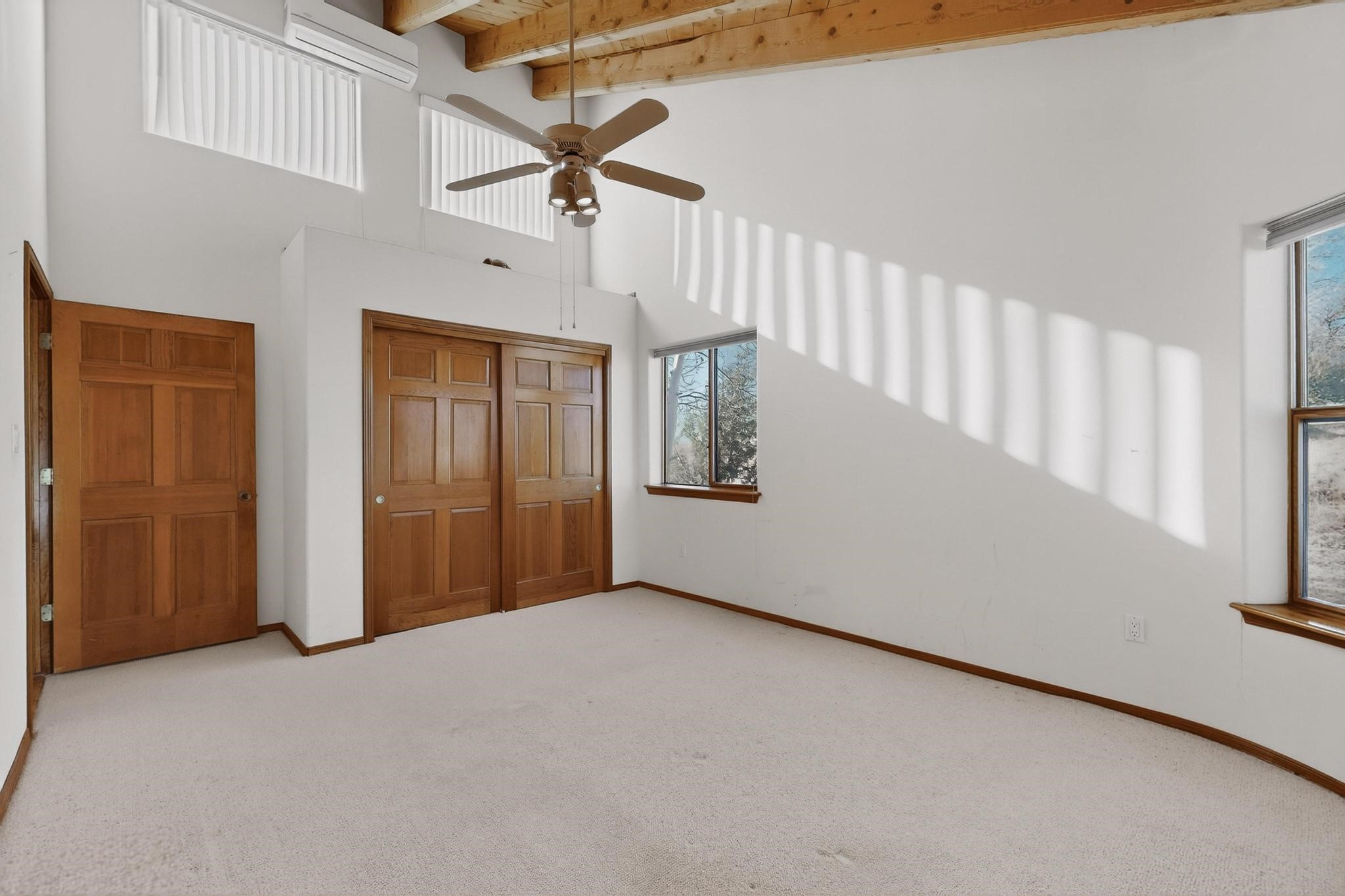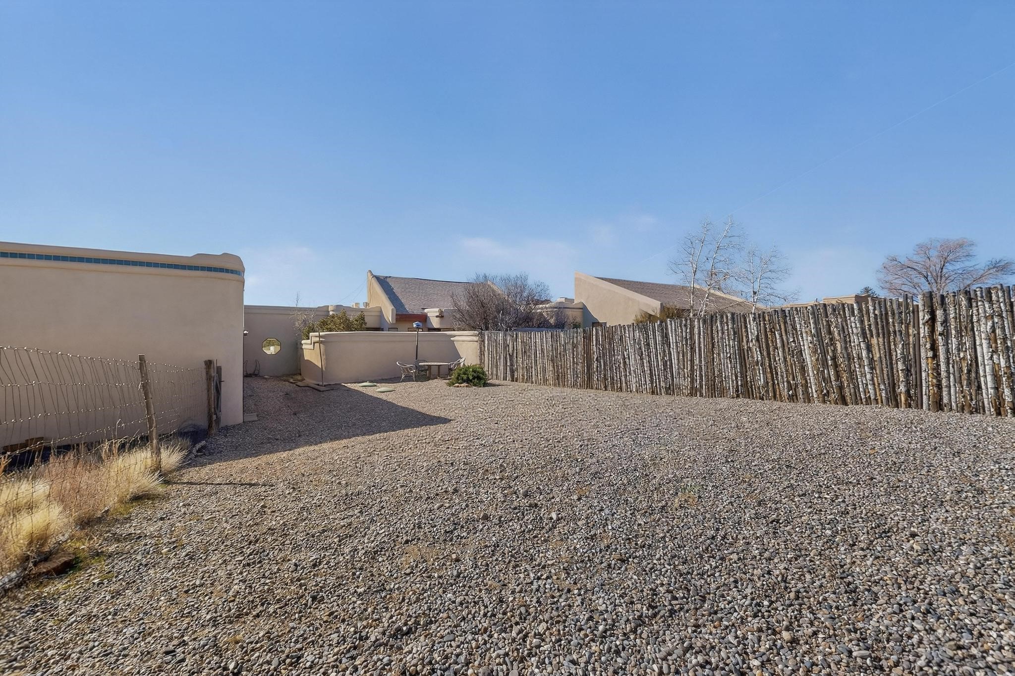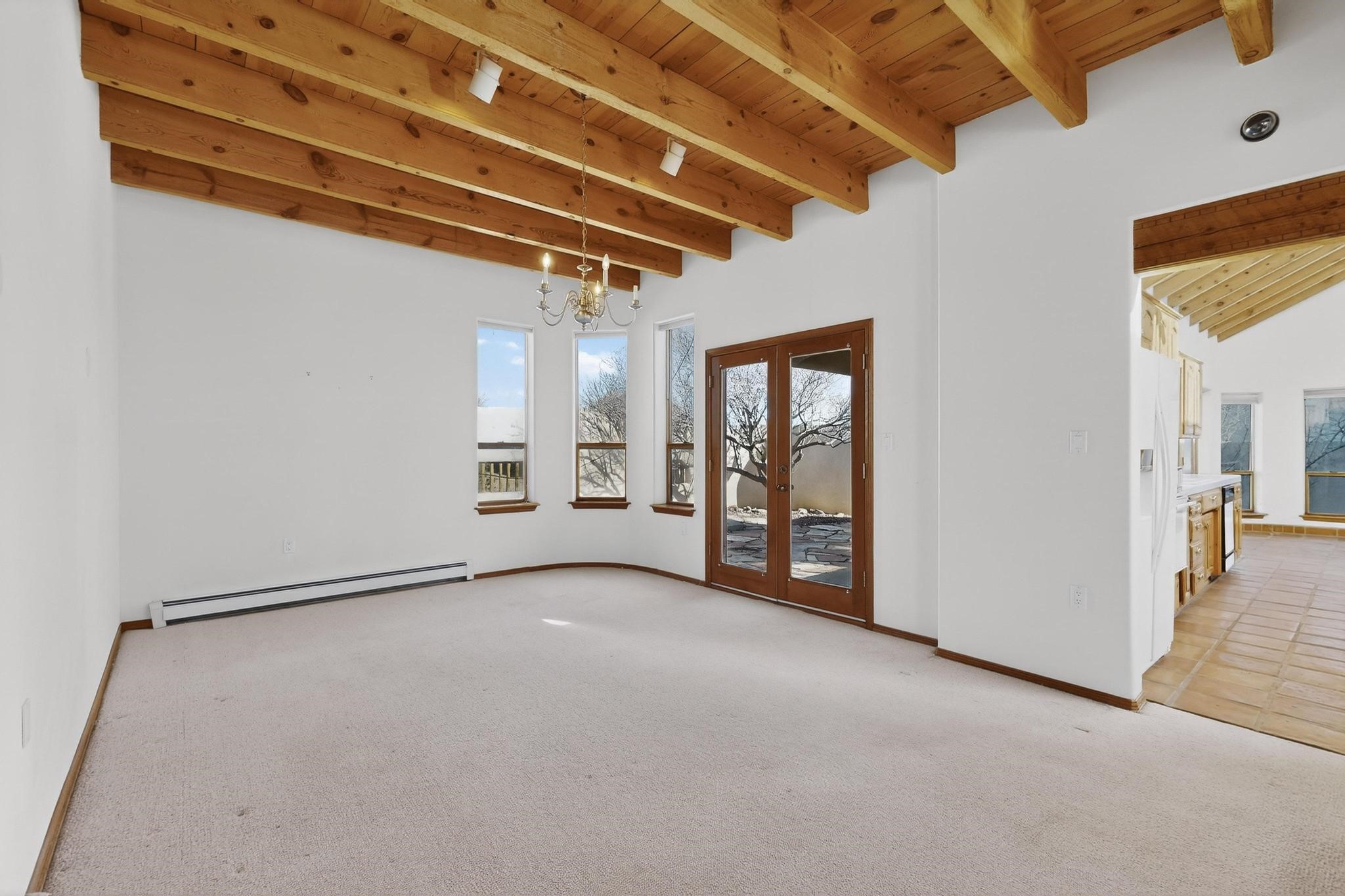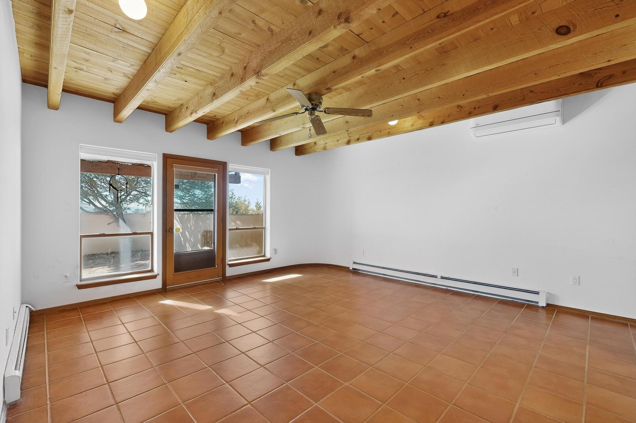 Remarkable opportunity to obtain a 3963sf multi generational 4 bedroom home in Eldorado. Born with a passive solar design and high ceilings with deep southern glazing this home is full of sunlight. Saltillo tile floors, beam and viga ceilings, high clerestories, nichos, 2 kiva fireplaces, mini splits and a brand new roof, this contemporary pueblo home is amazing. A spacious country style kitchen with large breakfast bar and breakfast nook will accommodate plenty of family entertainment. There is an adjoining family room, sunken living room and a formal dining room/den off the kitchen. the owners suite features a spacious bathroom and walk in closet, plus there are 3 guest bedrooms with a 3/4 and full bath. The laundry includes a tub and plenty of extra storage. On going through the 3 bay garage you can enter the studio/guest wing which includes a 2 large rooms, bath and a separate 4th garage. A walled private flagstoned courtyard and portal in front and to the rear offer plenty of outside enjoyment. The paved driveway also includes plenty of guest parking. This home is within easy reach of the Eldorado Community Center amenities, local shopping, school, library and senior center, and only minutes into Santa Fe.