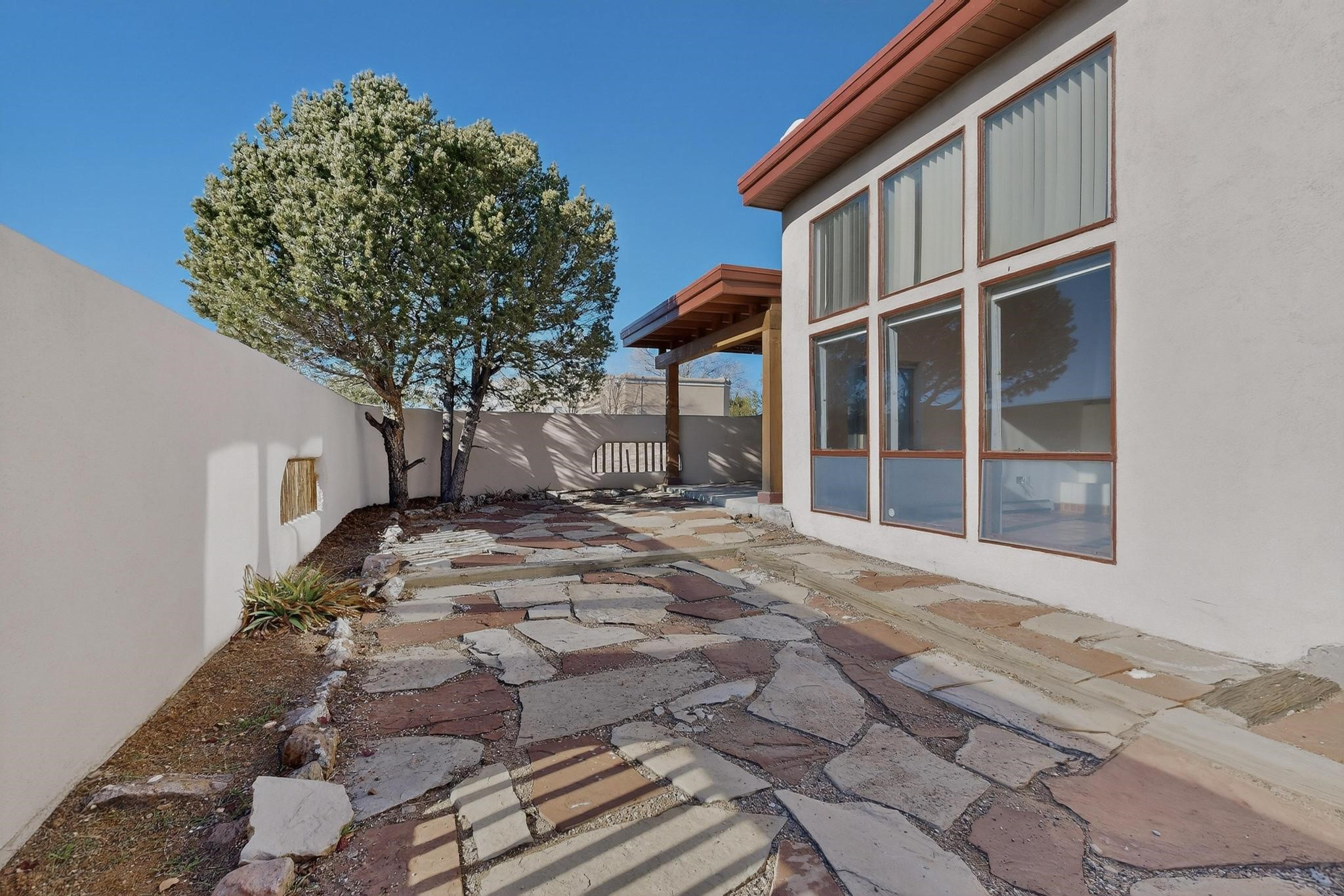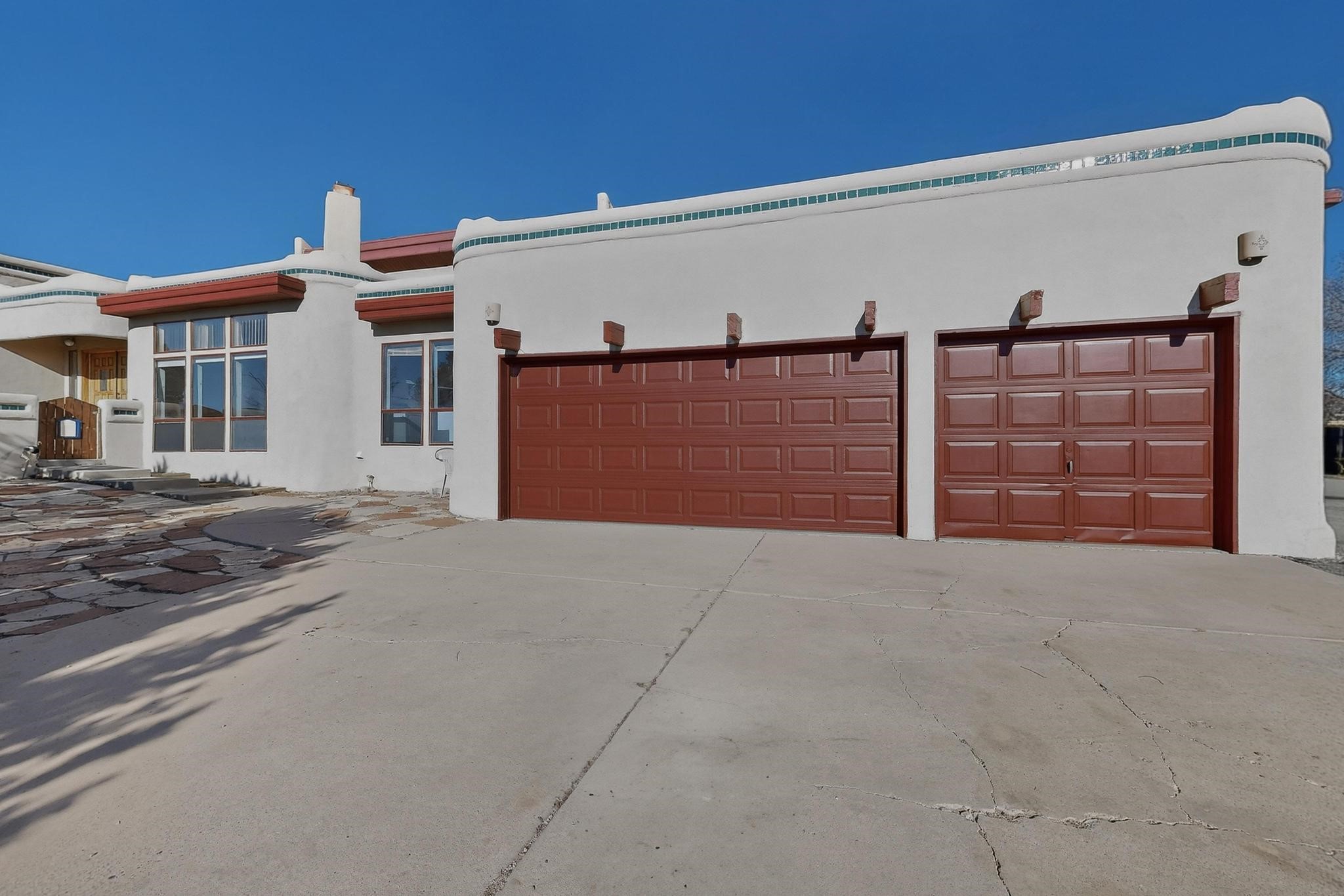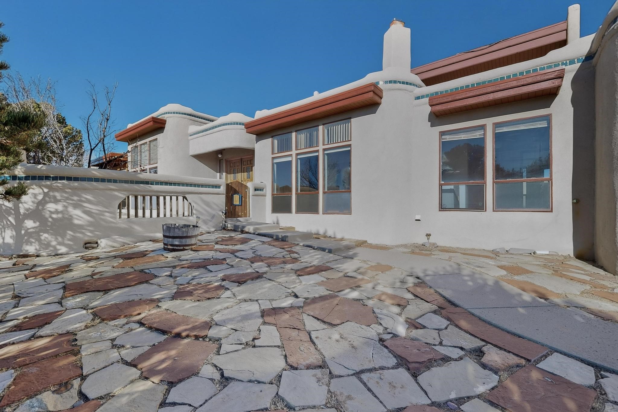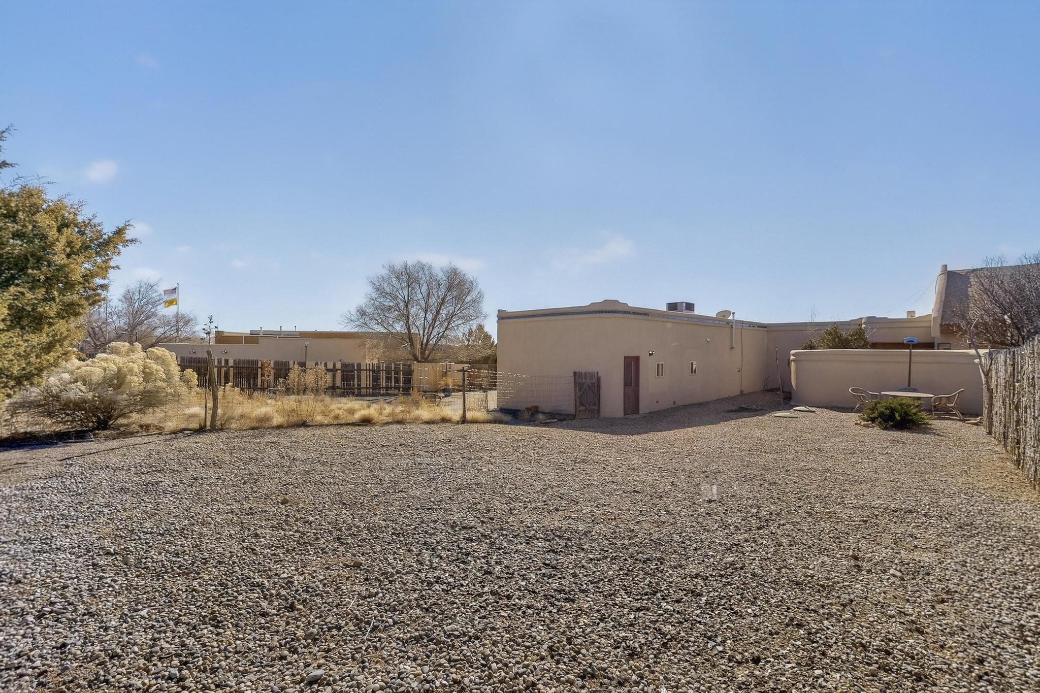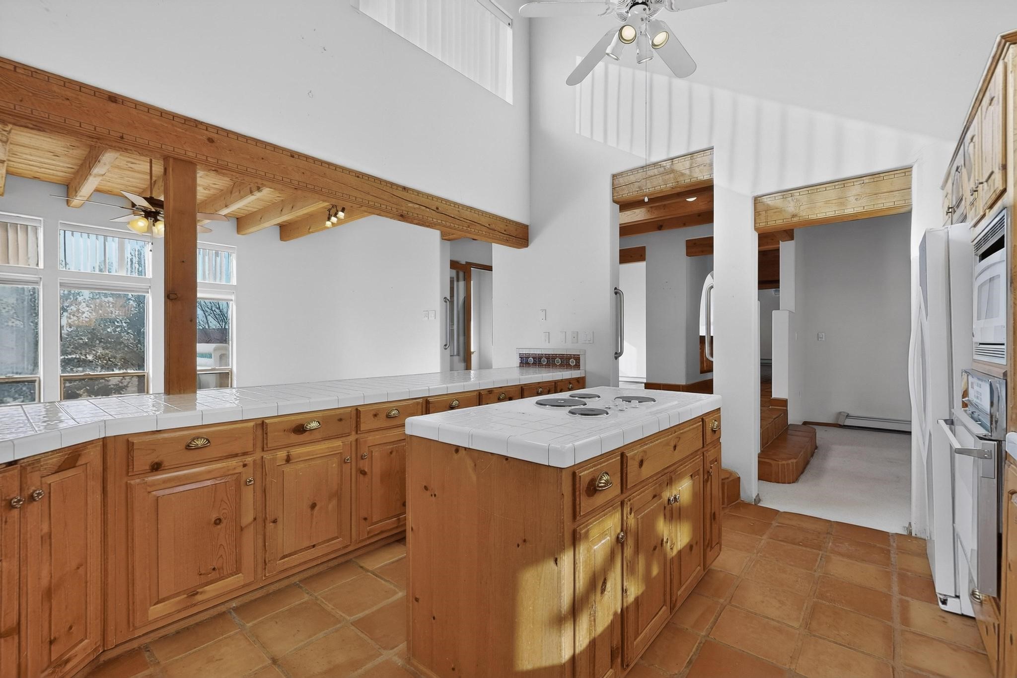 Remarkable opportunity to obtain a 3963sf multi generational 4 bedroom home in Eldorado. Born with a passive solar design and high ceilings with deep southern glazing this home is full of sunlight. Saltillo tile floors, beam and viga ceilings, high clerestories, nichos, 2 kiva fireplaces, mini splits and a brand new roof, this contemporary pueblo home is amazing. A spacious country style kitchen with large breakfast bar and breakfast nook will accommodate plenty of family entertainment. There is an adjoining family room, sunken living room and a formal dining room/den off the kitchen. the owners suite features a spacious bathroom and walk in closet, plus there are 3 guest bedrooms with a 3/4 and full bath. The laundry includes a tub and plenty of extra storage. On going through the 3 bay garage you can enter the studio/guest wing which includes a 2 large rooms, bath and a separate 4th garage. A walled private flagstoned courtyard and portal in front and to the rear offer plenty of outside enjoyment. The paved driveway also includes plenty of guest parking. This home is within easy reach of the Eldorado Community Center amenities, local shopping, school, library and senior center, and only minutes into Santa Fe.