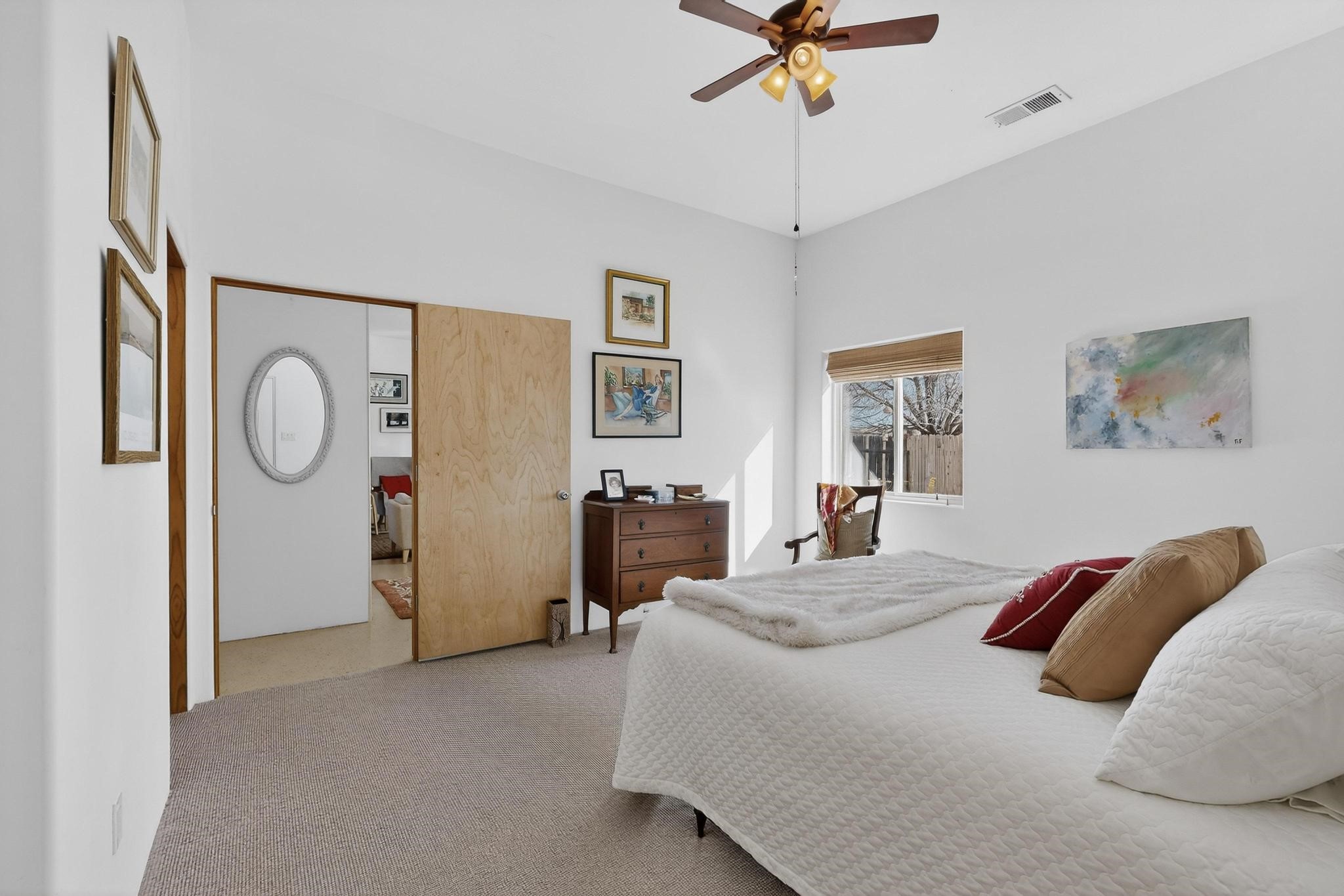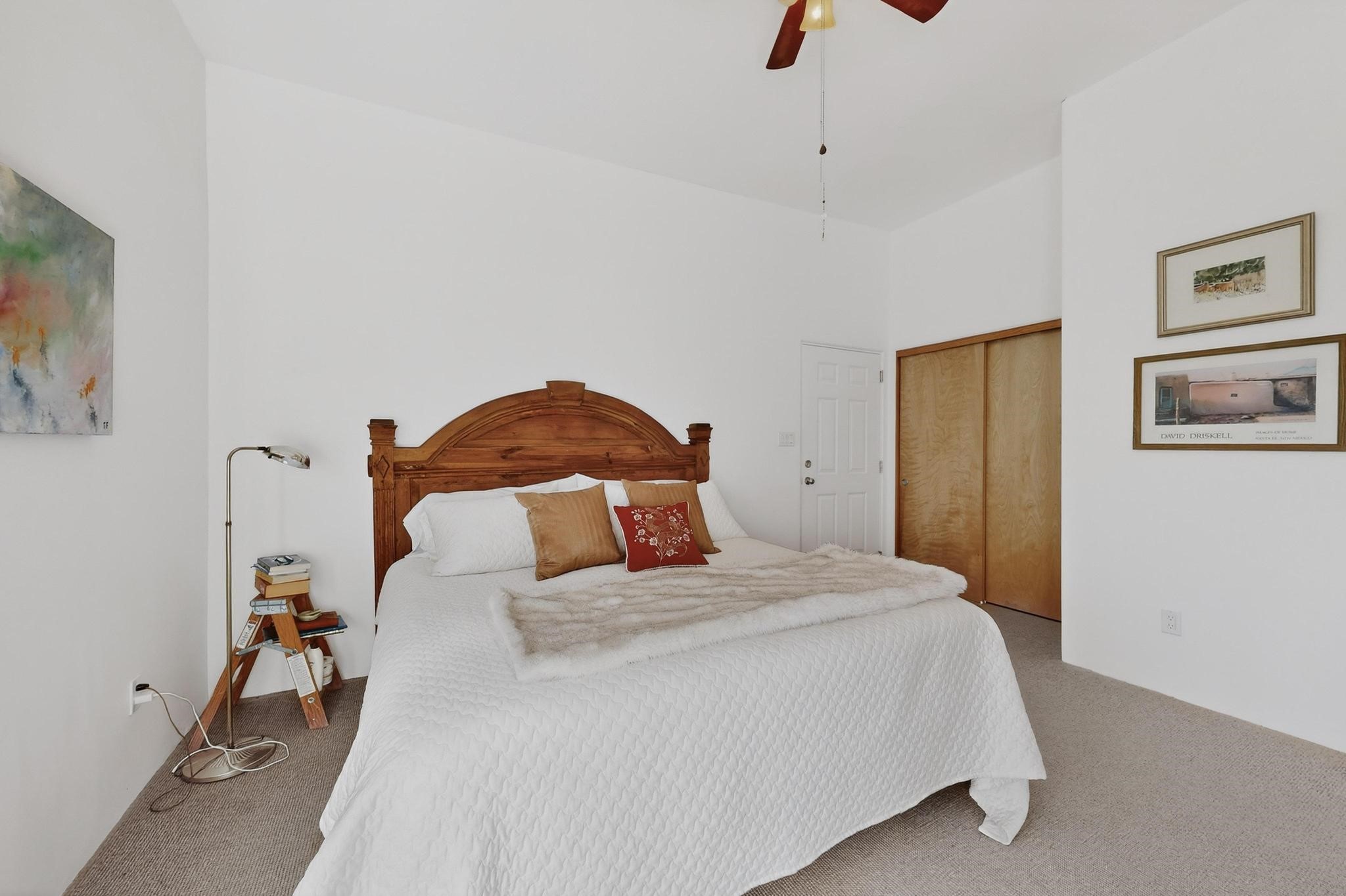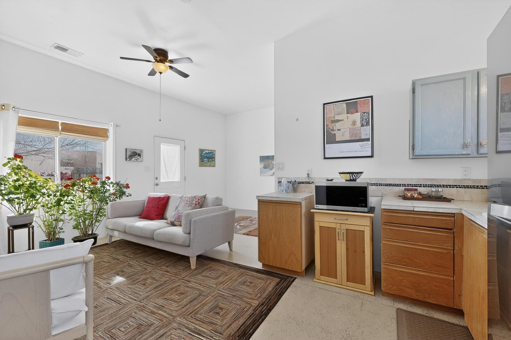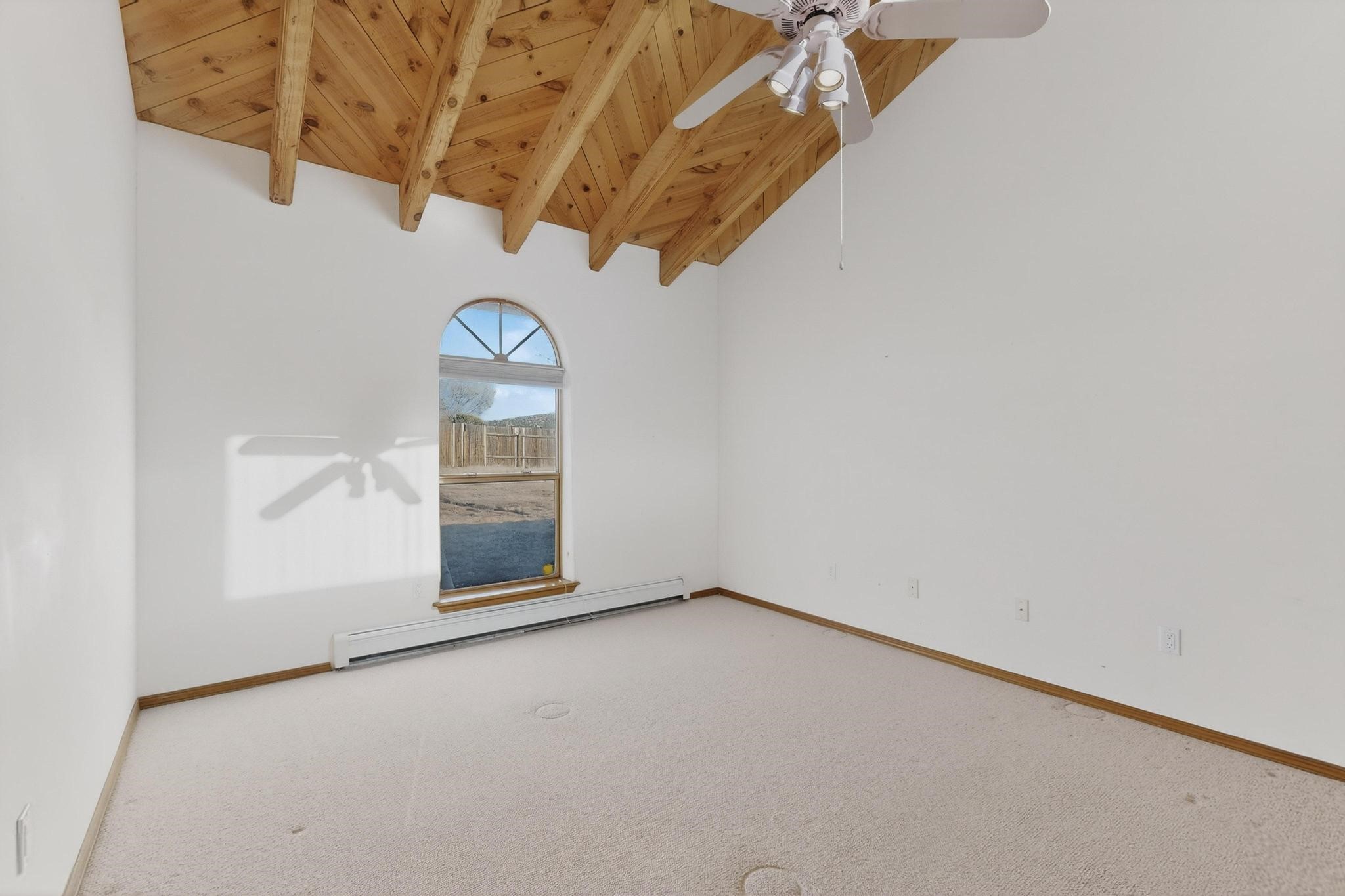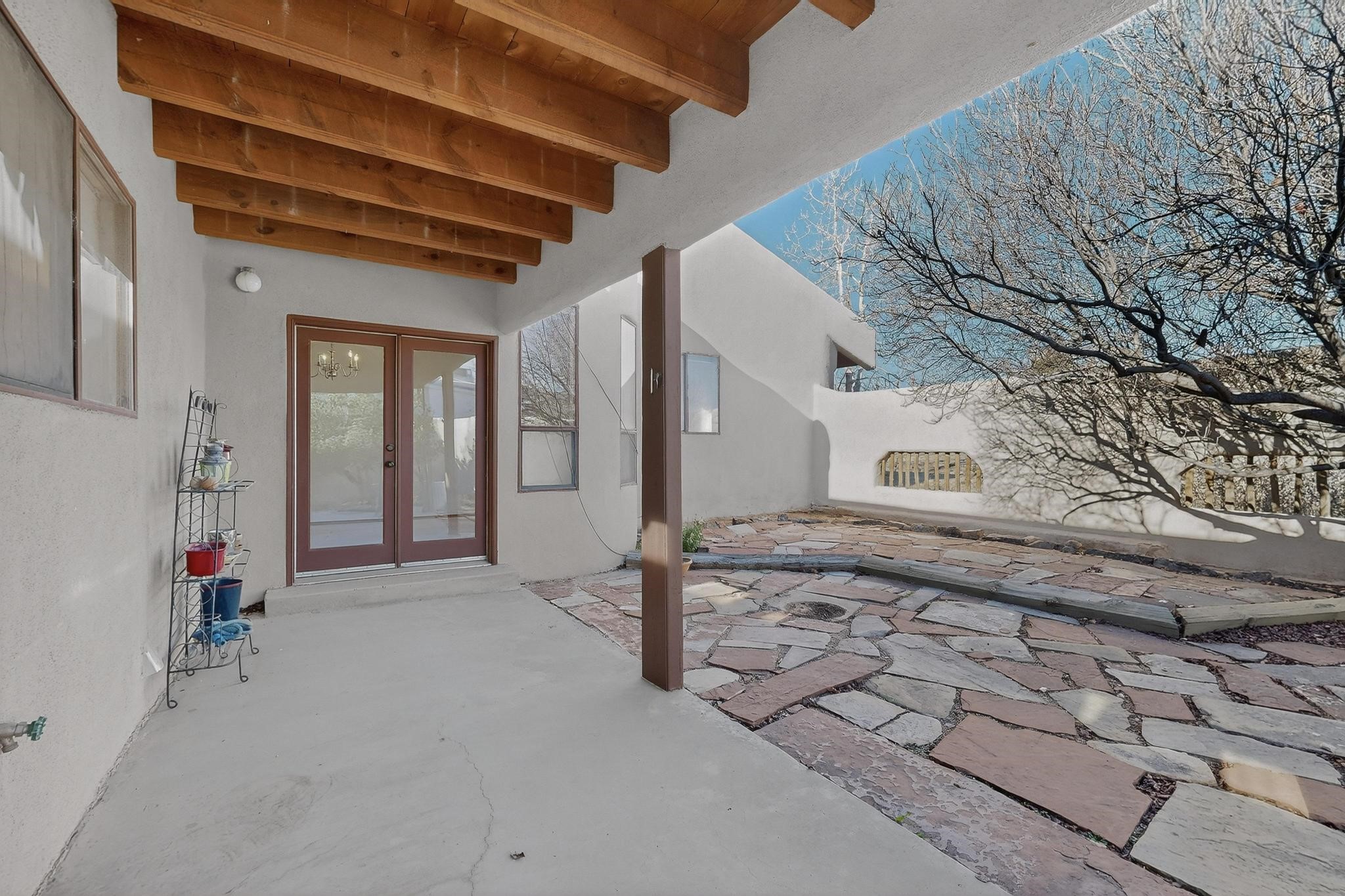 Remarkable opportunity to obtain a 3963sf multi generational 4 bedroom home in Eldorado. Born with a passive solar design and high ceilings with deep southern glazing this home is full of sunlight. Saltillo tile floors, beam and viga ceilings, high clerestories, nichos, 2 kiva fireplaces, mini splits and a brand new roof, this contemporary pueblo home is amazing. A spacious country style kitchen with large breakfast bar and breakfast nook will accommodate plenty of family entertainment. There is an adjoining family room, sunken living room and a formal dining room/den off the kitchen. the owners suite features a spacious bathroom and walk in closet, plus there are 3 guest bedrooms with a 3/4 and full bath. The laundry includes a tub and plenty of extra storage. On going through the 3 bay garage you can enter the studio/guest wing which includes a 2 large rooms, bath and a separate 4th garage. A walled private flagstoned courtyard and portal in front and to the rear offer plenty of outside enjoyment. The paved driveway also includes plenty of guest parking. This home is within easy reach of the Eldorado Community Center amenities, local shopping, school, library and senior center, and only minutes into Santa Fe.