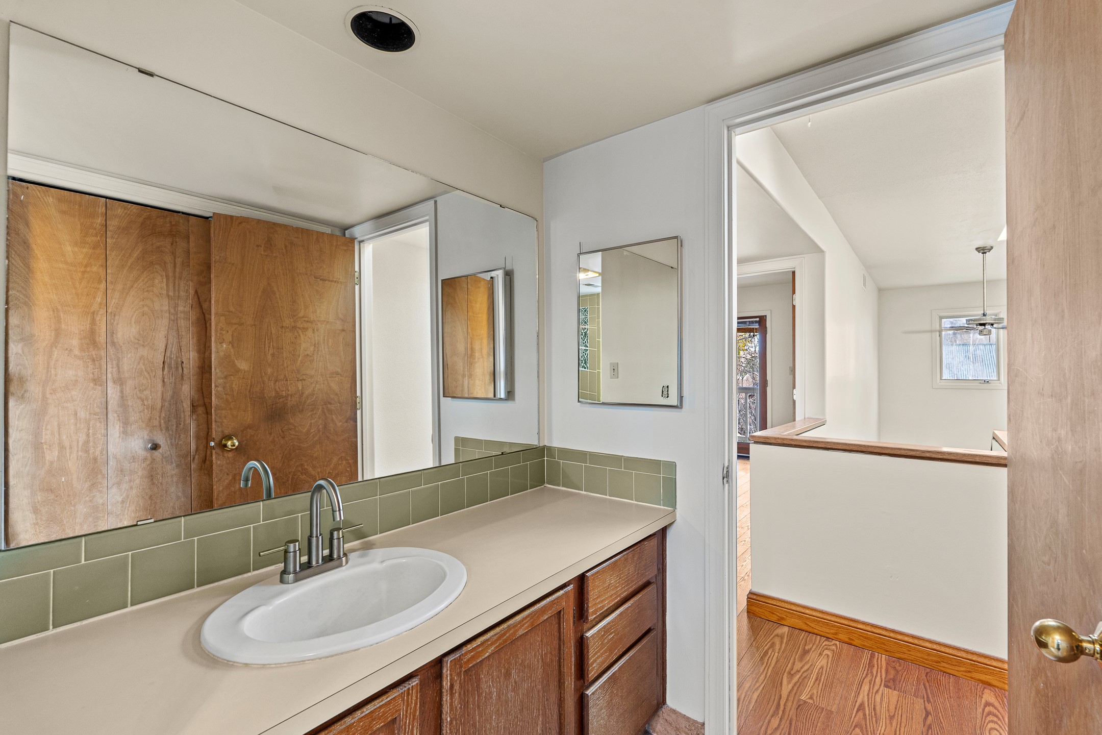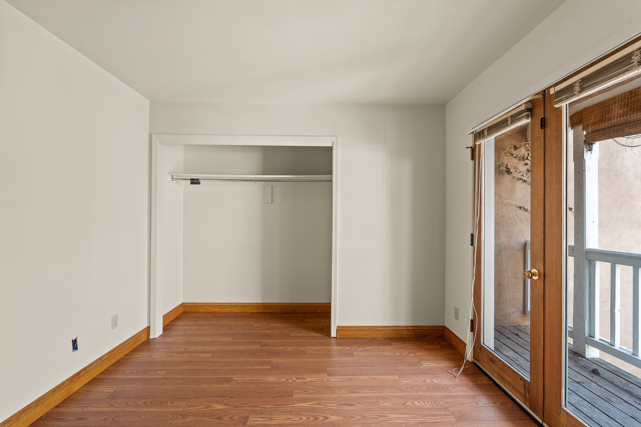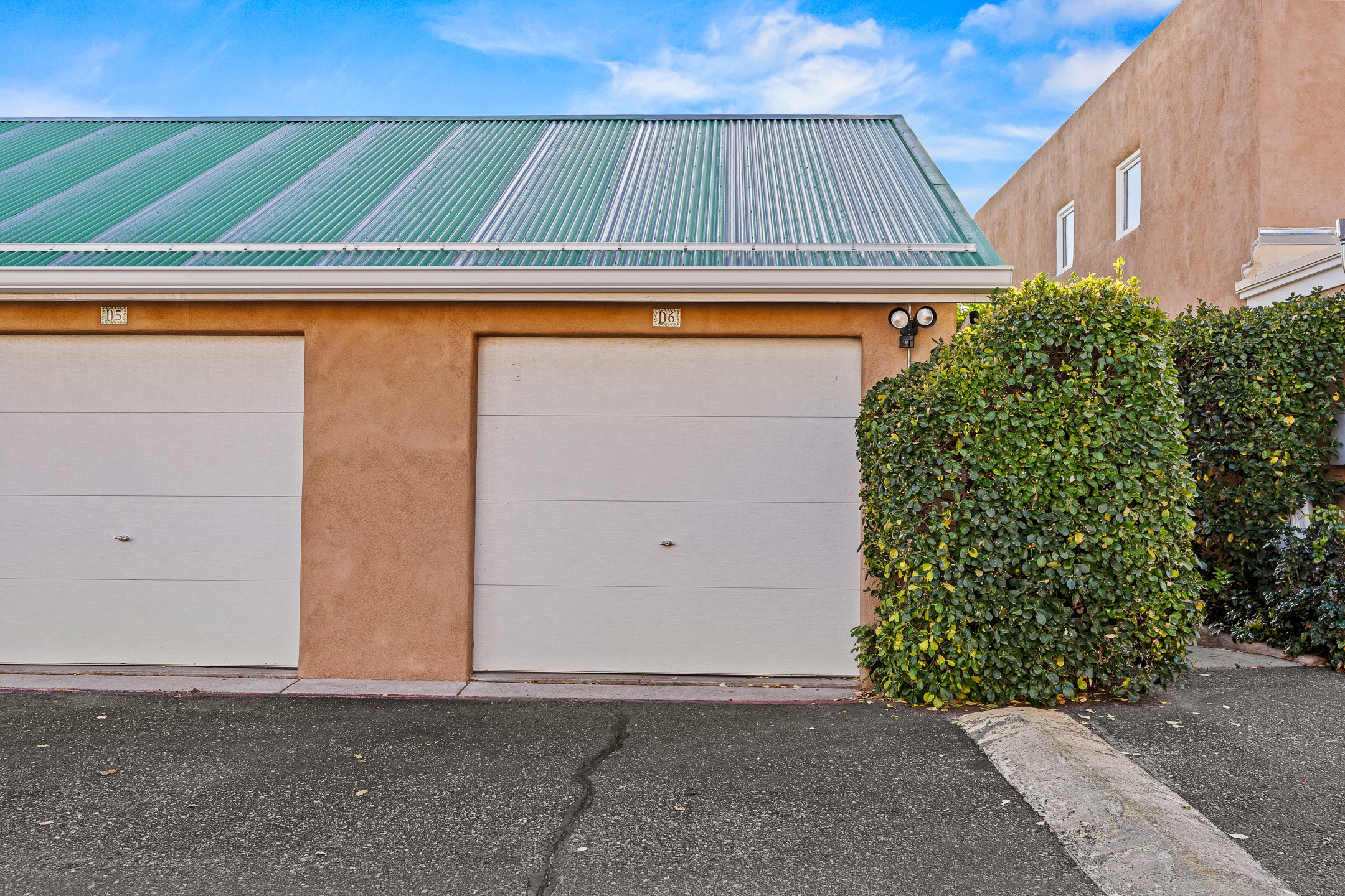 Just steps from the historic Plaza, this charming 2-bedroom, 2-bath condo embodies the true spirit of Santa Fe living. Classic brick floors, vigas and high beamed ceilings, and a traditional wood-burning kiva fireplace create an authentic Southwestern ambiance from the moment you enter. The main living and dining areas feel warm and inviting, complemented by a cozy bar nook and a convenient three-quarter bath on the first level.The kitchen offers generous counter space, a large window over the sink that frames the changing New Mexico light, and a traditional pass-through to the dining area--perfect for casual gatherings. An elegant oak stairway, crowned by a soaring skylight, leads to the upper-level bedrooms. Sunlight fills the space, enhancing the natural textures and warm tones throughout.Both bedrooms feature ample closets and share a full bath, while expansive windows and the upper skylight welcome bright desert light and capture distant mountain views. With no carpeting, the home maintains its clean, easy-care, Southwestern aesthetic.A rare detached one-car garage provides valuable storage and convenience in this prized downtown location. With its blend of regional character, natural materials, and unbeatable proximity to Santa Fe's galleries, restaurants, and historic streets, this property offers the quintessential Southwestern retreat.