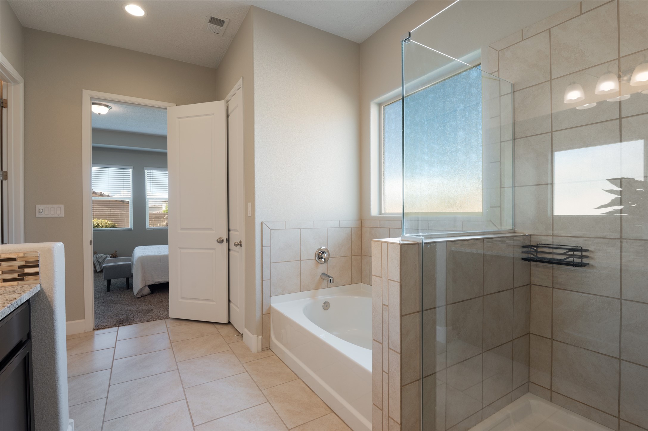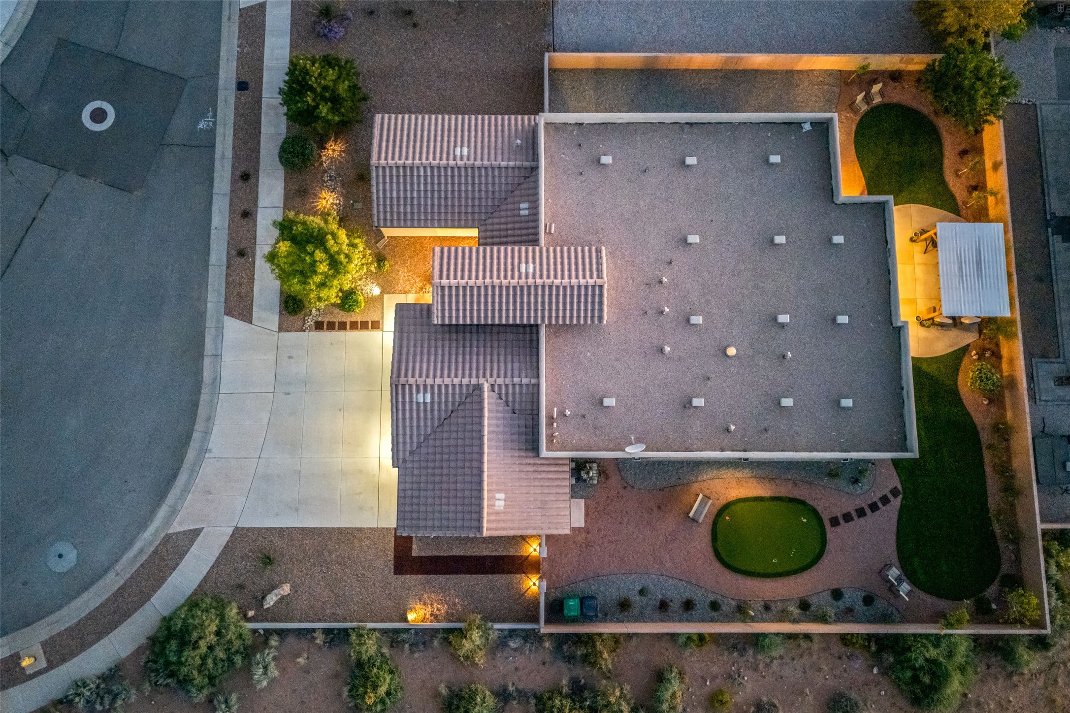 Warm, inviting home in beautiful Mariposa at the north end or Rio Rancho. Spectacular community surrounded by nature. Miles of trails, community pool and a gym. This home is located in a gated community at the end of a cul-de-sac beside open space. Secure and Serene. Spacious kitchen/dining/living area is a perfect gathering space, filled w/ natural light & offers generous counter space, gas stove, stainless appliances & walk-in pantry. The floor plan is open yet offers privacy in bedroom wings. Large primary suite w/ double sinks, separate tub, walk-in shower & large walk-in closet w/ access to laundry room. Three additional bedrooms are each connected to a bathroom, including one Jack-n-Jill & one en suite. Comfortable office space is perfect for those who work from home or can offer a second living space near bedrooms. Gorgeous custom landscaped back yard w/ pergola & putting green perfect for relaxing outdoors. Generous Three car garage.