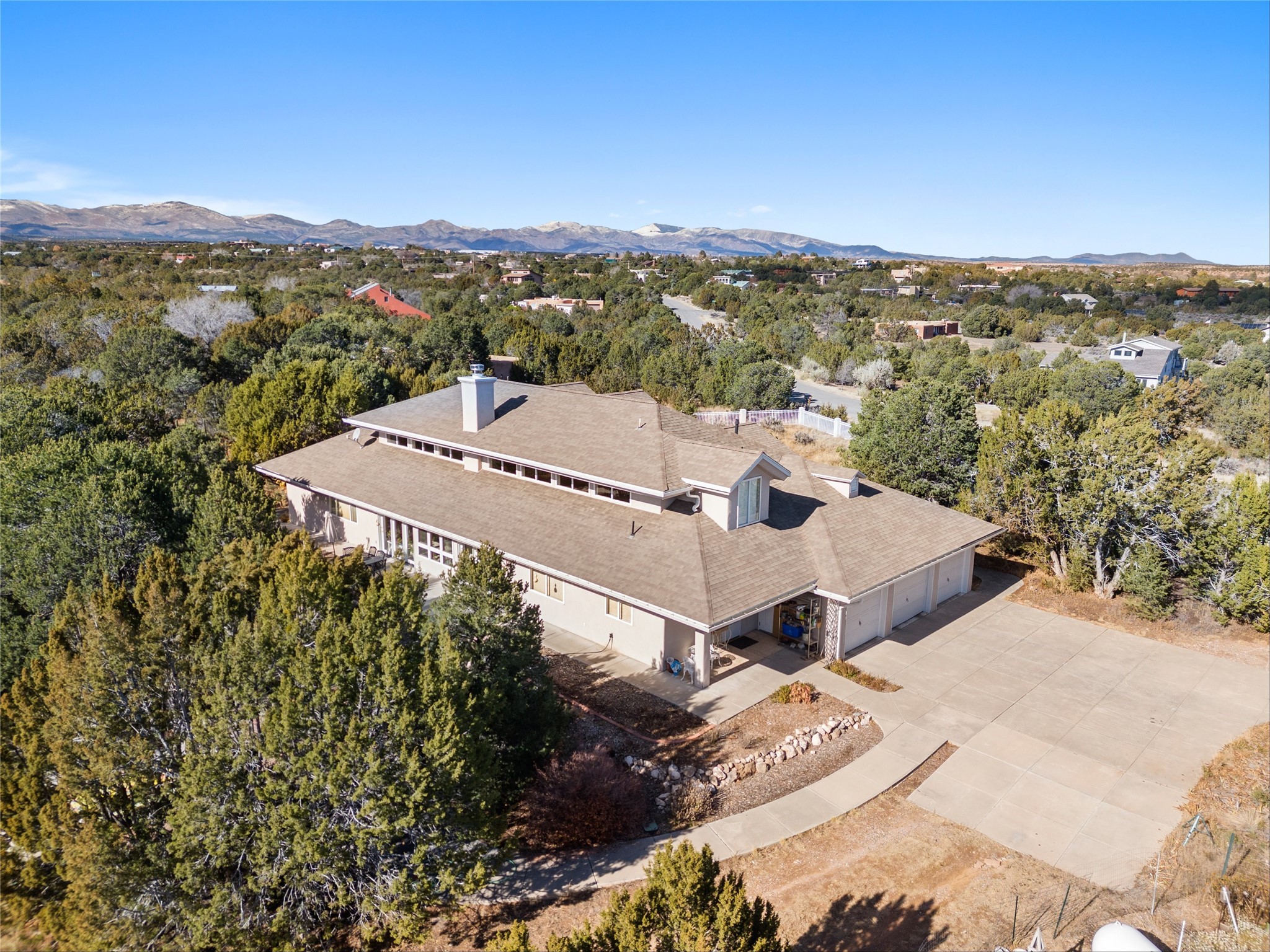 Spacious, thoughtfully designed, and full of extras, 177 Piedra Loop offers room to live, work, and play. The main home features 4 bedrooms, 5 bathrooms (3 full, 2 half) and approximately 4,810 sq ft of living space, with ADA-friendly features including extra-wide hallways and doorways, raised electrical outlets, ramps, and a bedroom with an attached ADA-compliant bath. Bedrooms enjoy cozy dormer sitting areas and laminate wood flooring, and there is excellent storage throughout, including two walk-in-height attic spaces upstairs.The heart of the home centers around an updated kitchen, a two-sided glass fireplace shared by the living room and the 10x40 sunroom, and comfort features like a central vacuum system and cellular blinds. The sunroom offers wonderful solar gain and is an ideal spot for plants to thrive indoors year-round.Outside, an automatic gate welcomes you into a treed lot with defined gardening areas and a watering system, plus a patio and fire pit for outdoor relaxing and entertaining. A true standout is the approximately 2,600 sq ft shop, with two bays featuring RV-height doors. Inside, you'll find a heated, well-lit woodworker's dream space with easy-clean floors and its own bathroom. Above the shop is a studio with a kitchenette, bathroom, additional storage, and an electric cargo lift to make moving items upstairs a breeze.This property is an exceptional opportunity for anyone needing generous living space, accessibility features, hobby/workshop space, guest or rental potential, and room for RVs or special projects--all in one place.