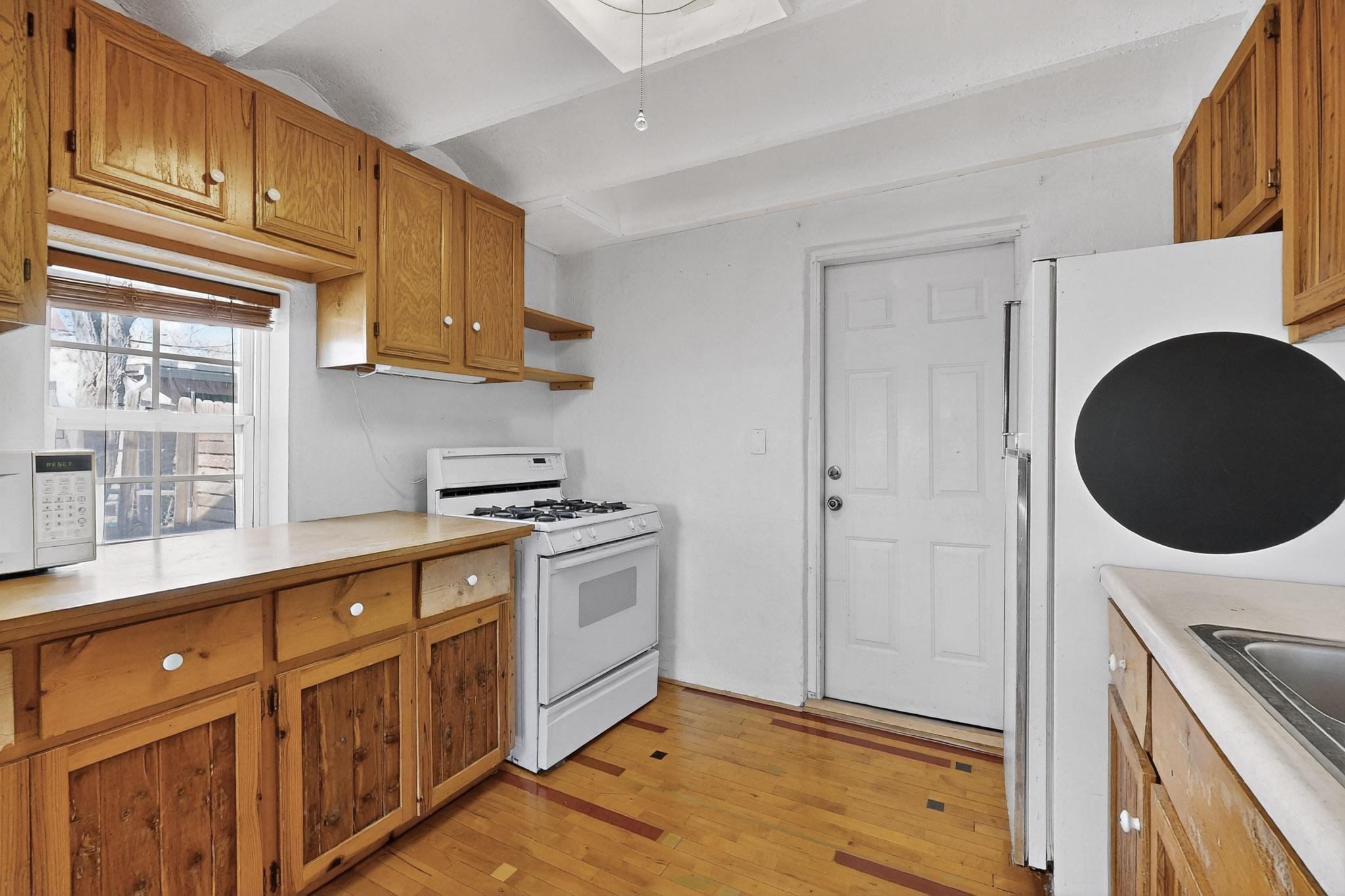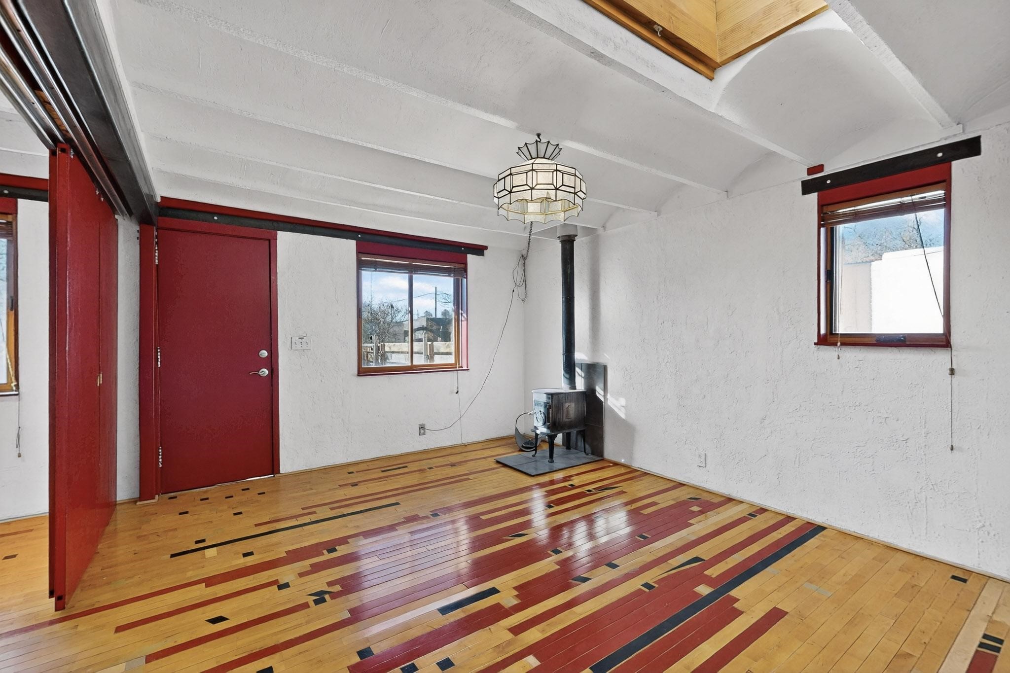Discover an exceptional investment or live/rent opportunity just minutes from the Santa Fe Plaza and the vibrant Railyard District. This versatile duplex features two spacious 1BR/1BA units totaling 1,320 sq ft, each with its own distinct character, private outdoor space, and two dedicated parking spots. A shared laundry room conveniently connects the units while maintaining privacy. A spray foam roof (10y) with fresh elastomeric coating (2y) and acoustic-insulated separation between units adds comfort, efficiency, and peace of mind. Live in one home and rent the other, or maximize income potential by leasing both--this property offers flexibility for owners, investors, or multi-family living. UNIT A: Warm and artistic, Unit A welcomes you with a large living room featuring a wood stove and hardwood floors reclaimed from a basketball court--a true conversation piece. Custom shoji doors create a stylish division between the living and bedroom spaces. The open-concept kitchen includes a gas stove and blends seamlessly with the living area. Custom coved ceilings, numerous skylights, and unique colorful accents make the interior attractive, and the private fenced outdoor patio is perfect for morning coffee or evening relaxation. UNIT B: Bright and inviting, Unit B boasts a spacious living room with parquet hardwood flooring and abundant natural light. The kitchen showcases unique sheet-metal paneling for a contemporary, artistic touch. The bedroom features serene American Clay plaster walls, adding texture and warmth, with an en-suite bathroom boasts slate tile, walk-in shower, and custom skylights. A large private yard offers ample outdoor living potential--gardening, pets, or entertaining. A 220V hookup in the yard makes your hot tub or workshop vision possible. With its unbeatable location, character-rich interiors, and strong rental flexibility, 617 Paulin St is a rare find in the heart of Santa Fe. A must-see for investors and homeowners alike. Property to be sold as-is.