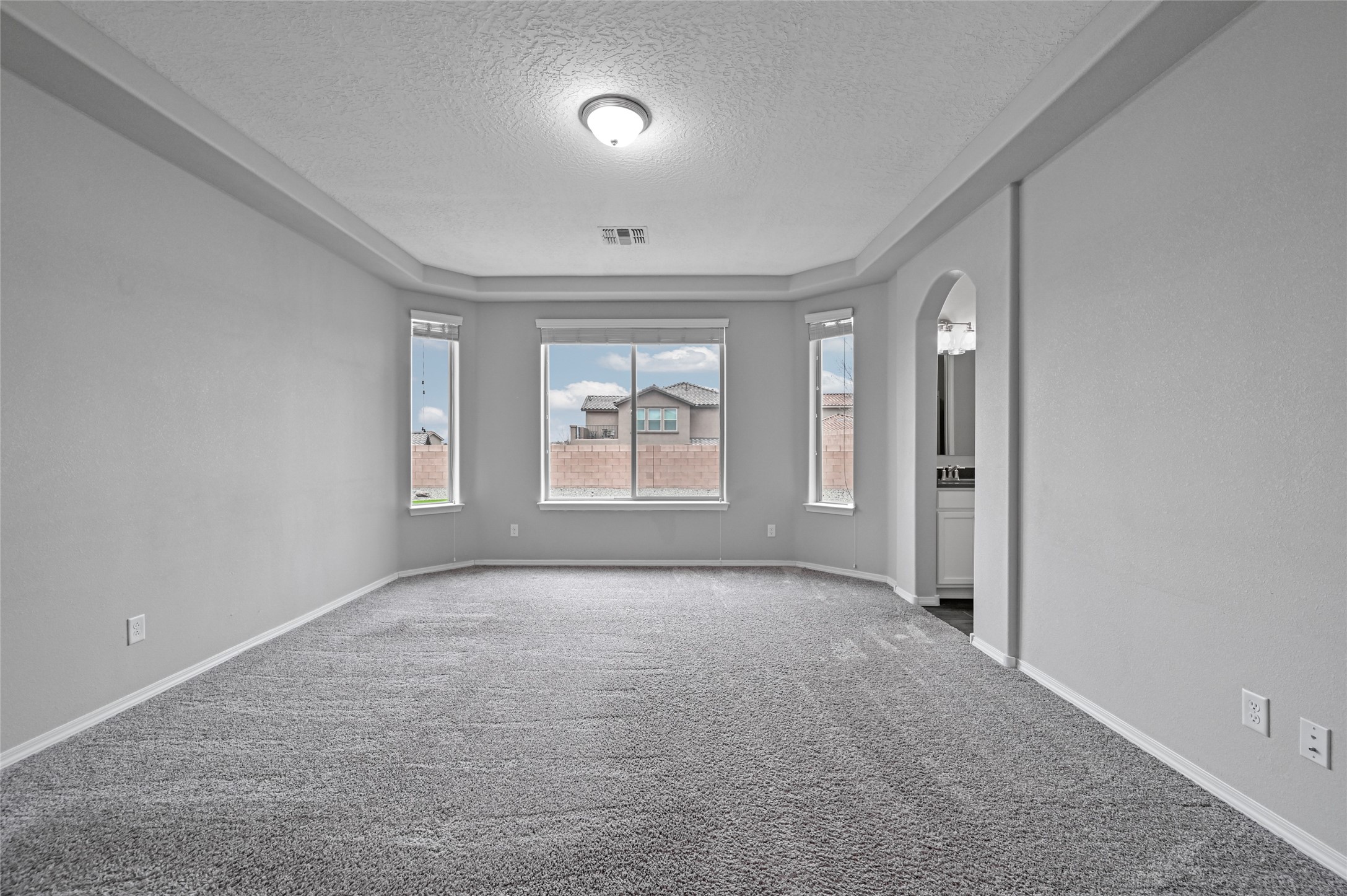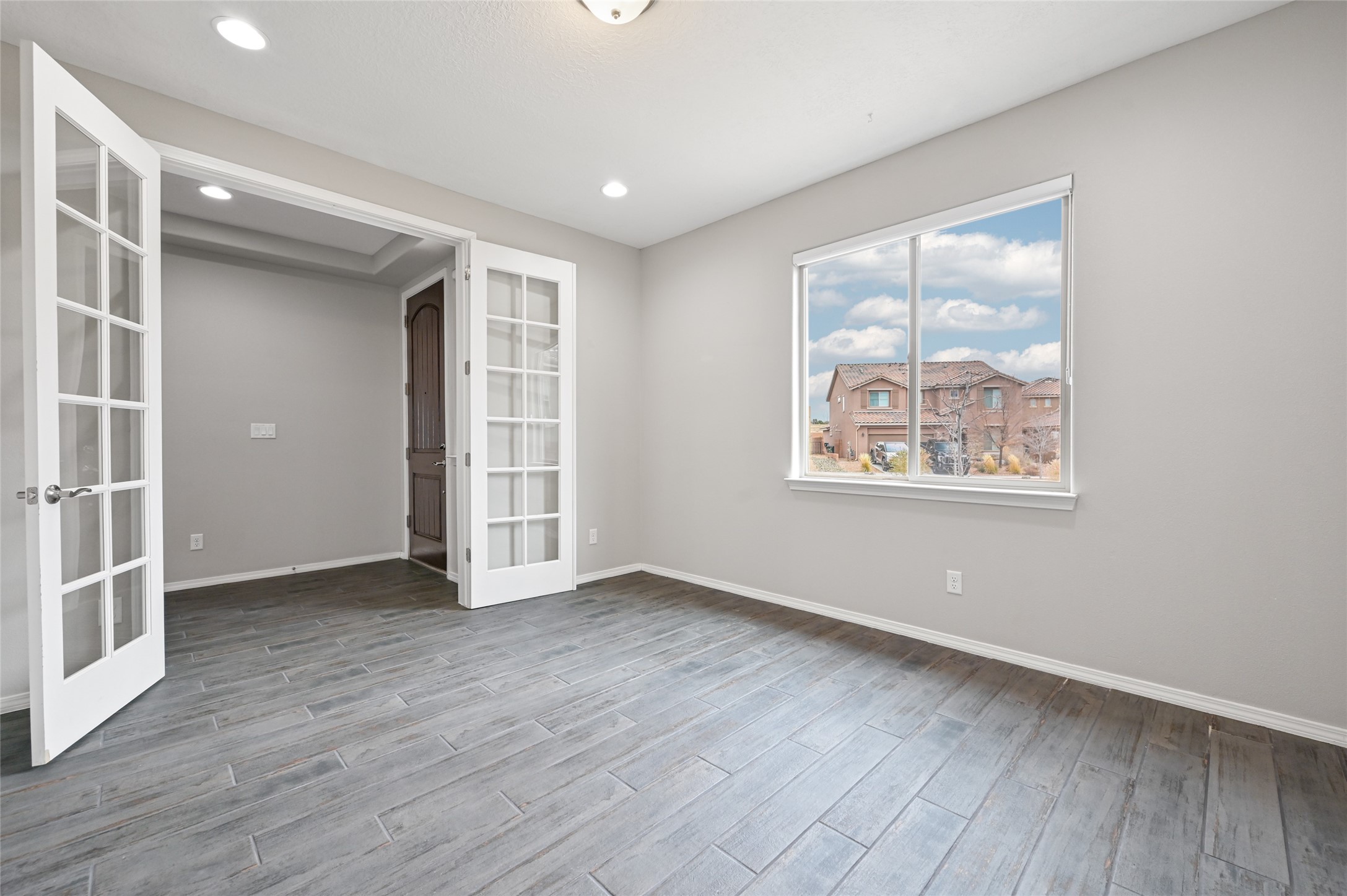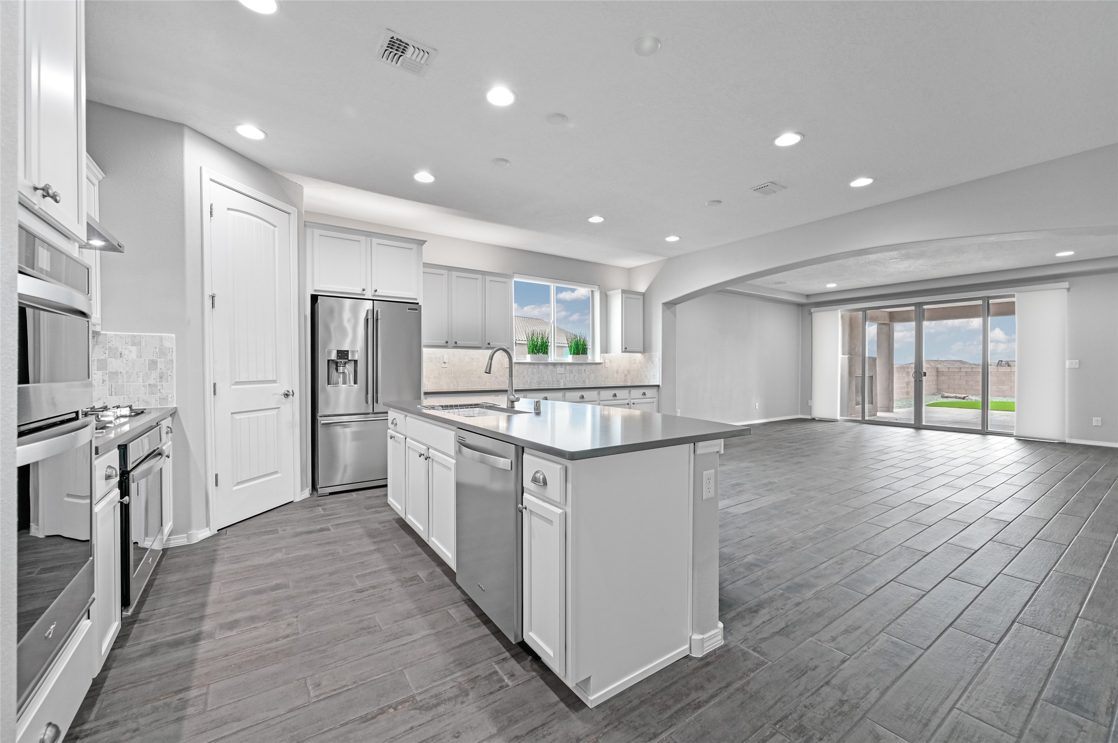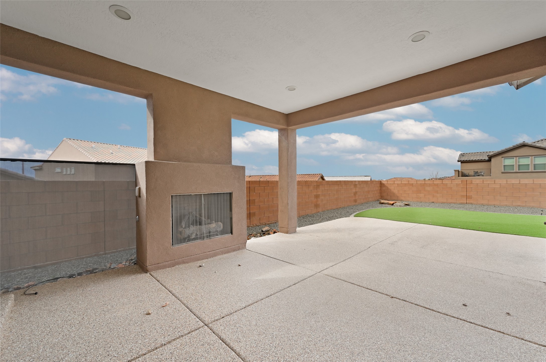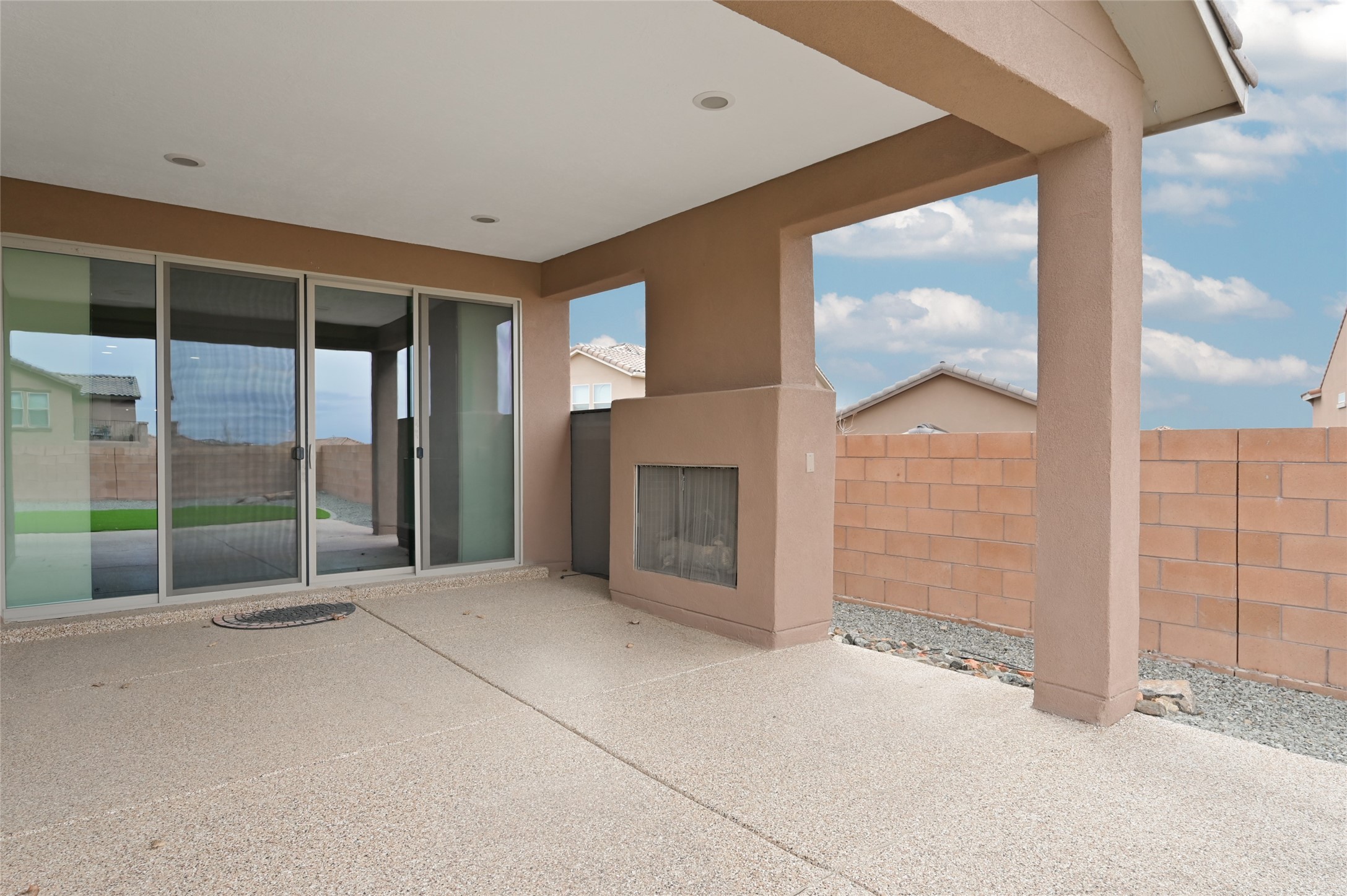 Built by Pulte in 2019, this beautifully maintained single-level 2,184 sq. ft. home is sited on a premium 0.20-acre lot, offering privacy and captivating sunset views. Thoughtfully designed, the open-concept floor plan creates seamless flow between the kitchen, living, and dining areas. An elegant archway subtly defines the living and dining spaces while framing a view of Santa Fe's expansive skies from the kitchen--a warm architectural detail that adds both beauty and function. The kitchen is a true standout, with extensive counter space, abundant cabinetry, stainless steel appliances, and a generous island with seating for four. The island's sink is perfectly positioned for enjoying the views or staying connected while entertaining. Off a shared hallway, two guest bedrooms enjoy access to a full bathroom with double vanities. The spacious primary suite includes a large walk-in shower, dual vanities, a substantial walk-in closet, and views of the private backyard.The backyard is designed for low-maintenance enjoyment, featuring green turf that never needs mowing and a spacious portal with a built-in gas fireplace--perfect for outdoor dining or evening relaxation. Additional highlights include a mudroom/laundry room with side-by-side washer/dryer and sink, and an attached 2-car garage. Newer in age yet timeless in design, this home stands out for its premium lot with views and thoughtful design--checking all the boxes for comfortable, elegant Santa Fe living.